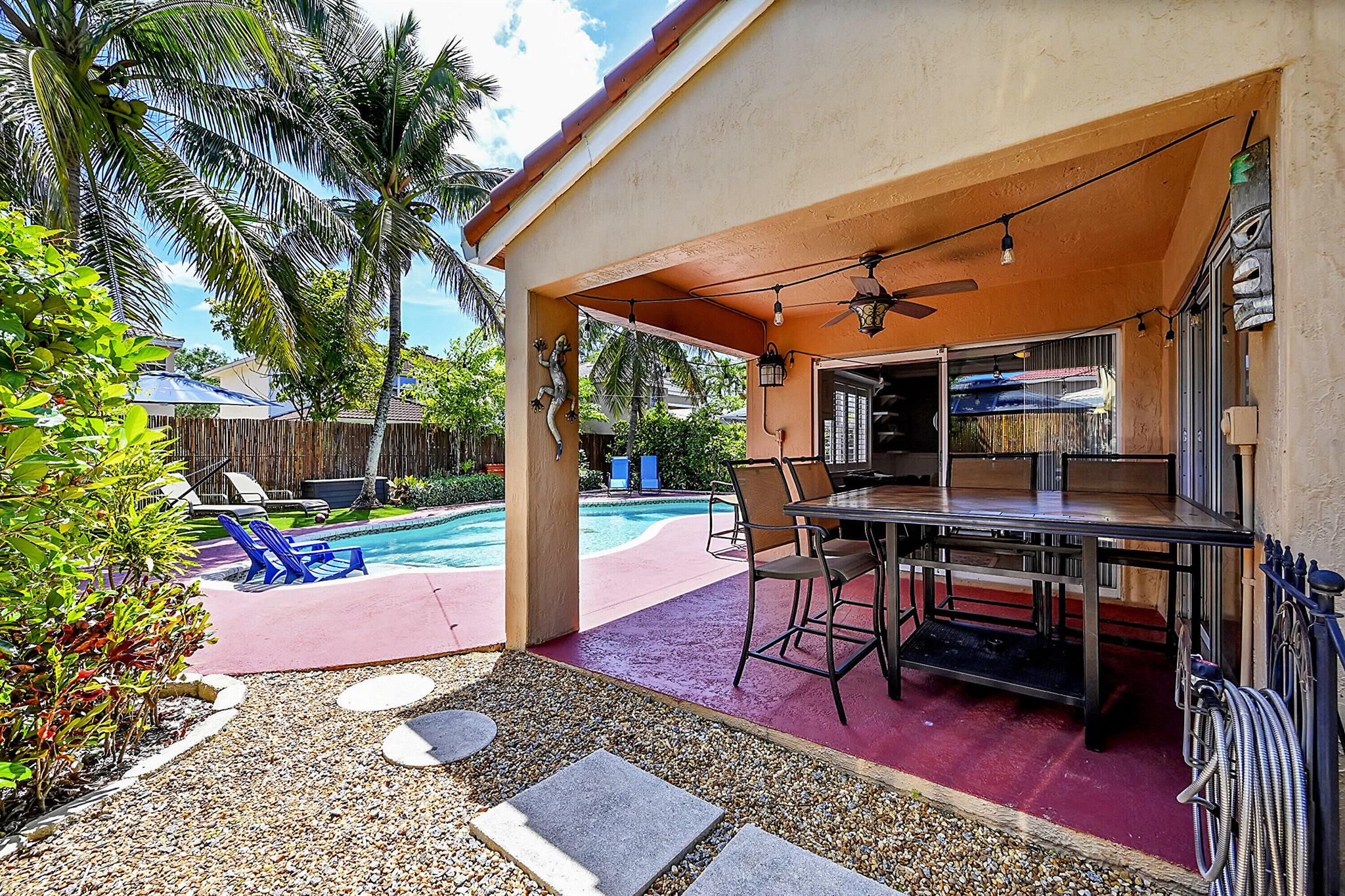 Beautiful updated pool home in a quiet gated pine ridge neighborhood. Homes in this family neighborhood are rarely on the market. Upgrades include 20'' tiles, dark engineered wood floors and crown molding throughout, as well as remodeled kitchen and bathrooms and a 2 YEAR OLD ROOF. Dedicated EV CHARGING CONNECTION in the garage. Out back is a beautiful pool with custom tile work and lush tropical landscaping and new bamboo fencing. The master bedroom is downstairs with two large bedrooms, a full bathroom and open loft upstairs with can easily be converted into a 4th bedroom. This home is one of a kind and does not disappoint!