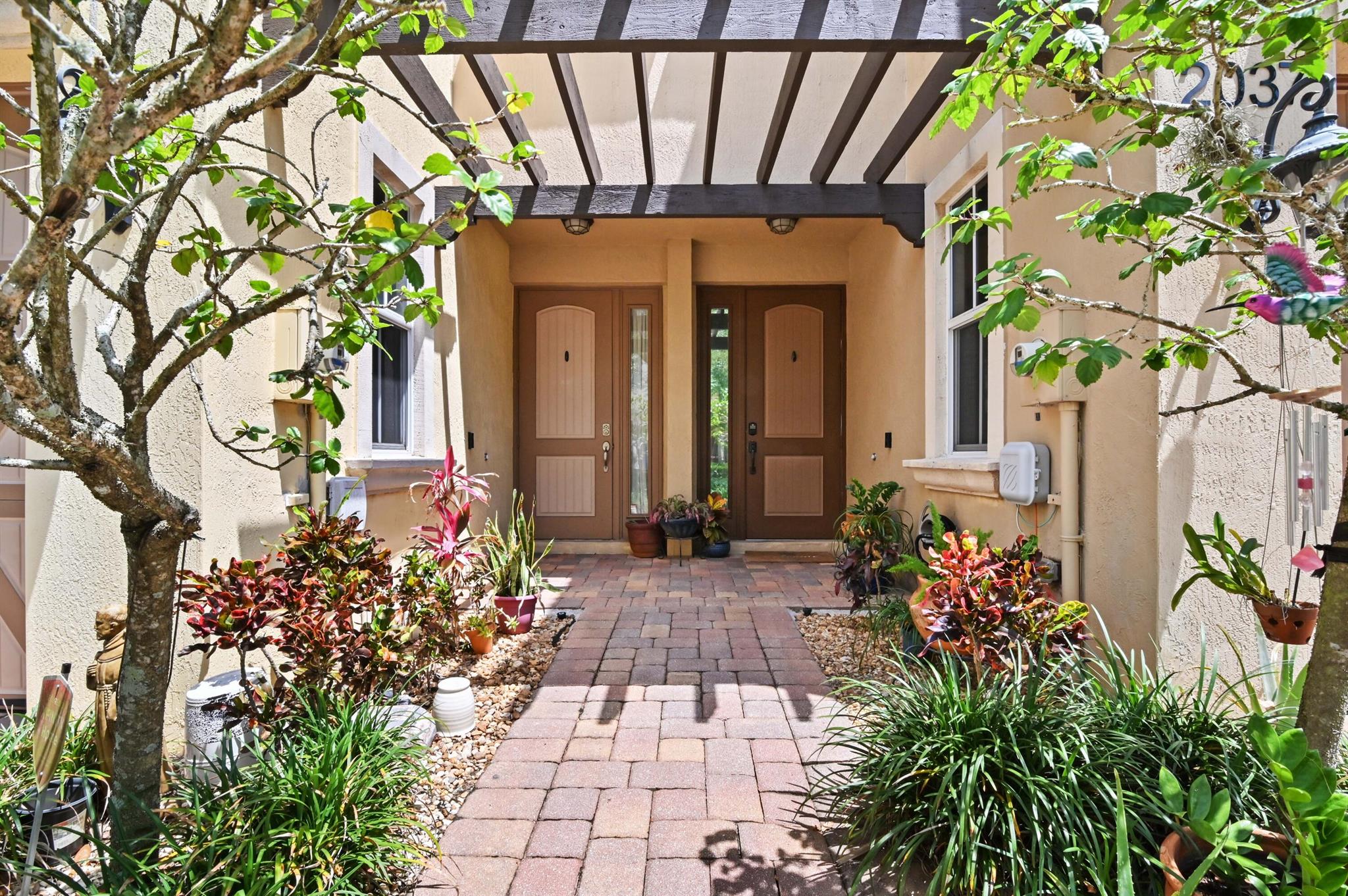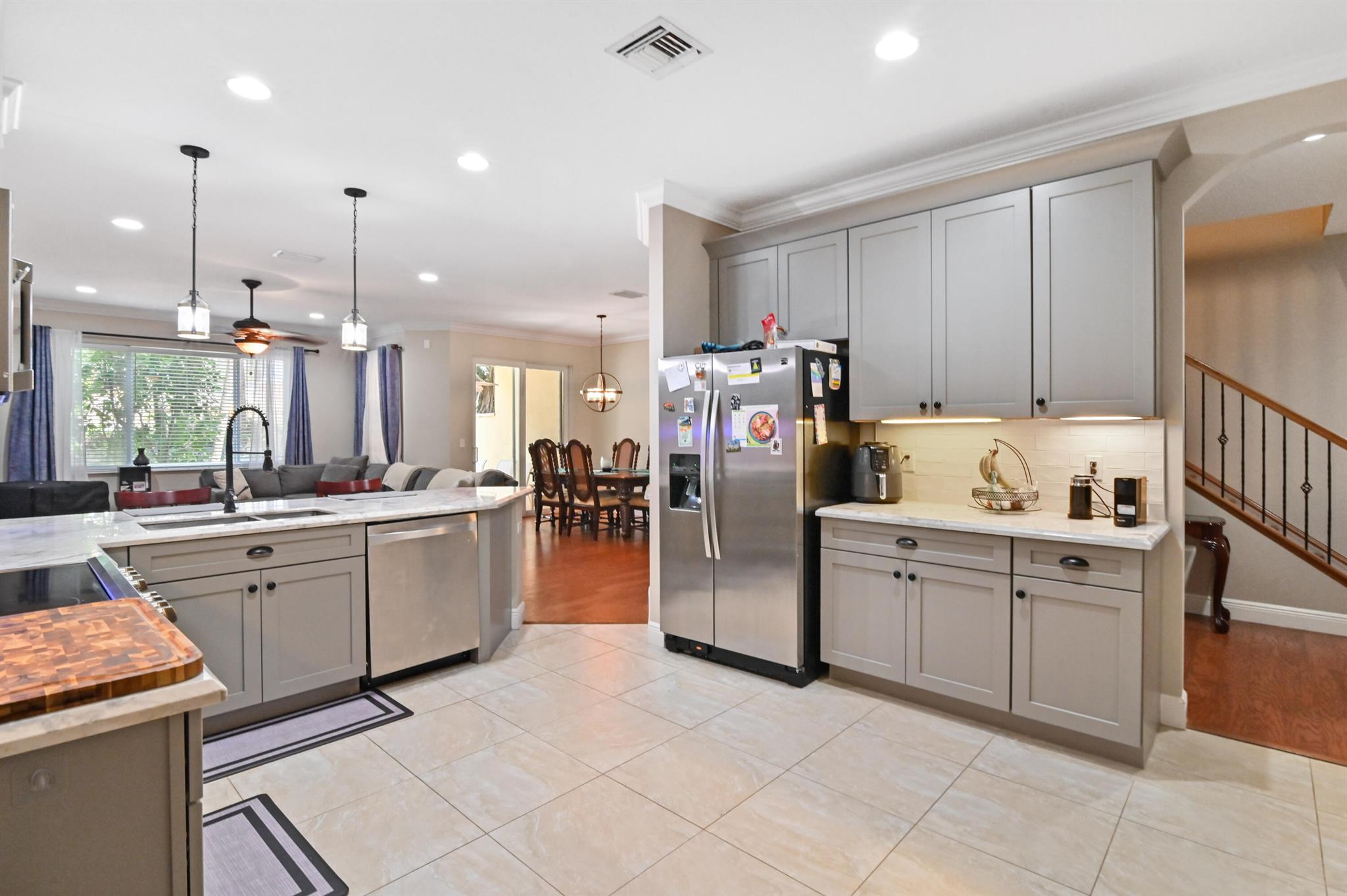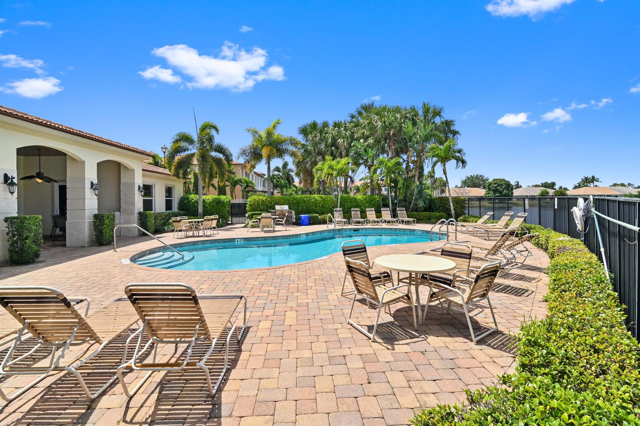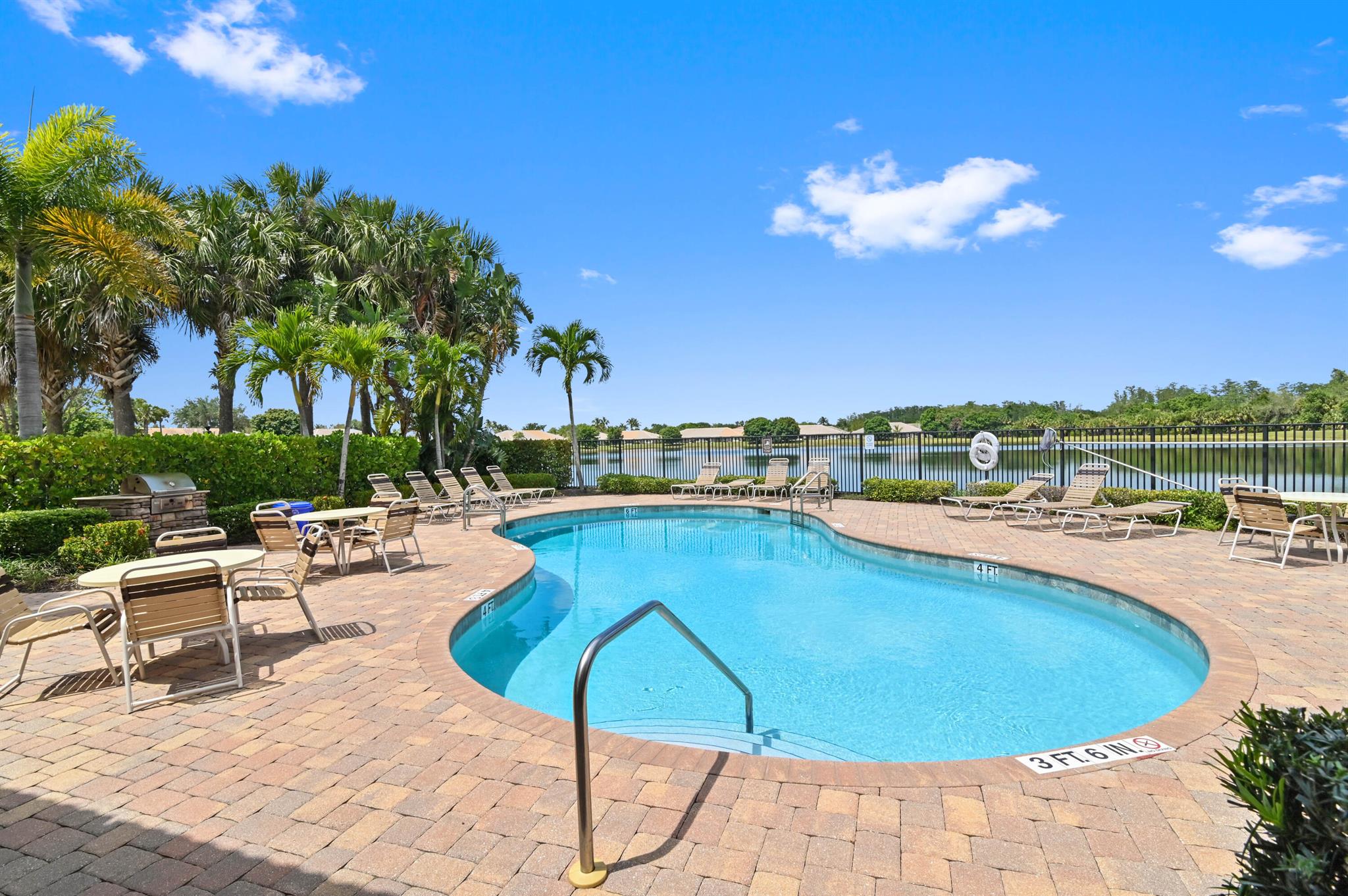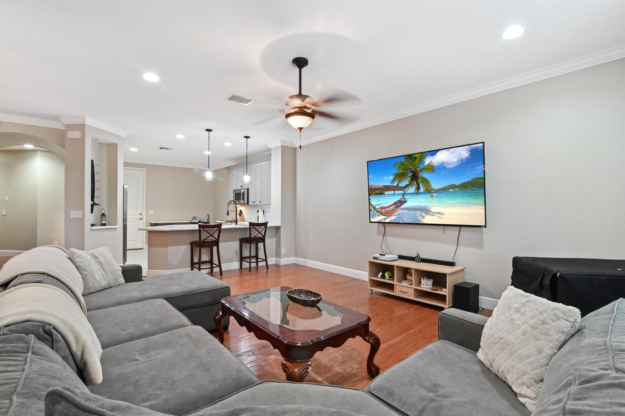 Come live in this beautifully remodeled, spacious, two story townhome w/ impact windows. Custom kitchen w/ Quartzite counters, professional grade stove/oven, matching convection microwave, dual sinks, under cabinet lighting and 42'' cabinets. Crown molding and hardwood floors on lower level with laminate wood adorning the staircase. All bedrooms are nicely sized. Oversized primary w/ two massive walk in closets and tray ceiling. Plenty of storage with cabinetry in the garage. AC done in 2023! Landscaped backyard with private extended patio. Upstairs laundry room with wash basin and front loading washer/dryer. Centrally located close to the Turnpike, I-95, Downtown, Cityplace, airport and the beach. HOA covers insurance, exterior maintenance, clubhouse with game room and heated pool.