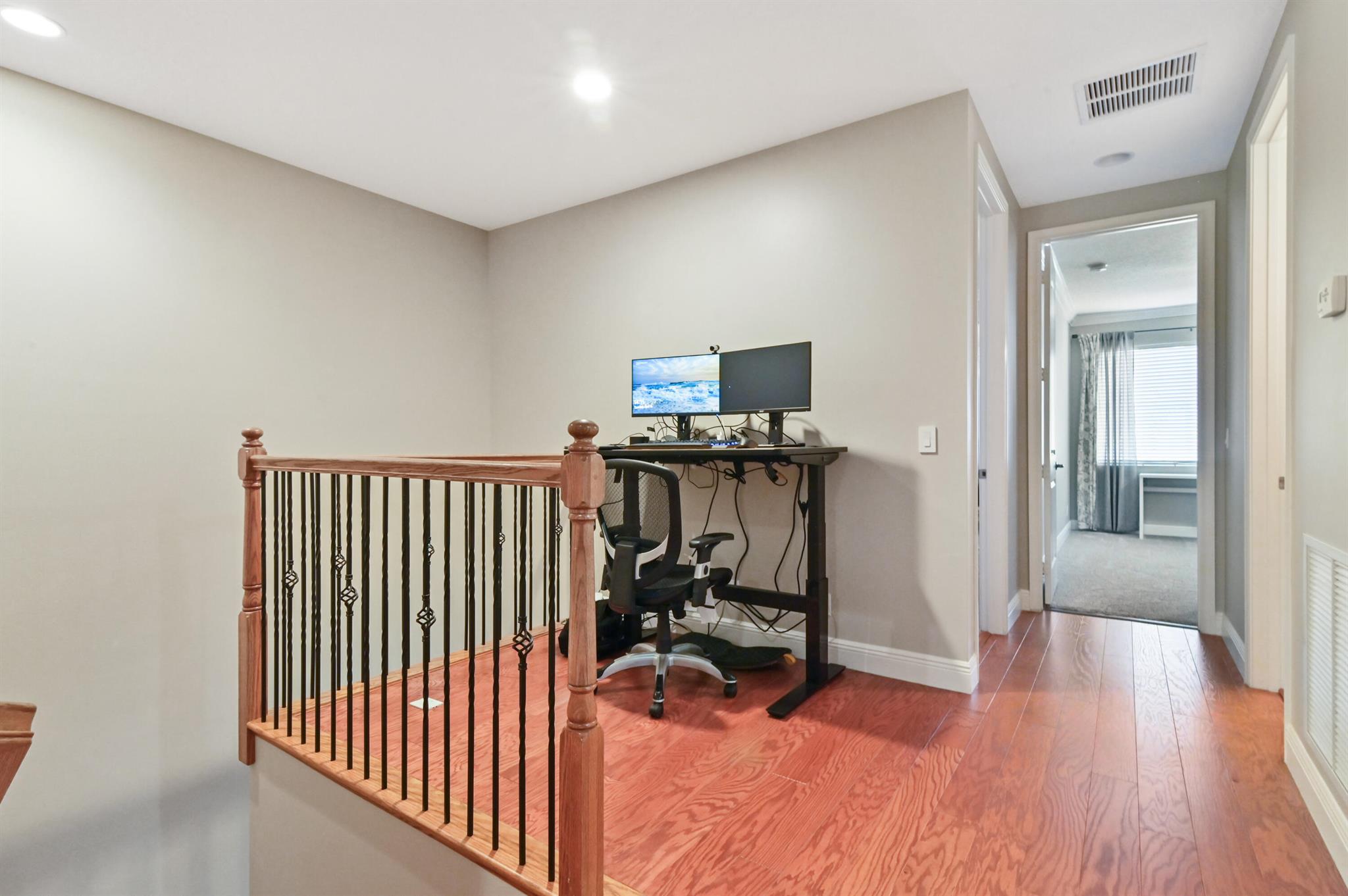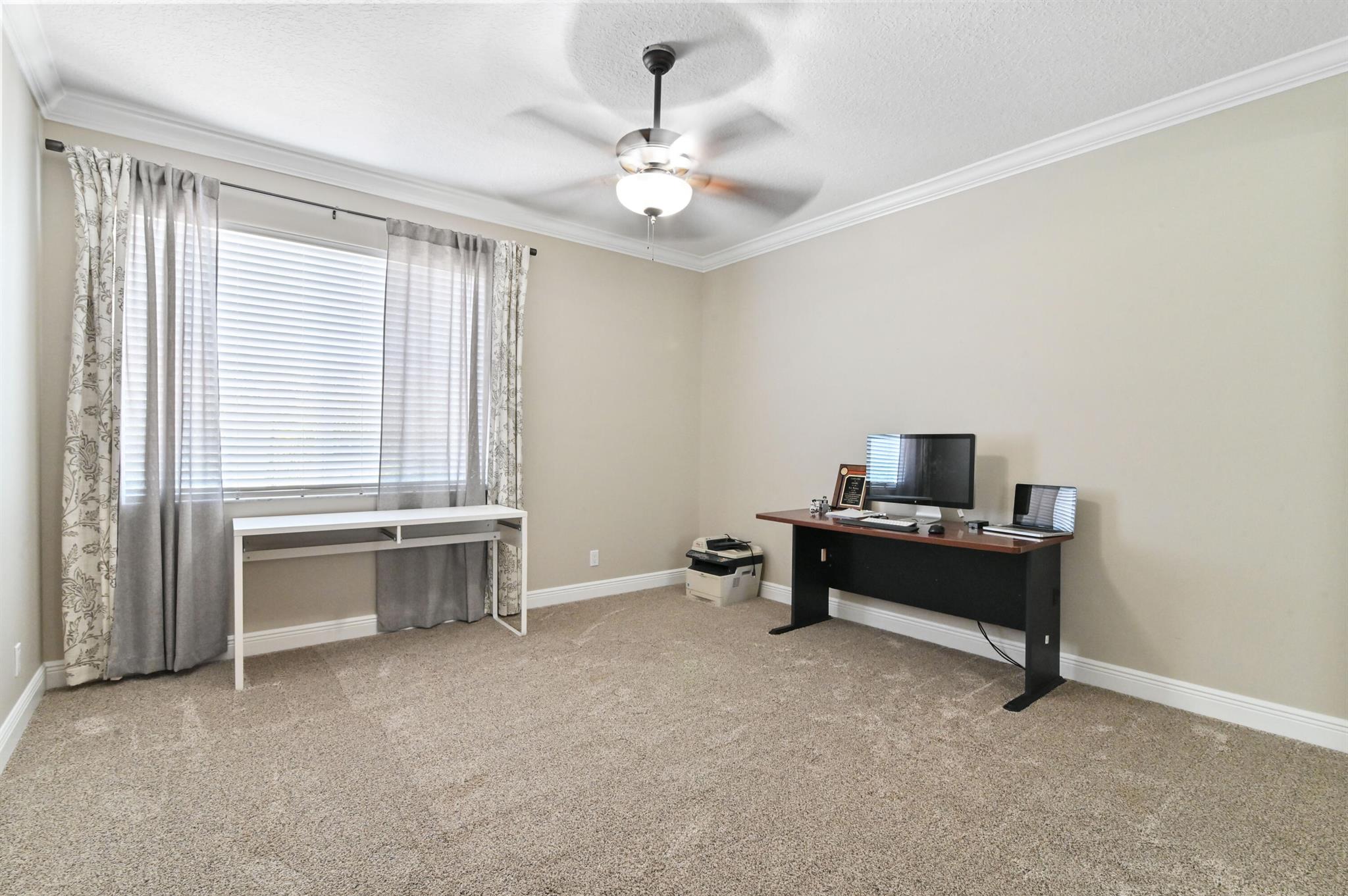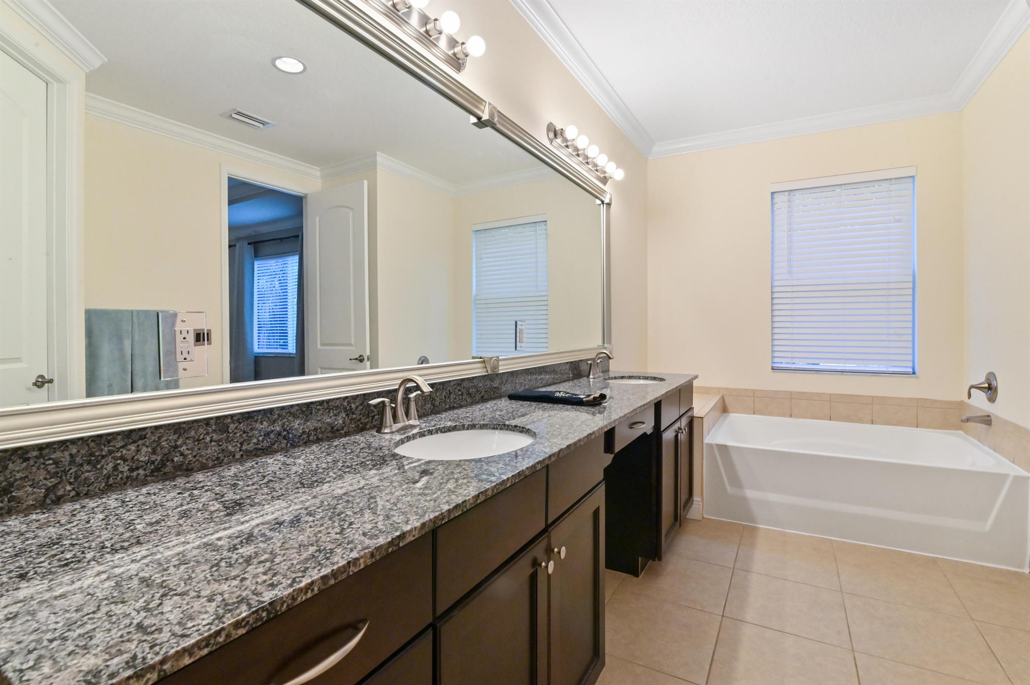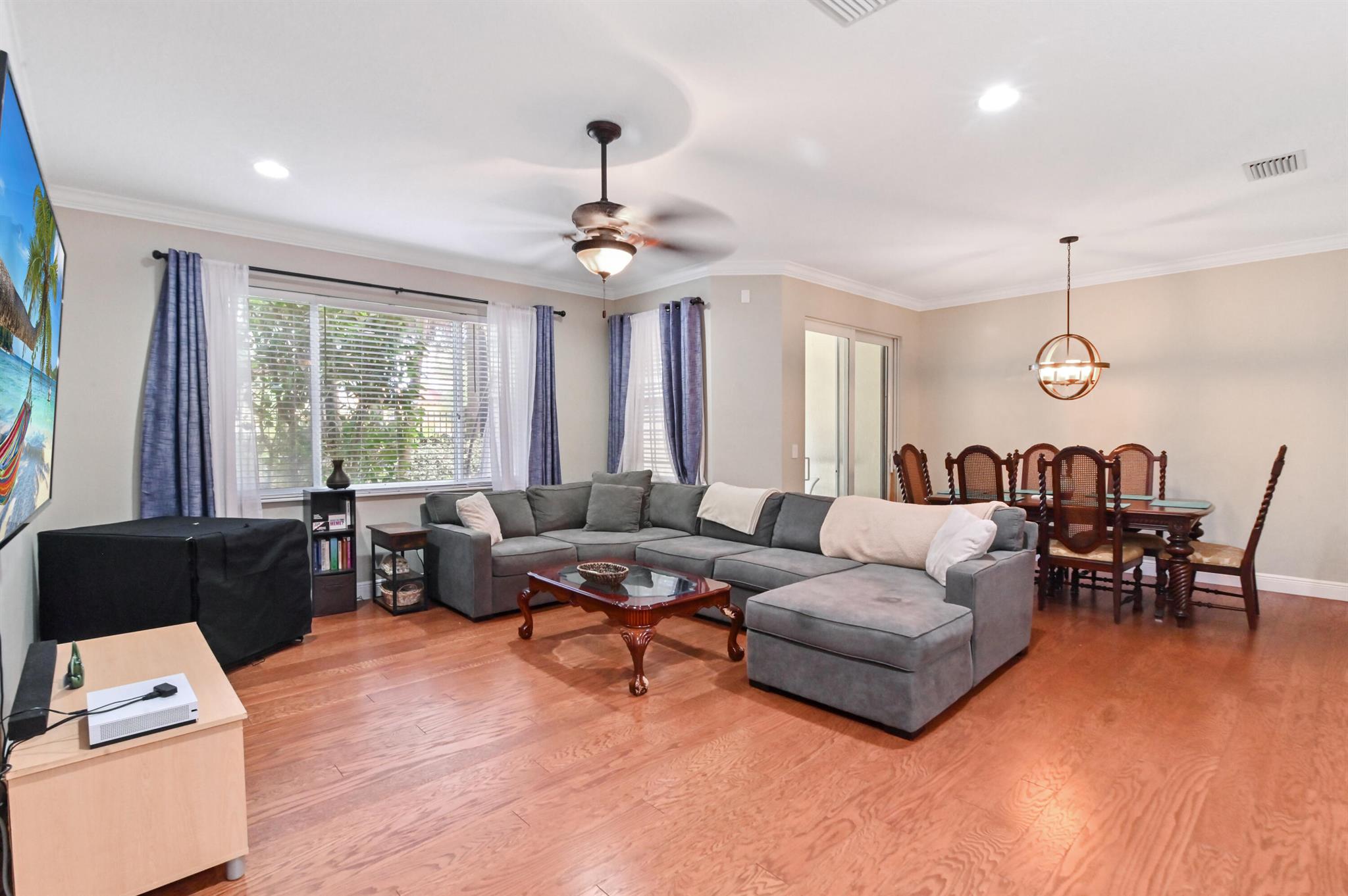 Come live in this beautifully remodeled, spacious, two story townhome w/ impact windows. Custom kitchen w/ Quartzite counters, professional grade stove/oven, matching convection microwave, dual sinks, under cabinet lighting and 42'' cabinets. Crown molding and hardwood floors on lower level with laminate wood adorning the staircase. All bedrooms are nicely sized. Oversized primary w/ two massive walk in closets and tray ceiling. Plenty of storage with cabinetry in the garage. AC done in 2023! Landscaped backyard with private extended patio. Upstairs laundry room with wash basin and front loading washer/dryer. Centrally located close to the Turnpike, I-95, Downtown, Cityplace, airport and the beach. HOA covers insurance, exterior maintenance, clubhouse with game room and heated pool.