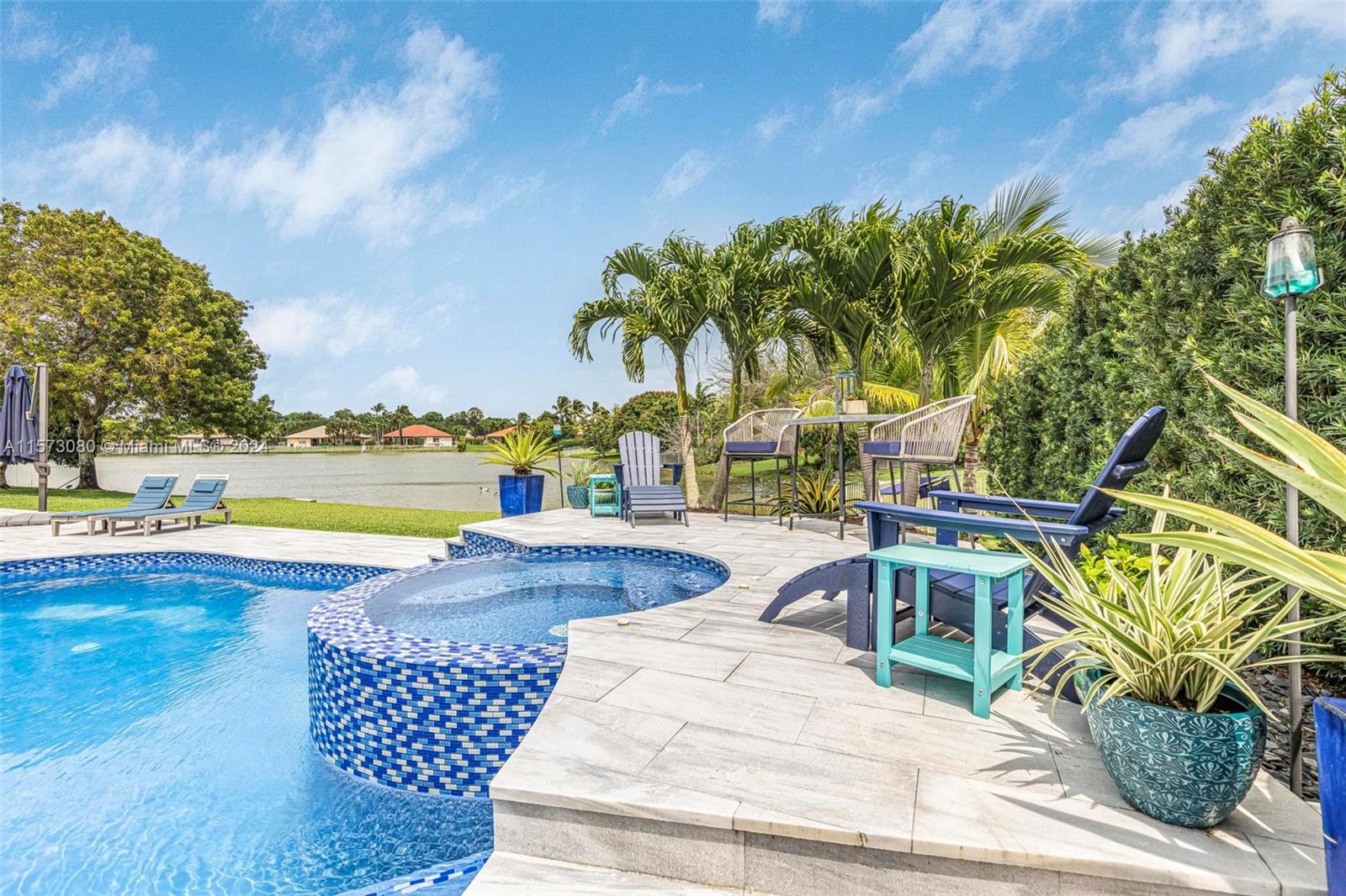 RARE OPPORTUNITY! Introducing this stunning 4/2.5 + bonus office, heated pool & lake front home located in the highly sought after Country Glen. This inviting property offers a sanctuary of comfort and relaxation. Step into your own private backyard oasis, where the shimmering waters of your new pool blend seamlessly w/ the sparkling lake views. NEW remodeled kitchen w/ timeless white cabinets, quartz countertops, SS appliances and large island! Impact windows and doors throughout! New flooring! New A/C's! NEW WASHER/DRYER. EPOXY GARAGE. Entertain guests on the spacious new patio & unwind in the jacuzzi as you watch the sunset. Exclusive gated community w/ 24/7 manned guard & includes park, tennis courts, basketball courts and beach volleyball! Excellent location w/ A+ rated schools.