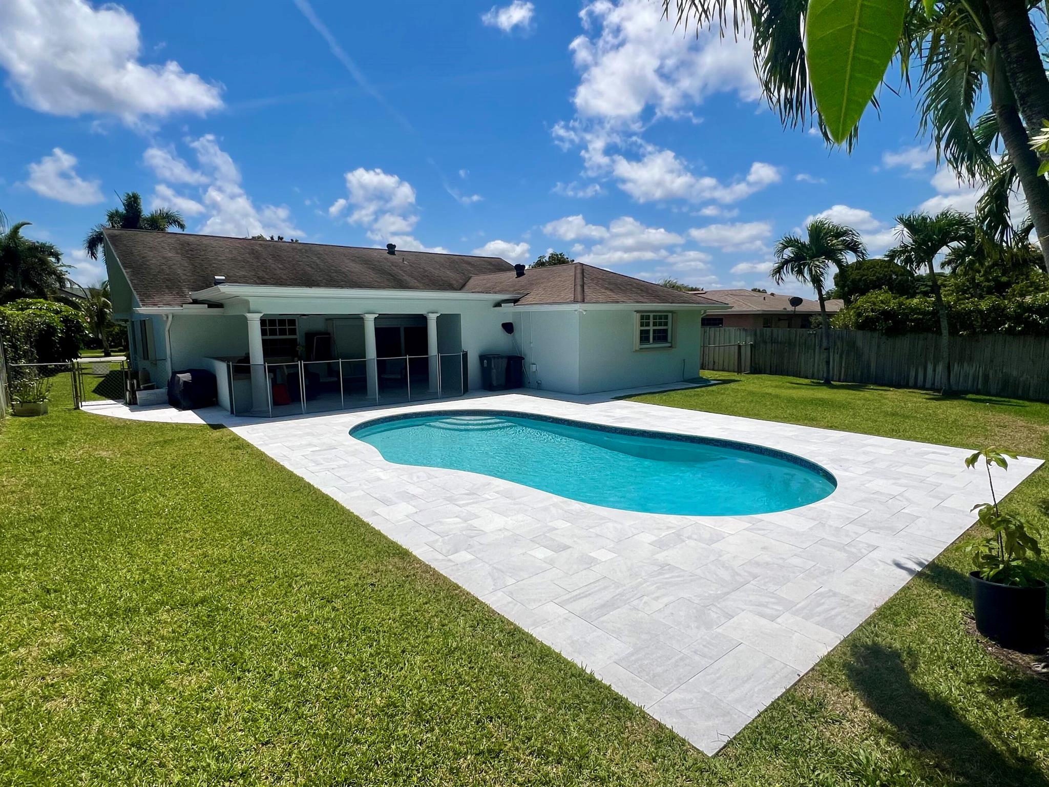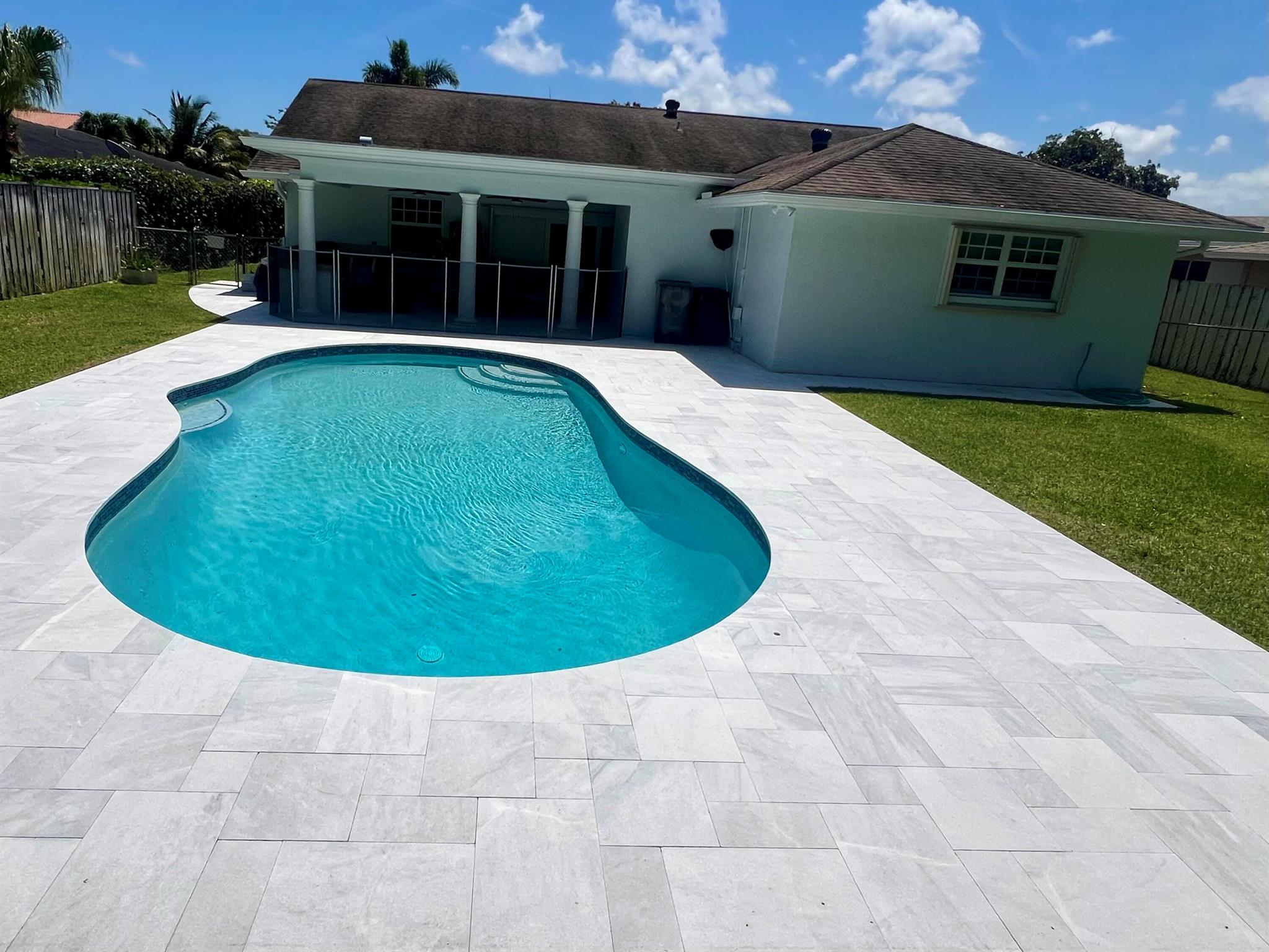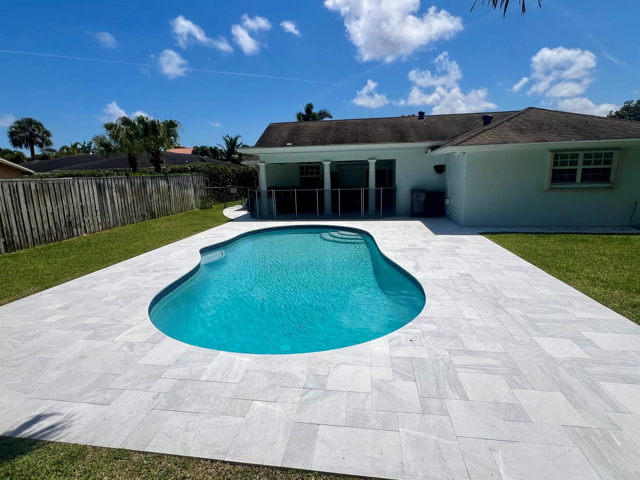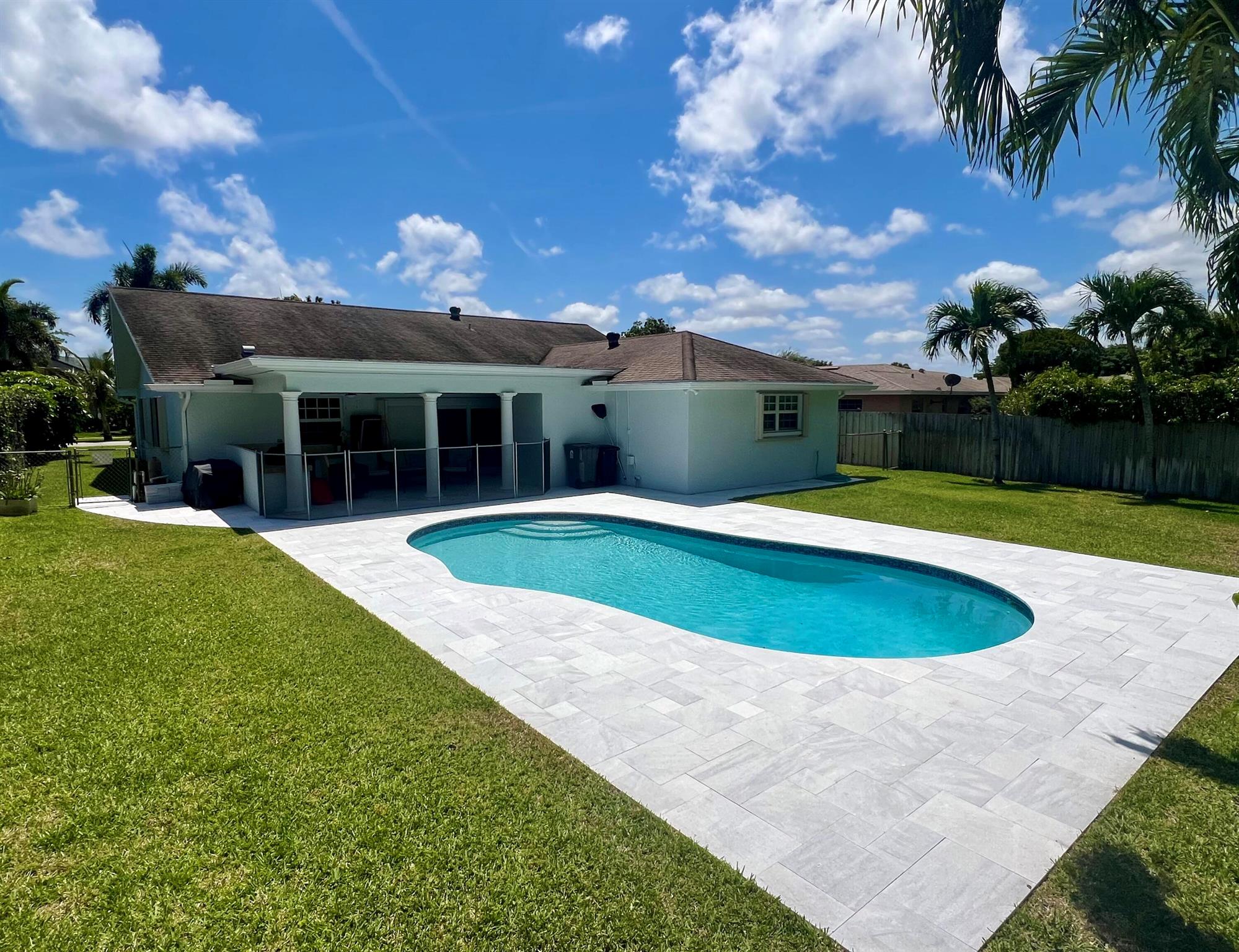 This beautiful 3 bedrooms 2 bathrooms home on Gabriel Lane boast a wide-open and spacious floor plan which is perfect for in-door entertainment. Take your entertainment outside to the beautiful and recently resurfaced pool, new pool deck with outdoor patio kitchen.Every window has beautiful wide plantation shutters, 2018 air conditioning, deep water well for sprinkler system, new driveway and entry way resurfaced with pavers. This home is 100% protected from hurricane force winds by impact windows and accordion shutters for double protection, hurricane proof garage door and front door. Centrally located in thought after neighborhood, close to downtown West Pam Beach, parks, beaches and Palm Beach International airport. A short bike ride to Pickleball courts.