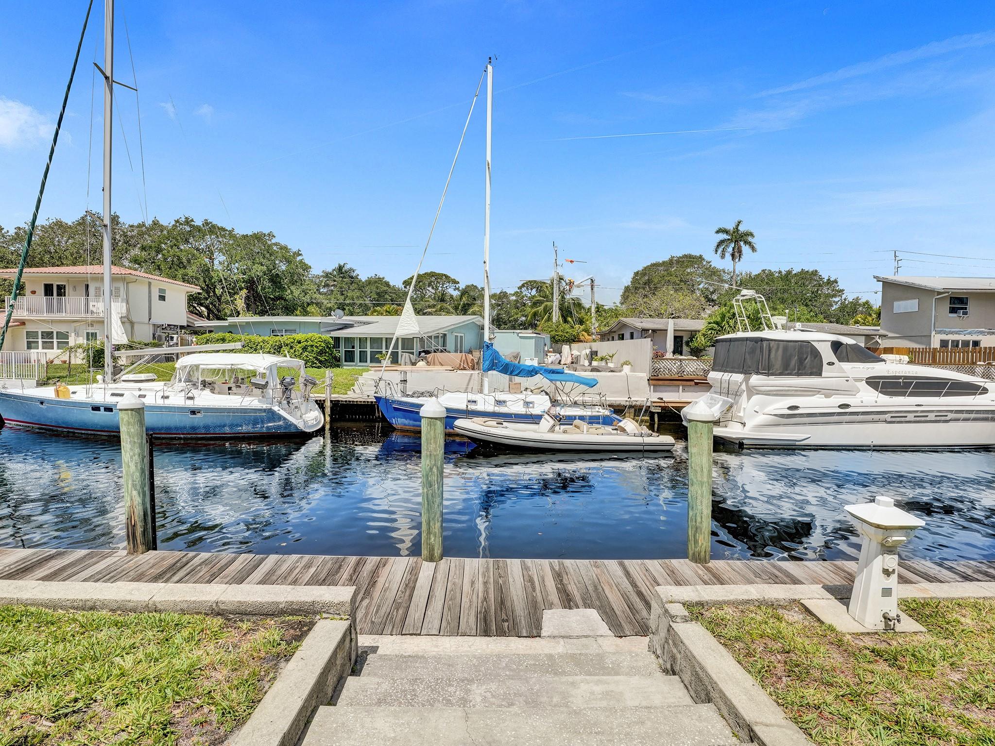 Fantastic Opportunity in sought after Shady Banks. 3-bedroom 2 bath home 60 ft of Waterfront- Ocean Access-No Fixed Bridges. Only 5 houses from the point/New River. Mid Century character with Terrazzo Floors, Vaulted Ceilings, Open Kitchen w/ Counter Seating. New AC 2023. Open Floor Plan filled with Natural light. Impact windows & doors,1 car garage. Tranquil & private, screened porch to enjoy morning coffee & evening cocktails looking out to the water. Conveniently located minutes to the Airport, Port, Downtown & the Beach. Surrounded by the New River with one way in/out this secluded neighborhood is a hidden gem, offering 2 parks: Hortt Park with Tennis, Volleyball, Softball, walking paths plus the Bill Keith Nature Preserve along the New River. Great deal for waterfront on the Eastside