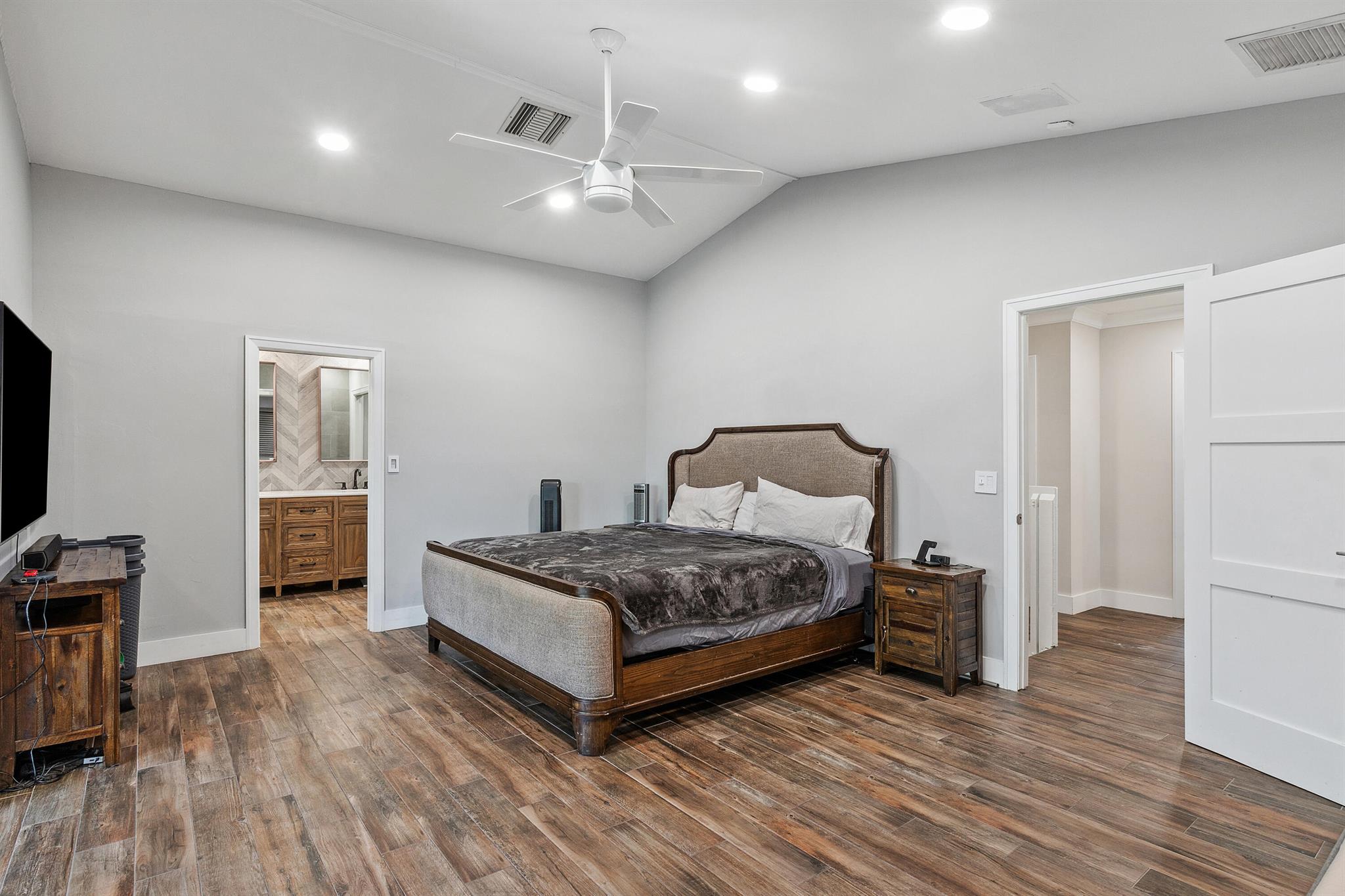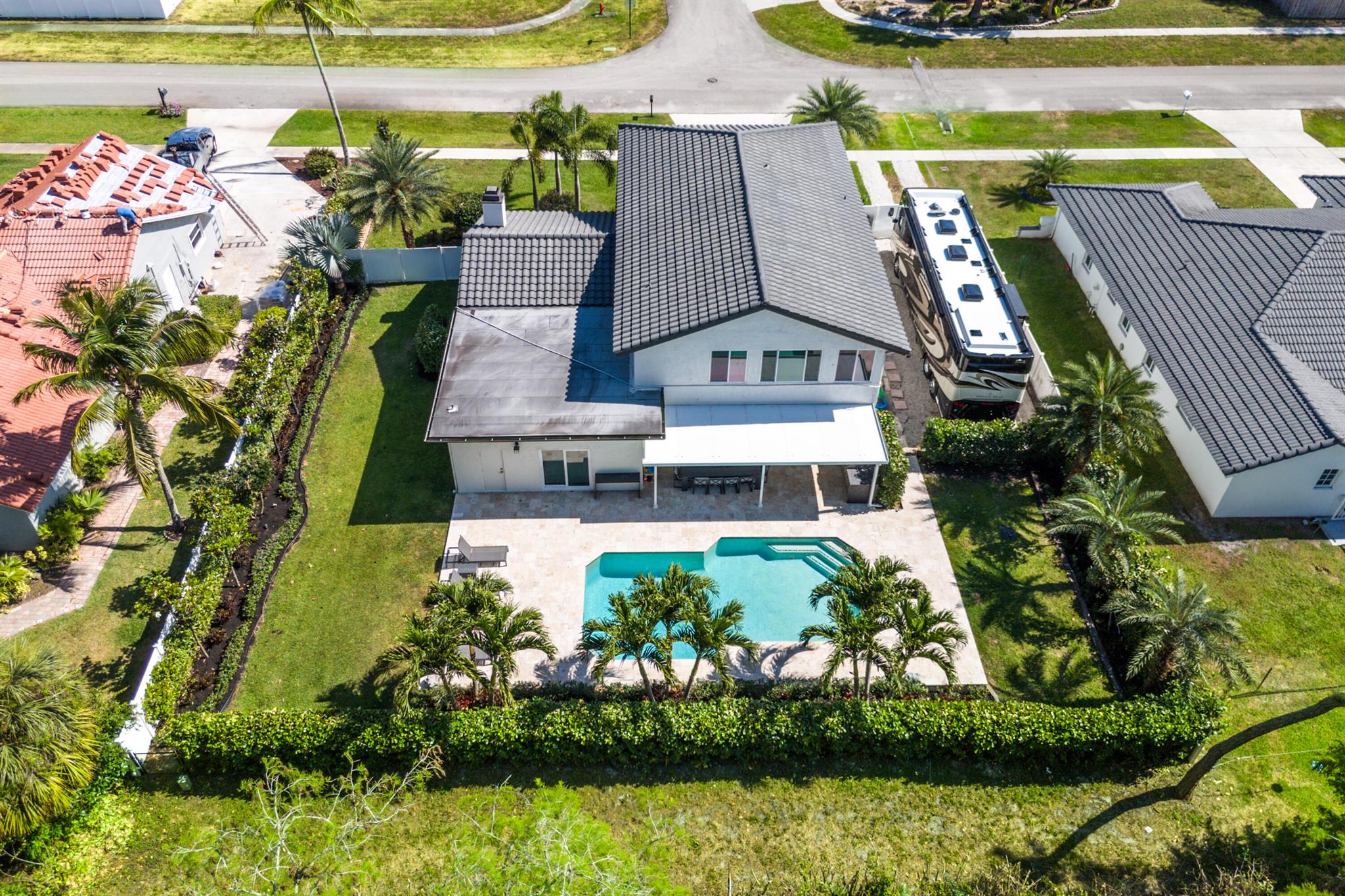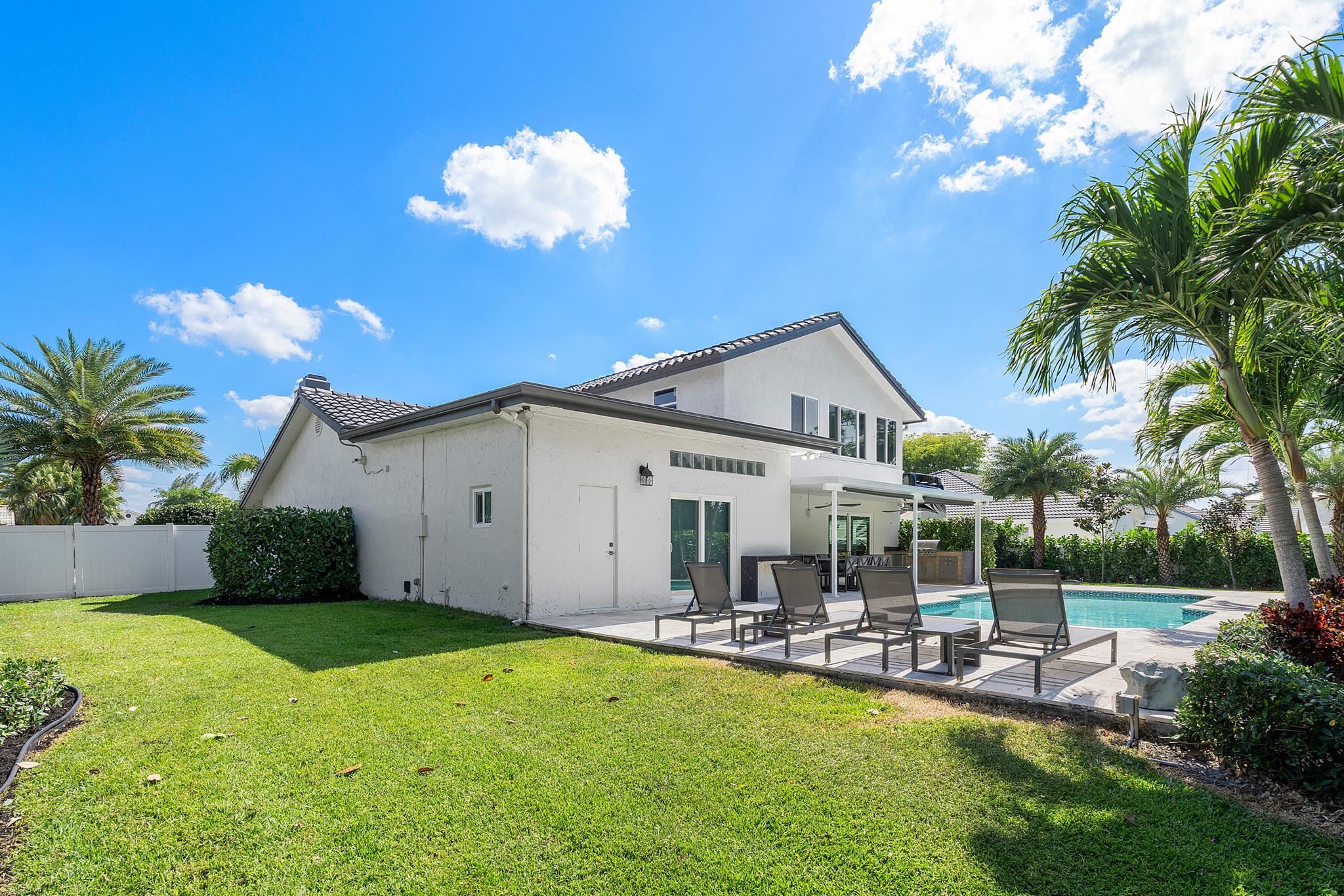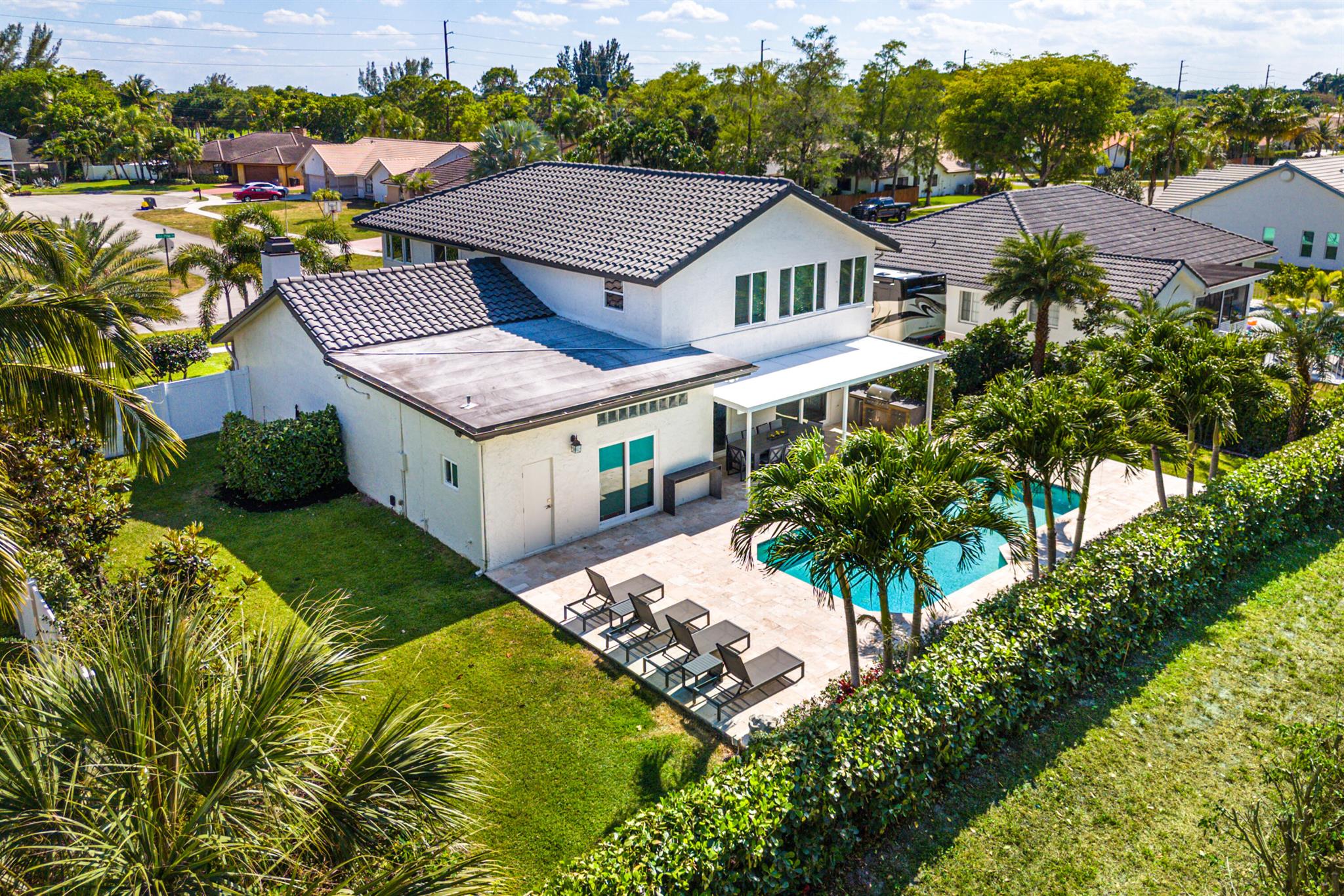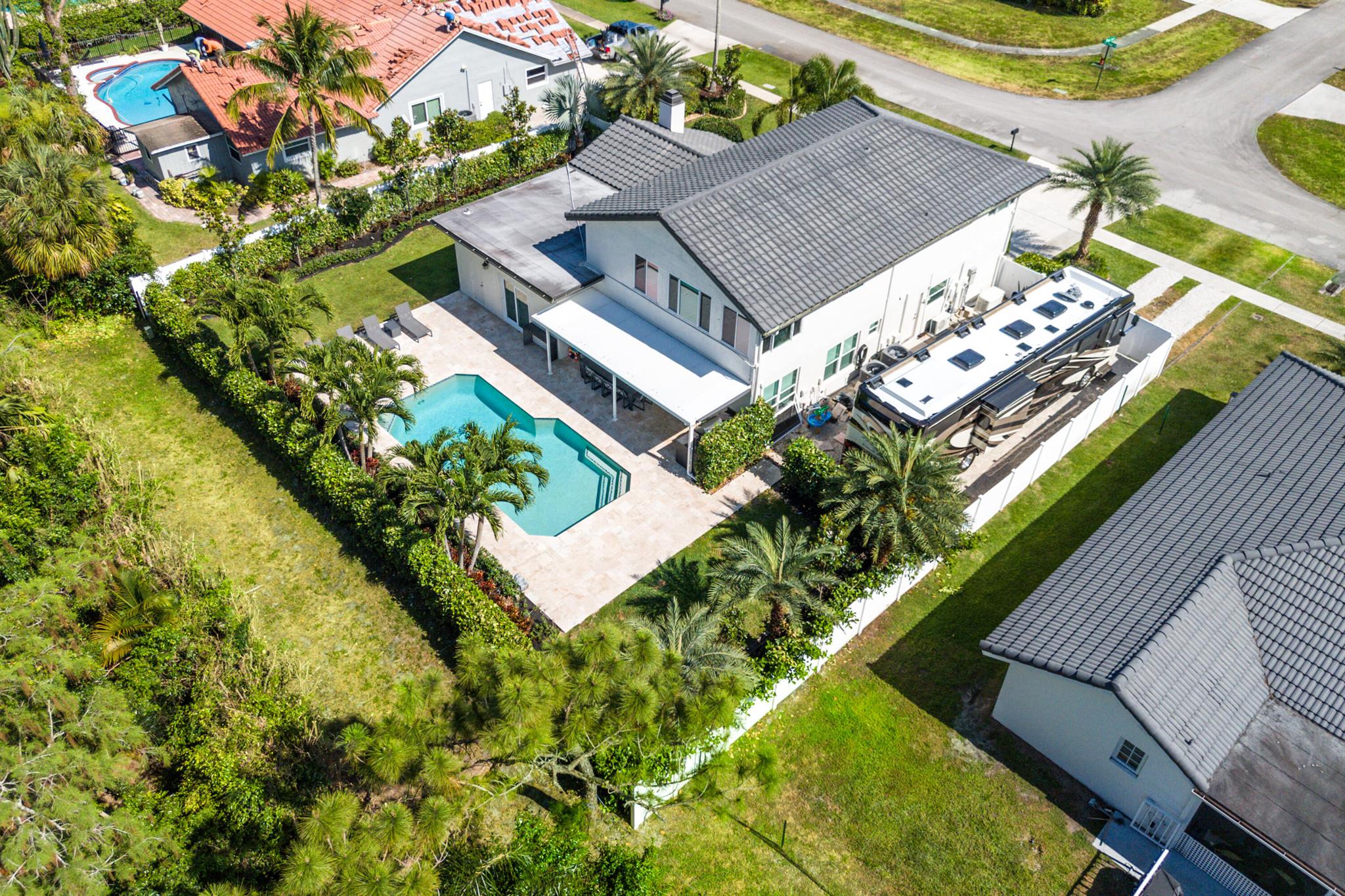 NO HOA!! Welcome to this fully remodeled, top-of-the-line home for sale. This exquisite property boasts every luxury and convenience imaginable. From the moment you step inside, you are greeted with stunning high ceiling rooms, flooded with natural light. The gourmet kitchen features high-end appliances, custom cabinetry, and a spacious island perfect for entertaining. The luxurious master suite is a true oasis, complete with a spa-like bathroom and 2 large walk-in closets. Outside, the meticulously landscaped yard offers a private retreat with a sparkling pool, outdoor kitchen, and 50FT fenced parking for any RV or Boat. This home truly has it all, including smart home technology, tile floors, and designer finishes throughout.