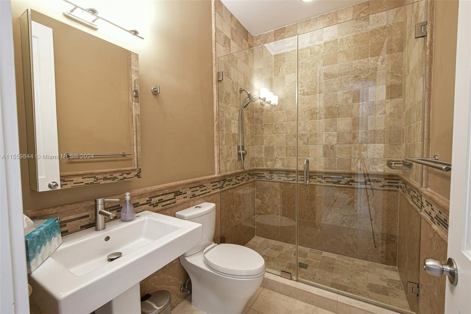 You do not want to miss visiting a gorgeous 3 beds 3 bath home. No detail spared, 10' high ceilings w/crown molding, marble, stone floors, wood baseboards, windows & doors impact resistant. Front & back doors are Mahogany. Large closets. Eat-in Kitchen, SS appliances, pantry. All windows have Zebra blinds, bedrooms also have black-out blinds. Dining has Bar, Mini-fridge & with Living & Master bedroom have slide-away impact glass doors. Open to enjoy covered/screened-in porch, then step outside to open-air seating area facing beautiful lush worry free back garden w/orchids, flowering bushes, Lychee tree, Astro-turf, automatic sprinkler watering system, and an outdoor shower. 1-car garage with auto/gate & Tesla car charger. Driveway for 6 cars. Ring doorbell, Lights/Cameras around perimeter.