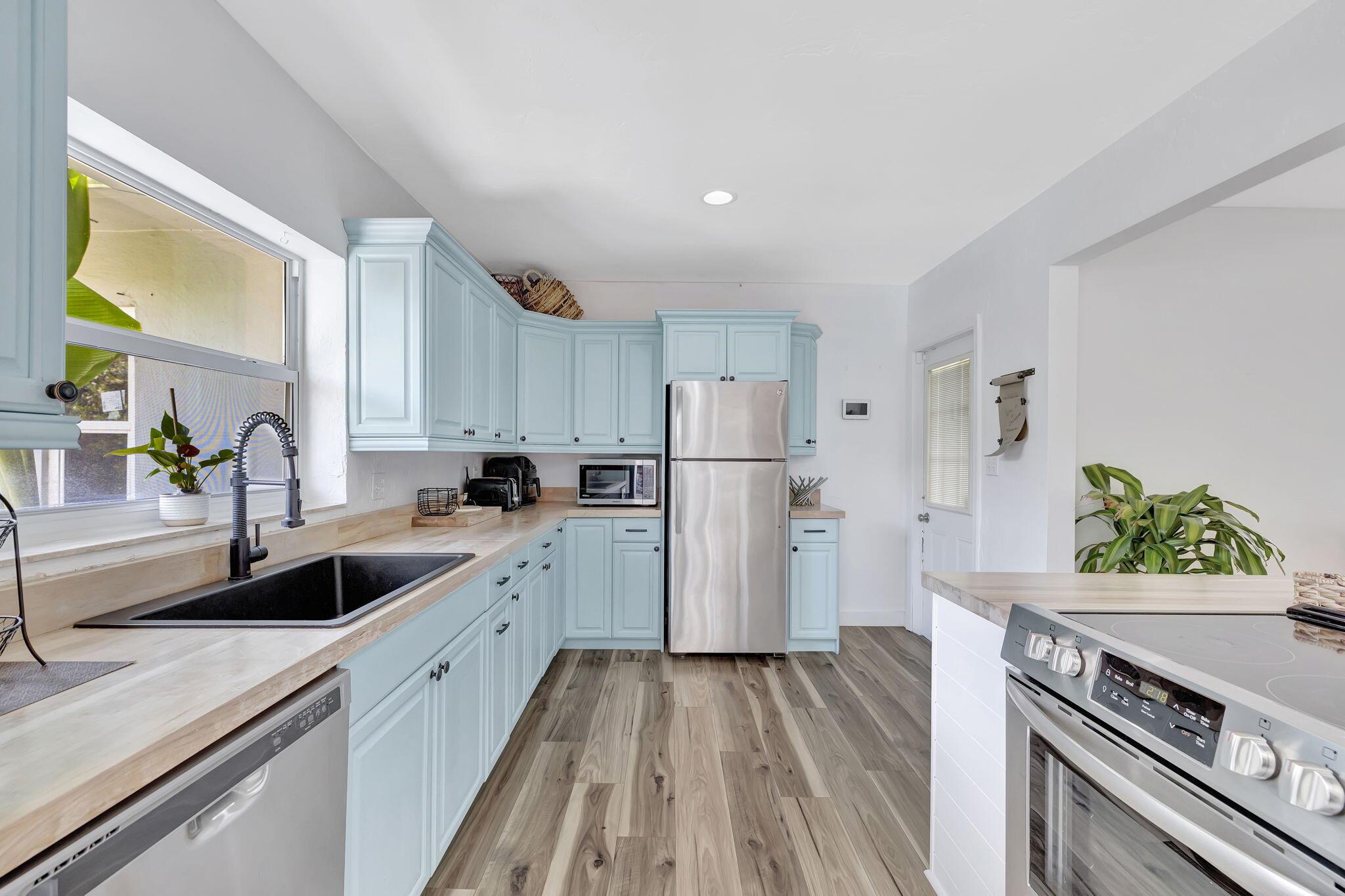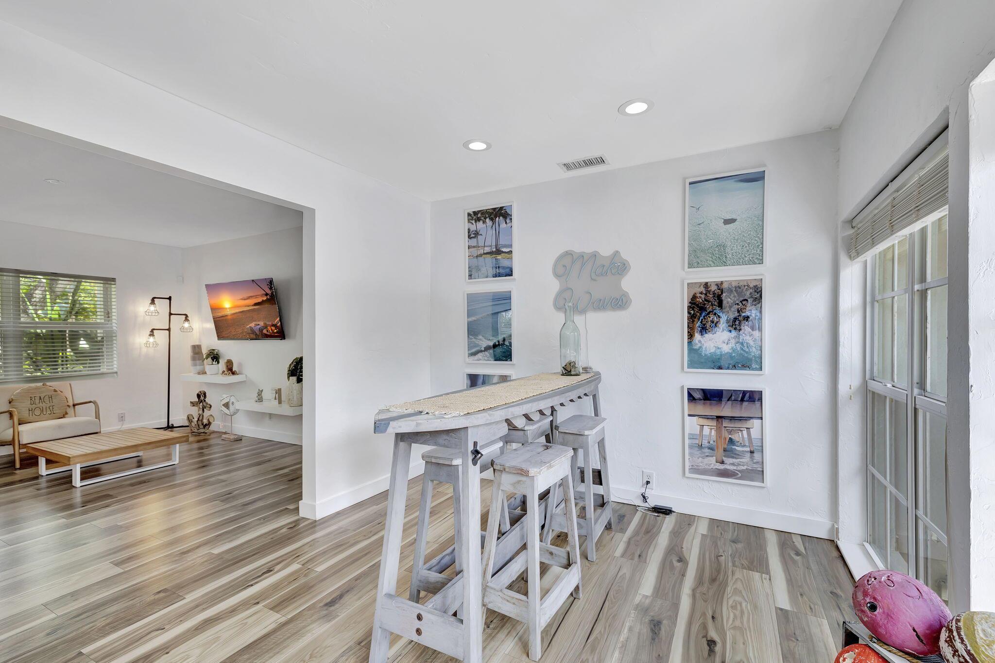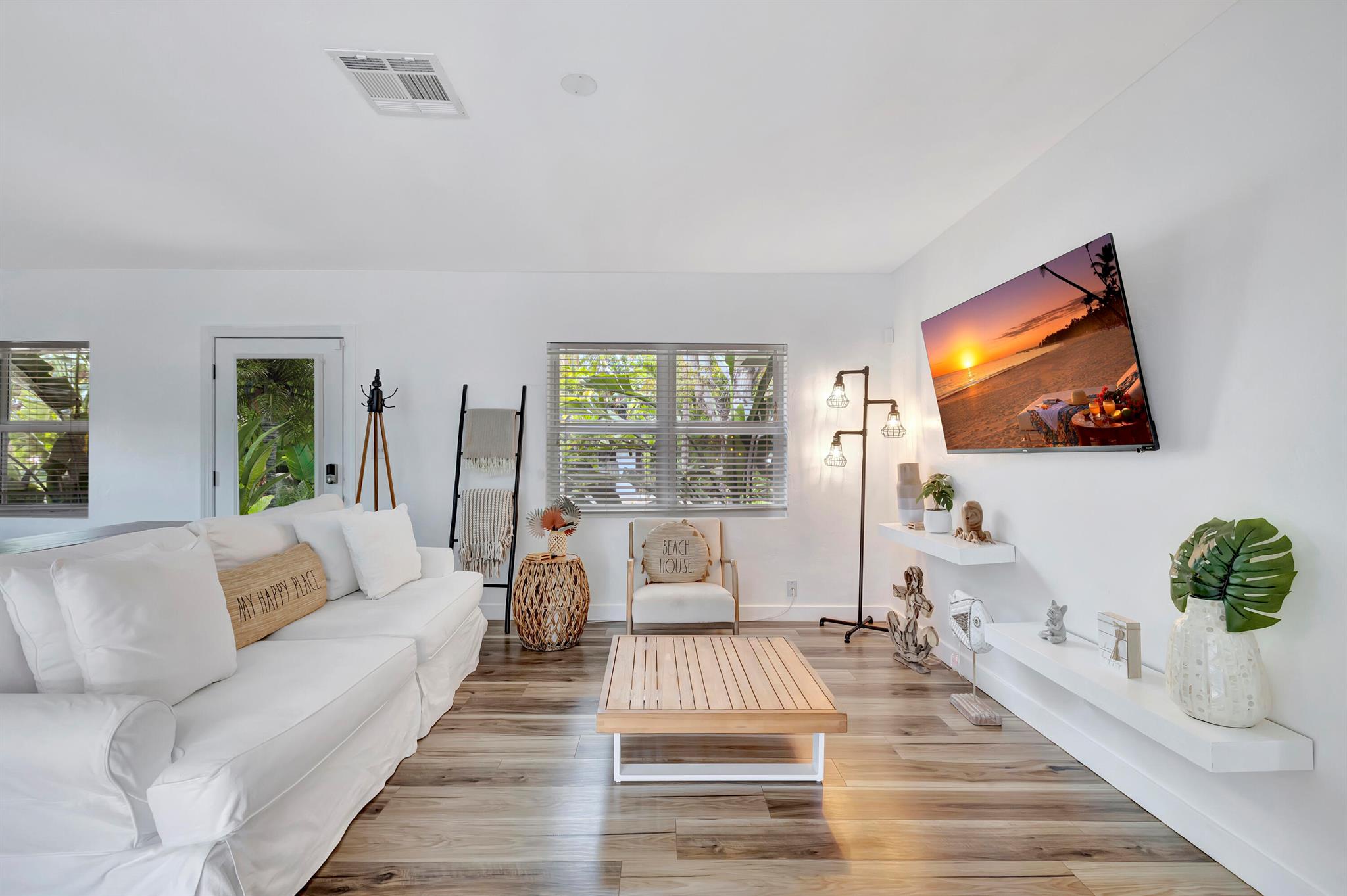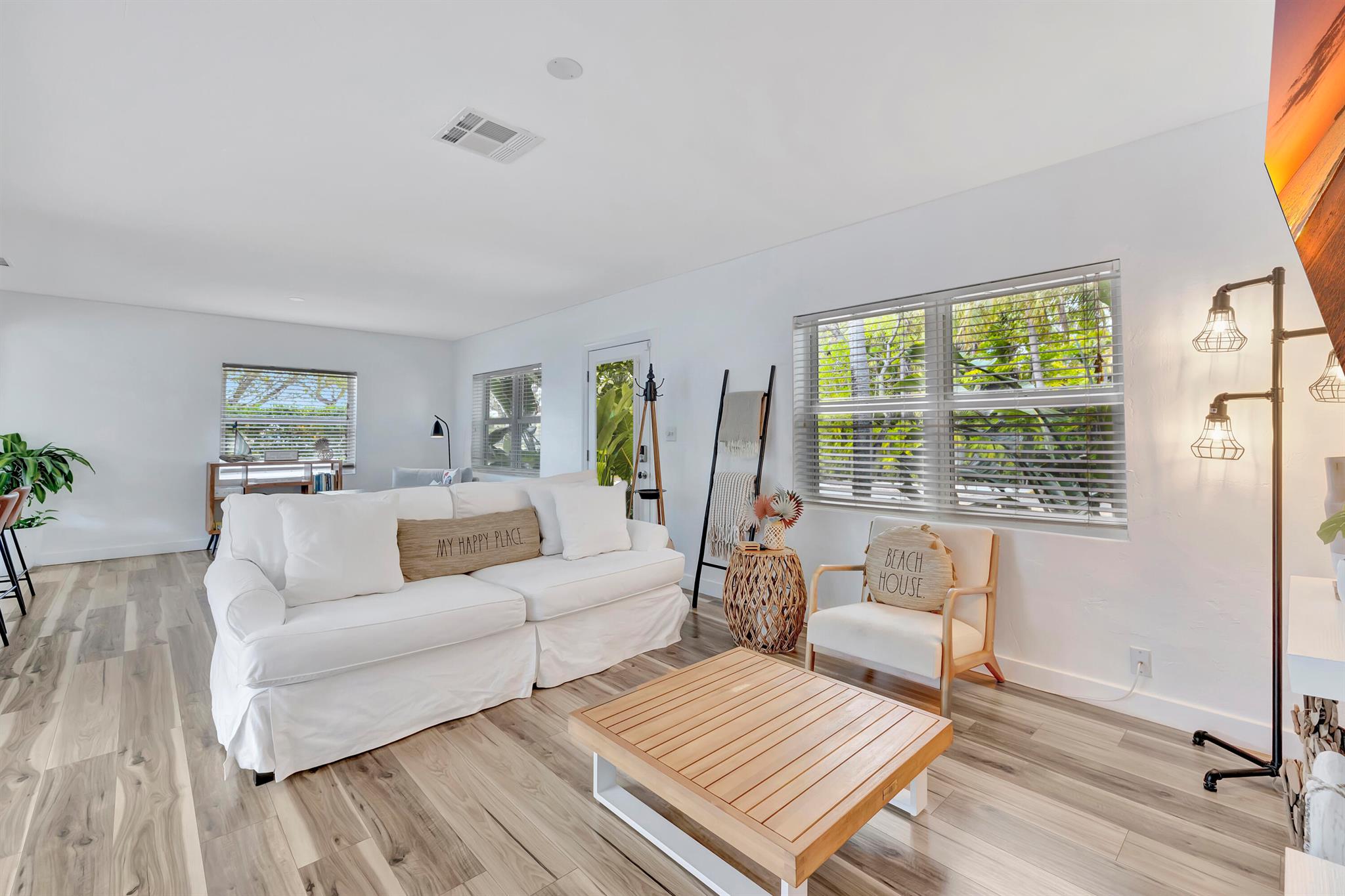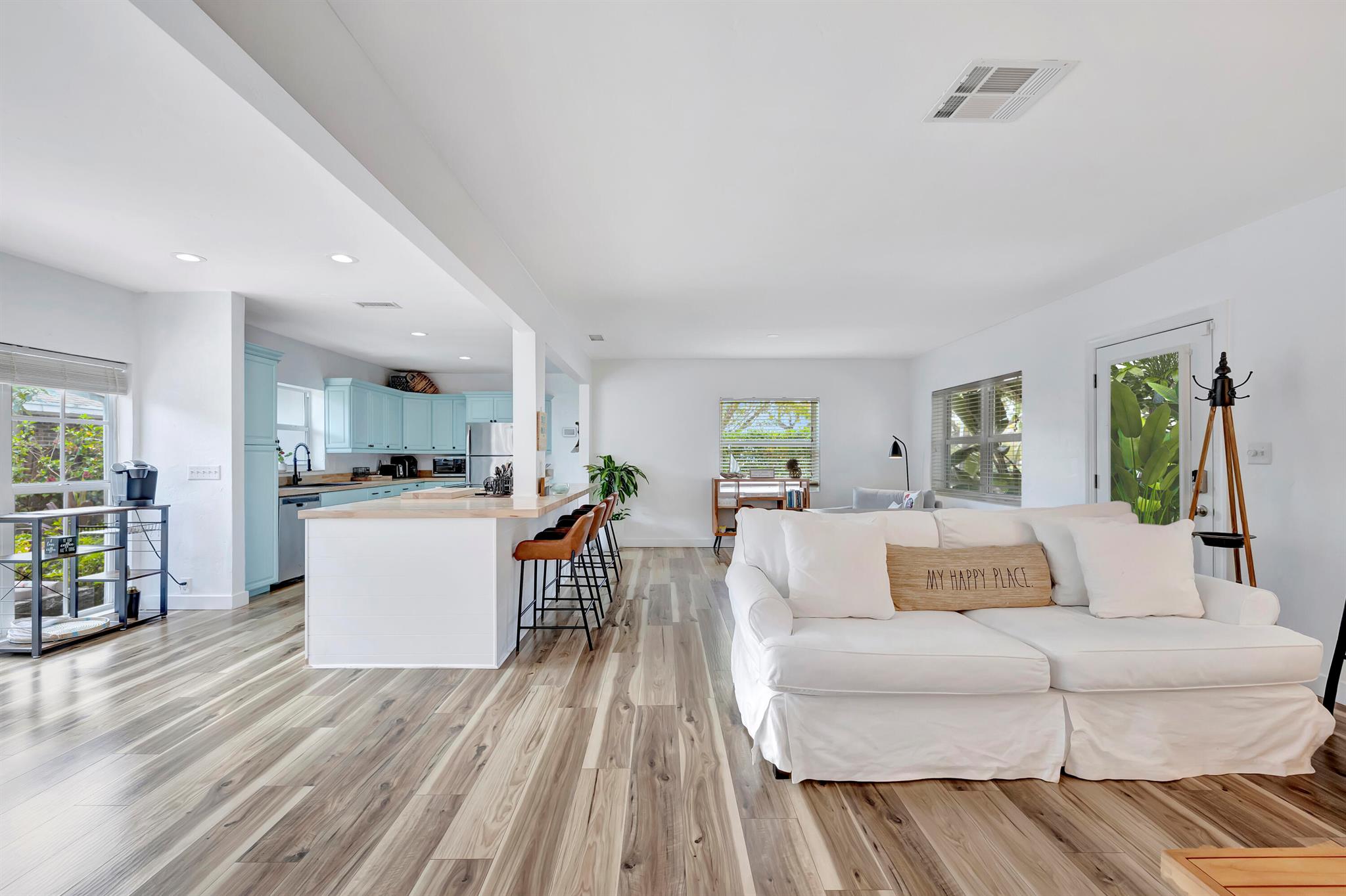 Experience the epitome of South Florida living in this beautifully appointed 2-bedroom, 2-bathroom CBS home, ideally situated on a corner lot and within walking distance of vibrant downtown West Palm Beach, Dixie Corridor and steps from Howard Park. This delightful residence is perfectly placed to enjoy the best of city life and relaxed beach living, just 3 miles from the sandy shores and with direct access to the green spaces and recreational facilities of Howard Park. Enter a bright, open concept living area that gracefully combines the lounge, dining, and kitchen into a cohesive space perfect for modern living. The large windows enhance the home's airy and welcoming vibe. The home boasts two generously sized bedrooms, each with its own