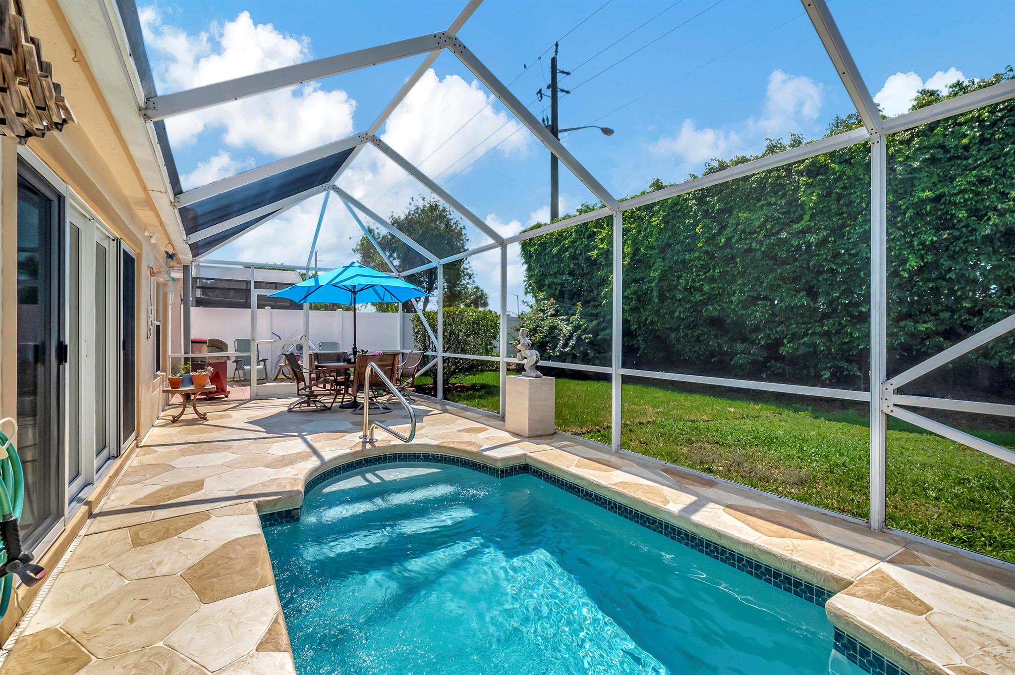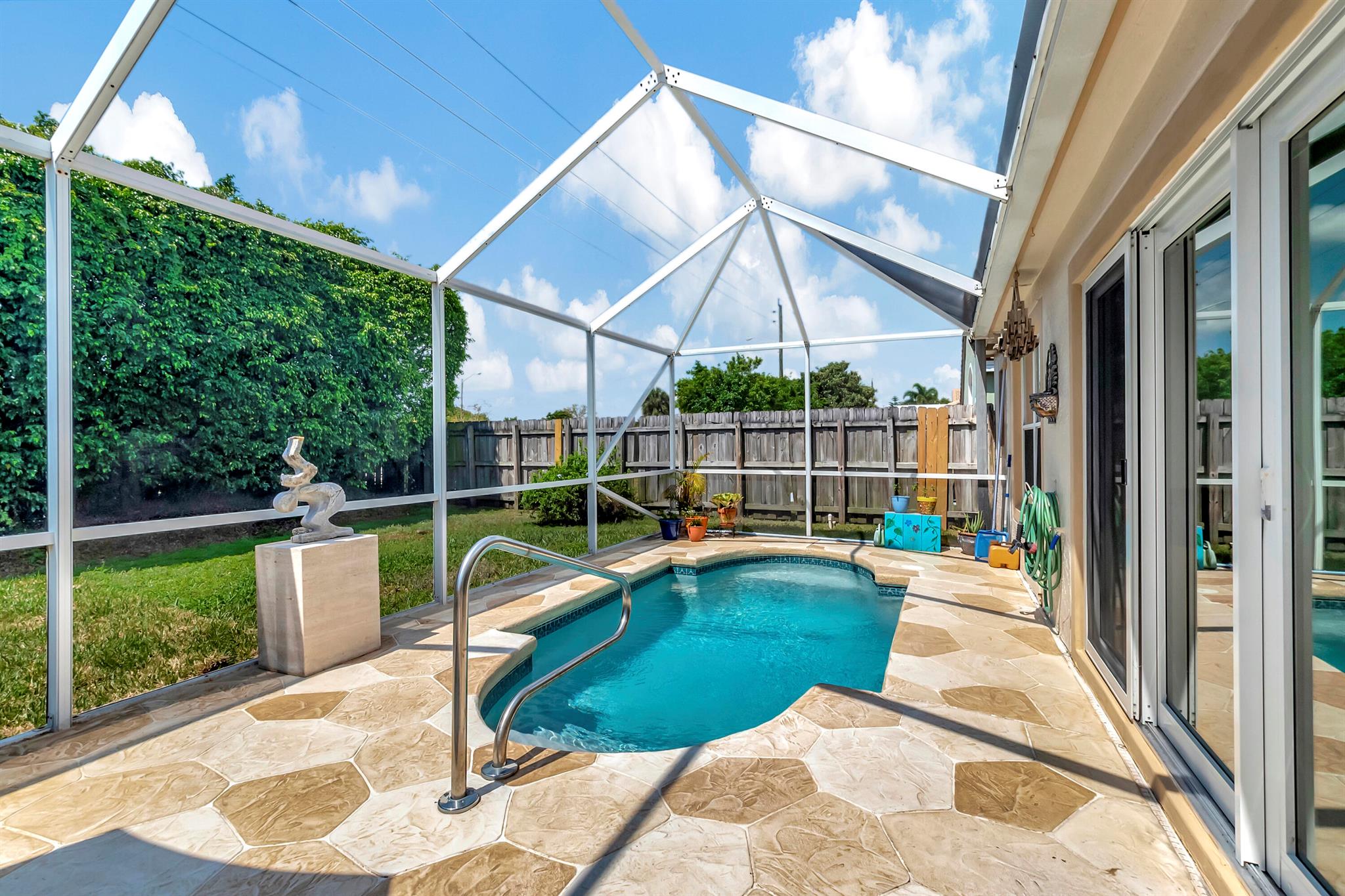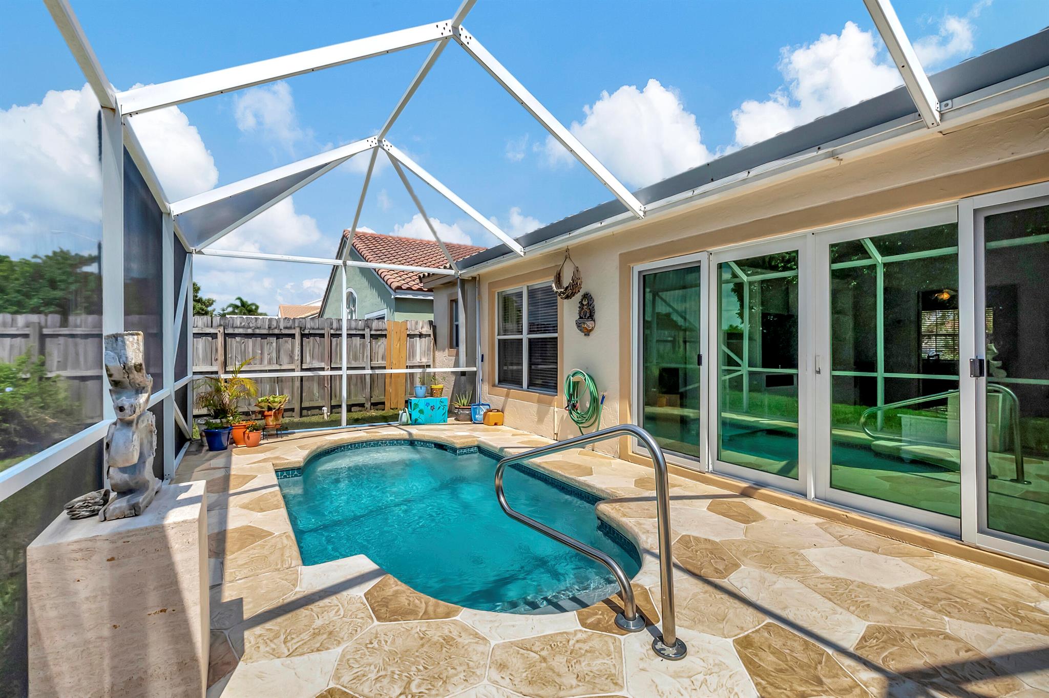 Charming 3-bedroom Private pool home! Large screen room over pool and patio plus a fully fenced yard and green area. Updated kitchen with wood cabinets and granite counters. Update bathrooms with stylish tile and vanities. Freshly Painted interior. Tile in main area and laminate wood in bedrooms. Sliding door in living is Impact. Roof 2014 AC is 8 years inside and 5 years outside, Water heater 2019 Pool pump 2023 Driveway was widened and can accommodate 4 cars! Low Homeowners association includes Fiberoptic Cable 3 boxes and Wi-Fi. Community pools, playgrounds, basketball, pickleball, tennis & racquet ball. Sidewalks and streetlights throughout the neighborhood for biking and walking safely. Excellent school district. Close to shopping and restaurants.