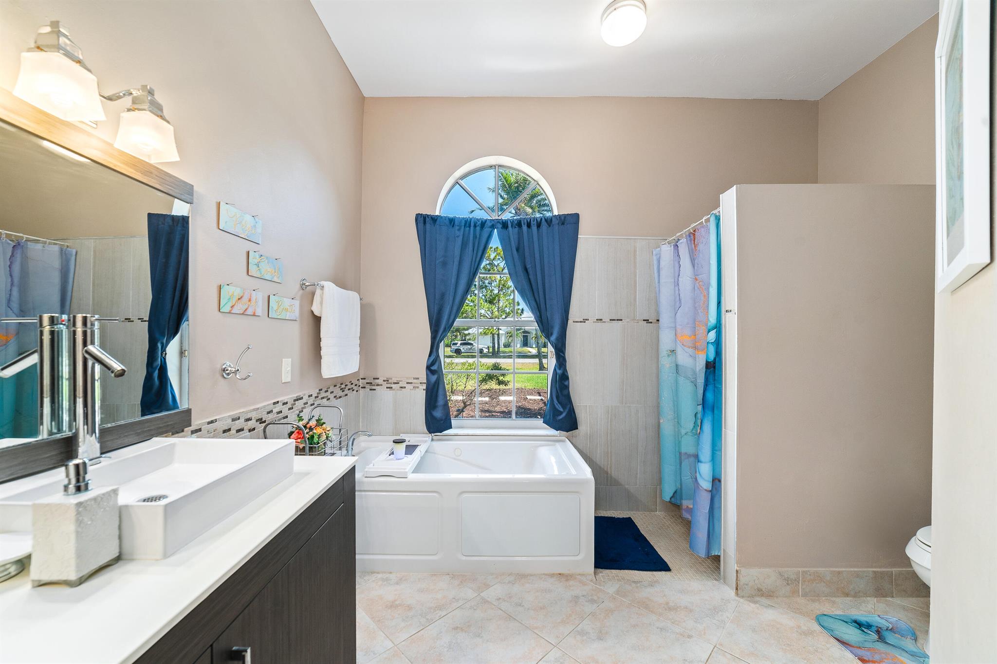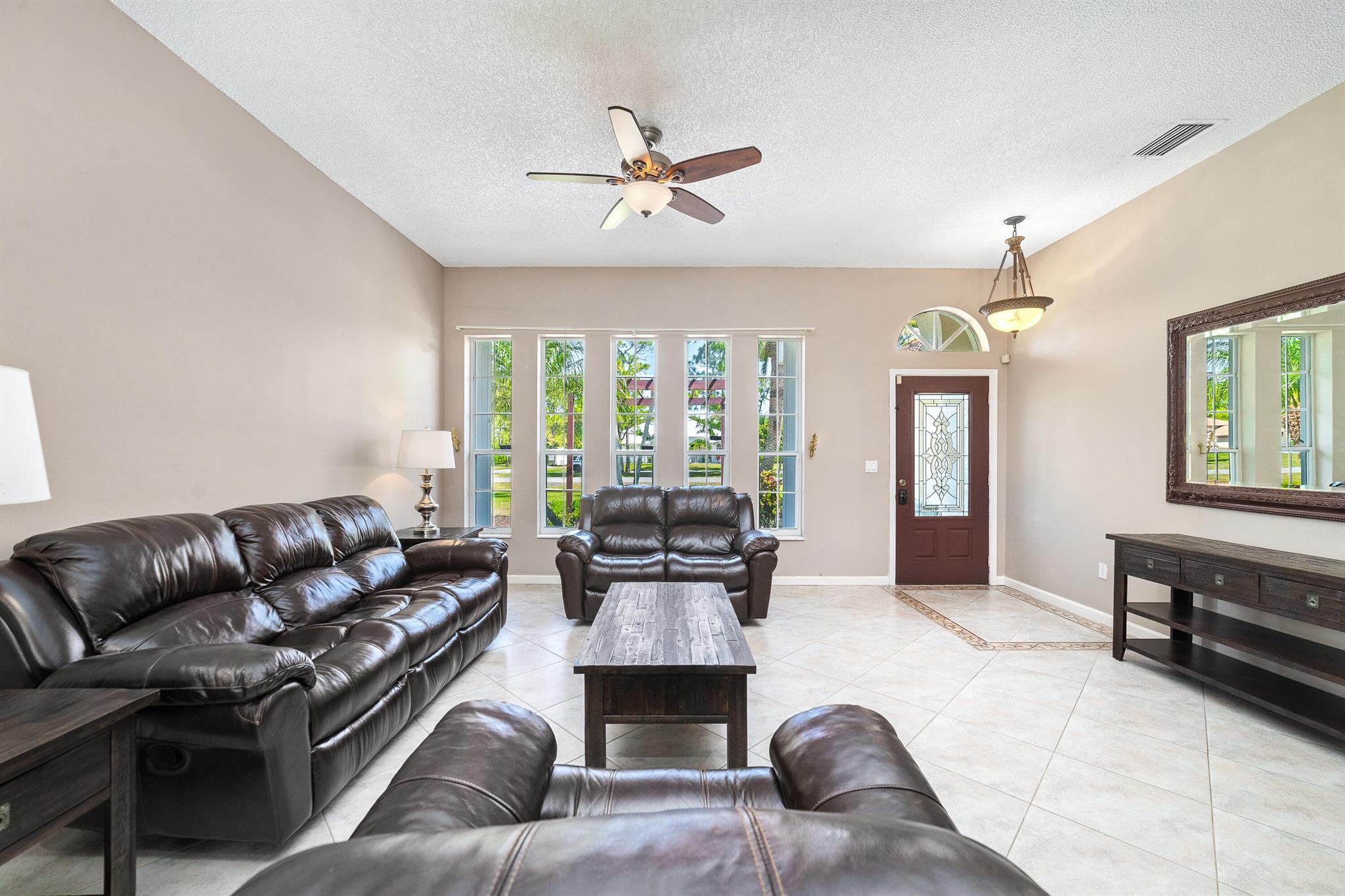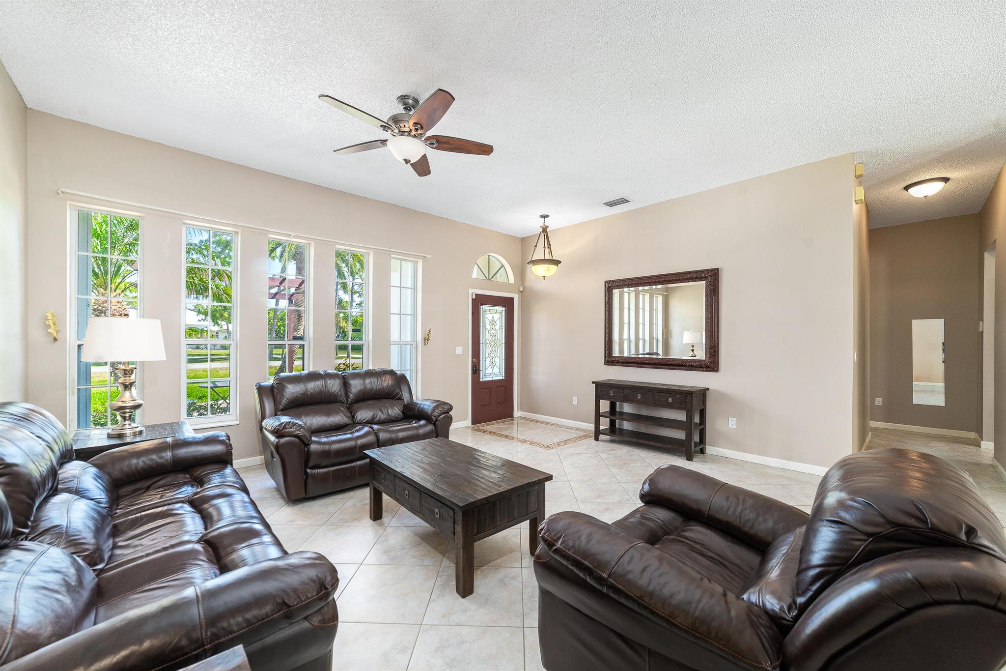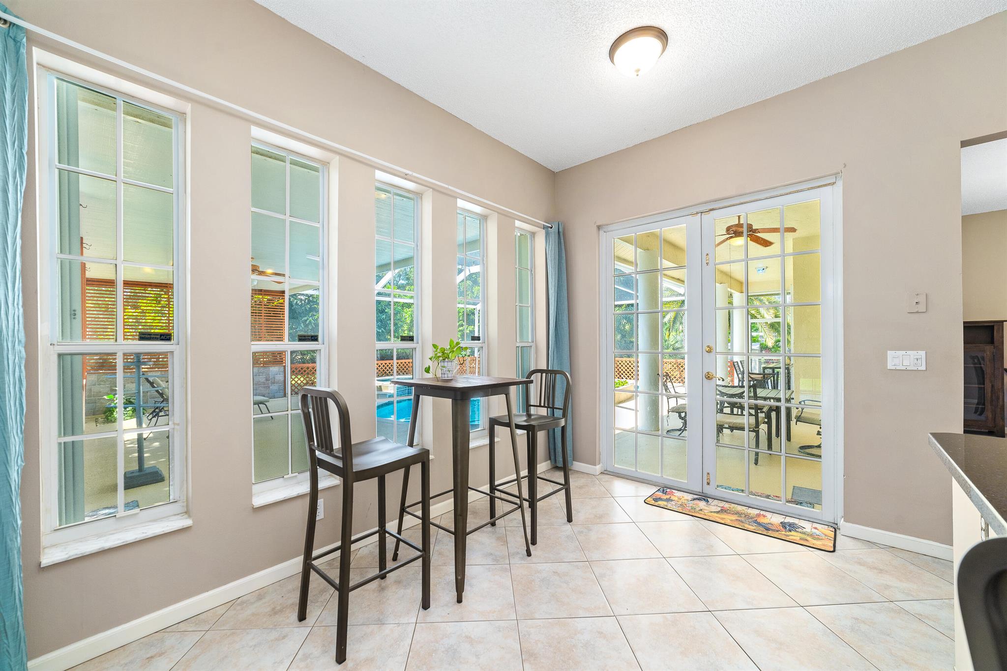 Enjoy the perfect blend of indoor and outdoor living in this beautiful pool home in a great location with NO HOA! It rests on a private 1.15 acre lot in a prime location on a quiet, dead-end and paved street only 1.5 miles from the new town center and near several top notch golf courses. A-rated elementary and middle schools! The home features 10' high ceilings, tile flooring diagonally, French front and patio doors, accordion shutters, whole house water filtration system, exterior painted in 2024, newly painted S-tile roof installed in 2016, and HVAC replaced in 2021. The upgraded kitchen is equipped with beautiful granite countertops, white cabinets, pantry, and island. Primary bedroom offers access to the patio and features his and her walk-in closets. En-suite primary bathroom is