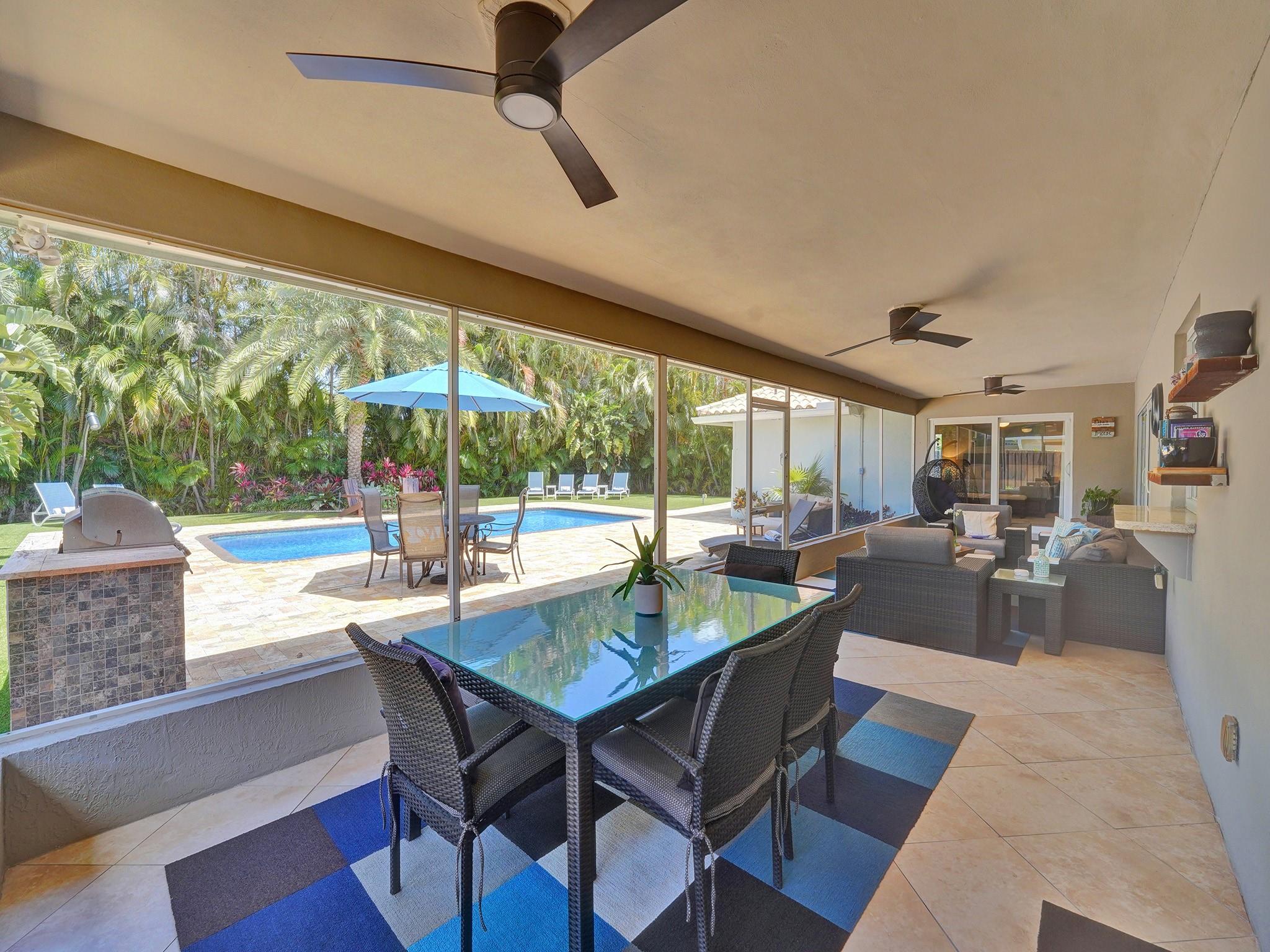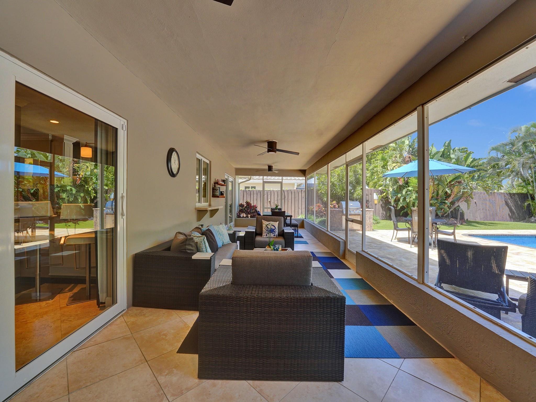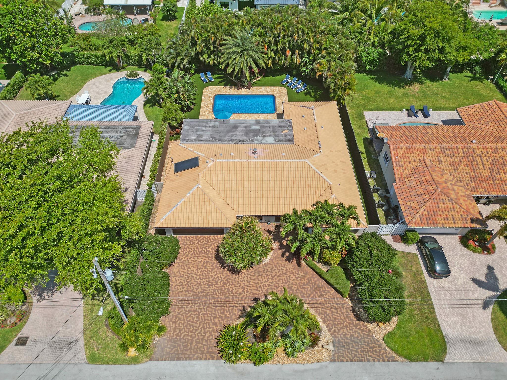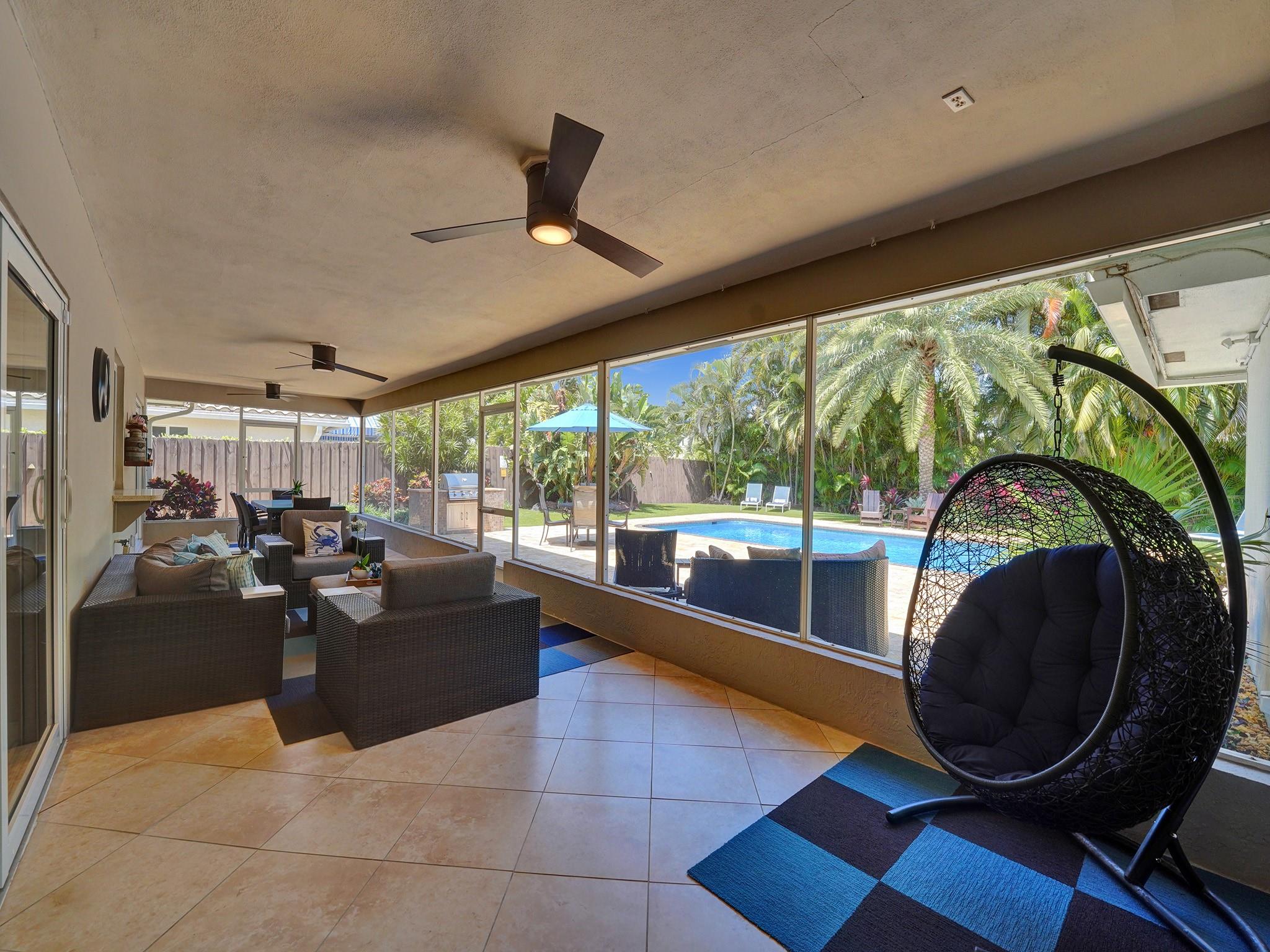 Welcome to your new TURNKEY secluded resort style home located on a quiet street within a 10 minute walking distance to the beach. This updated modern home features an oversize private professionally landscaped yard with a heated saltwater pool. The huge, screened lanai off the main living area will be your go too space to relax. Large living room with 2-sided wood burning fireplace, separate dining area. Kitchen features SS appliances, granite counters tops and adjoining sitting room. Large private primary bedroom with access to lanai, ensuite bathroom and Cedar WIC. Generous size secondary bedrooms and closet space. Impact windows & doors, 2 car garage with updated systems will make owning this home worry free. Close to shopping, airport, downtown Fort Lauderdale, Las Olas Blvd & LBS