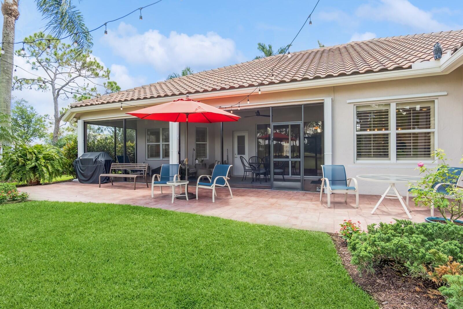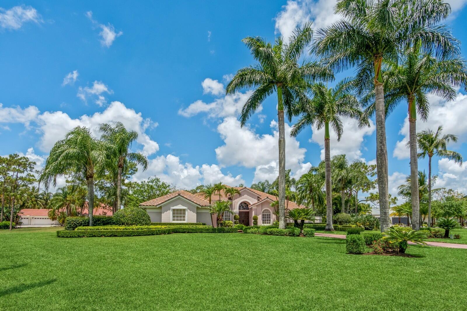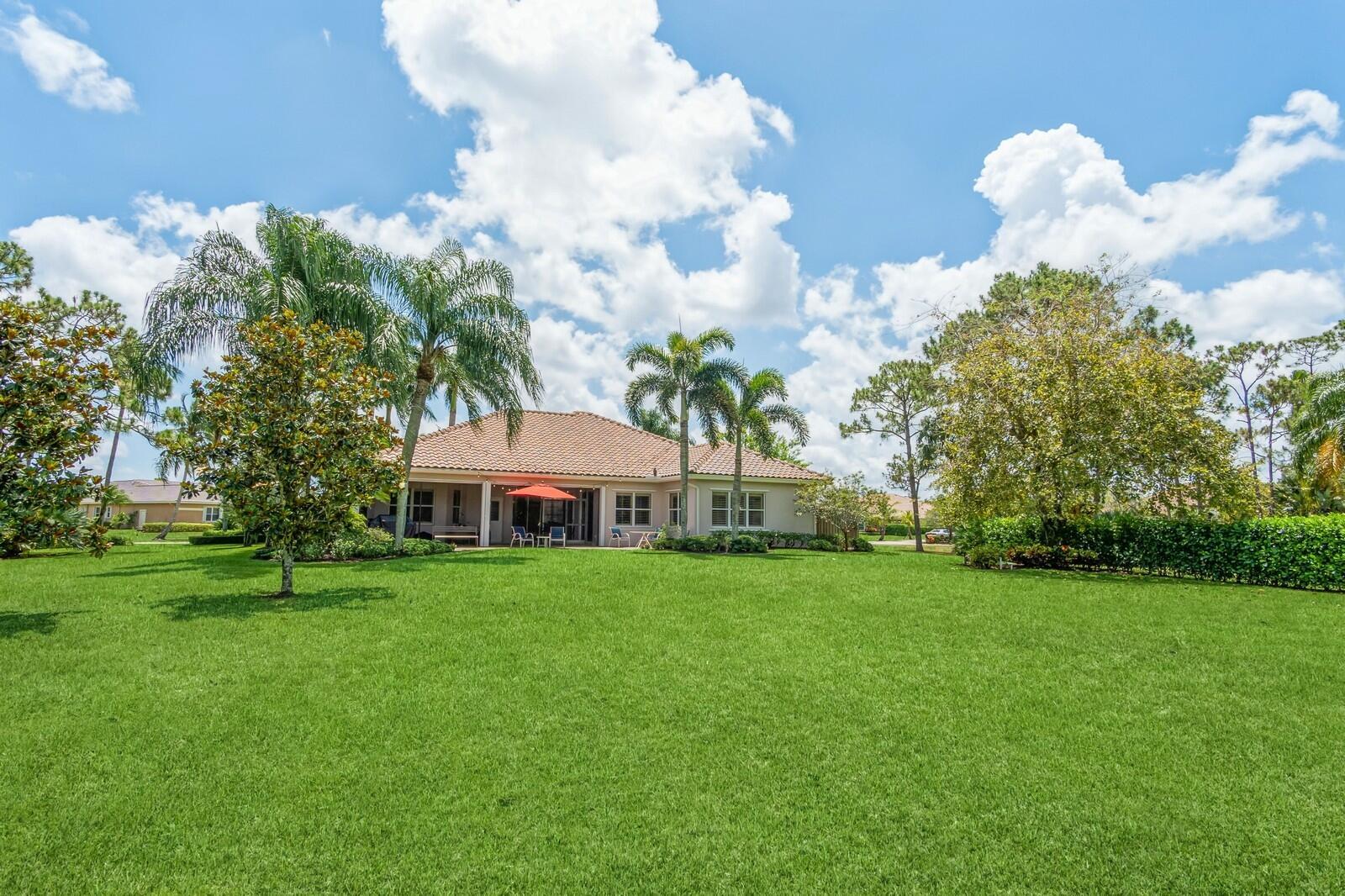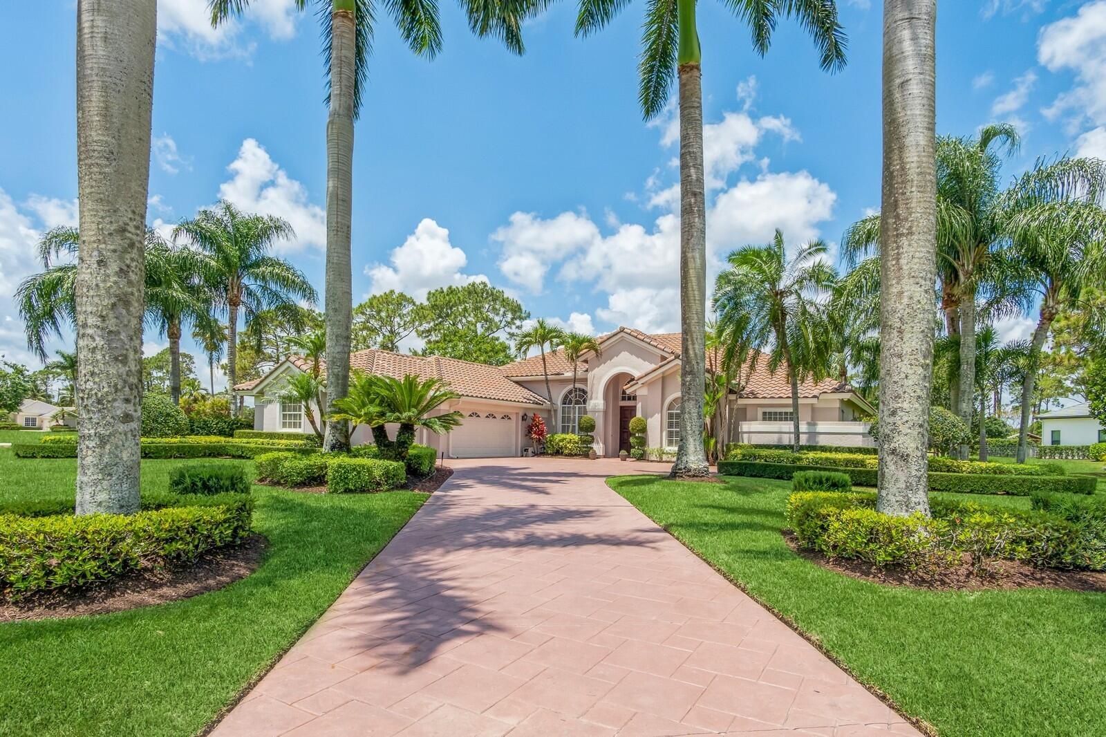 Excellent floor plan: 3/3 with Den, 3 Car Garage, great curb appeal, extensive professional landscape, 1 acre lot, stamped concrete driveway/patio, view of 16th green Estates course (membership voluntary PGA), 24 hour manned gate, irrigation well, new roof 2017; 9,10,12 & 13.5 ceilings, Low HOA fee! New Publix, Walgreens & Retail, proposed school, offices, firehouse, hospital, health park.