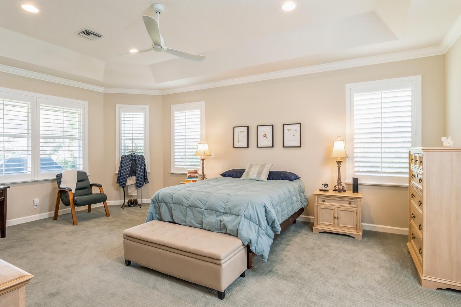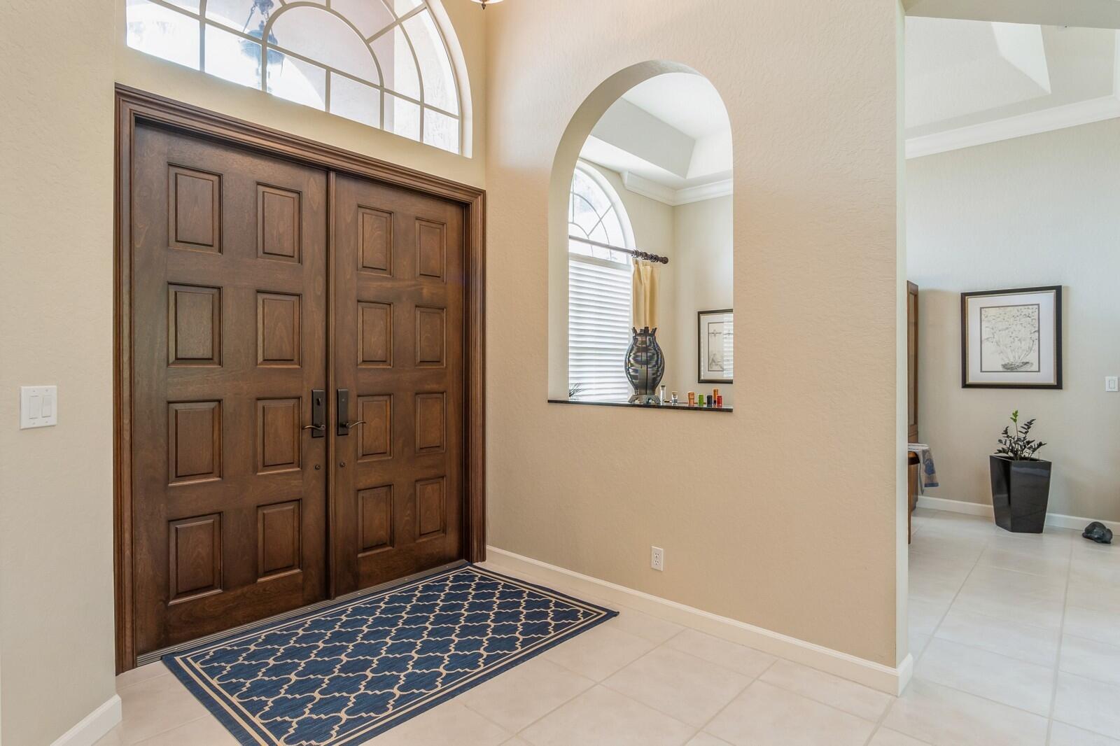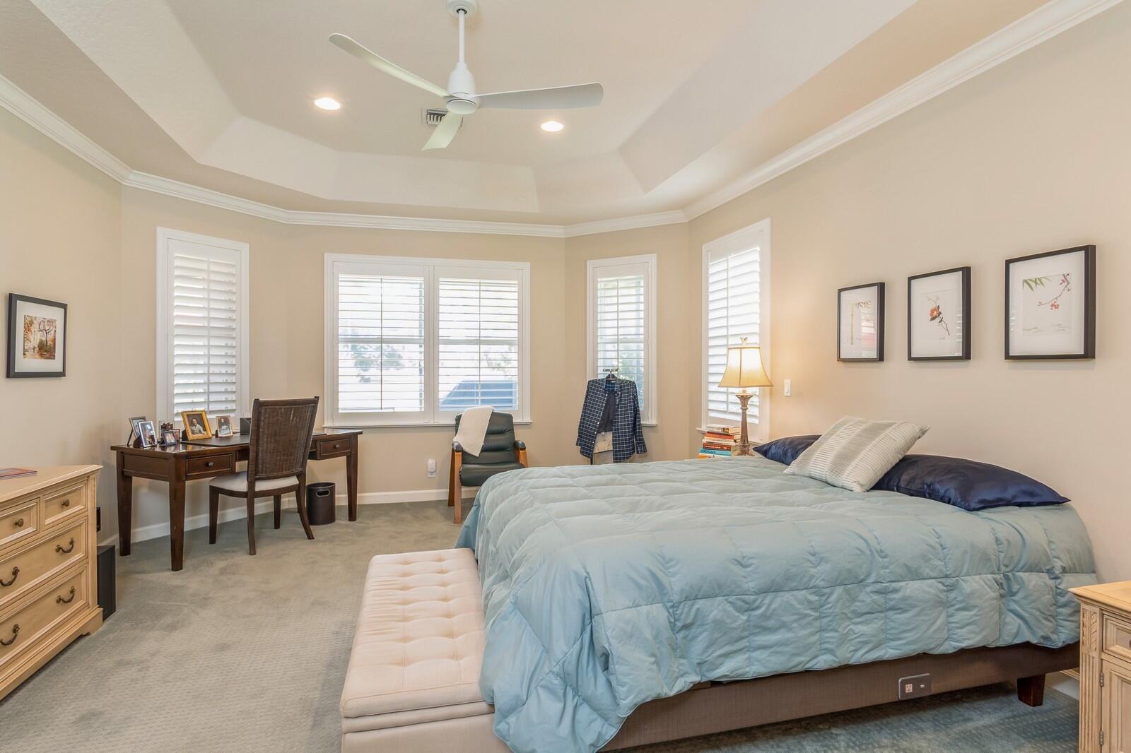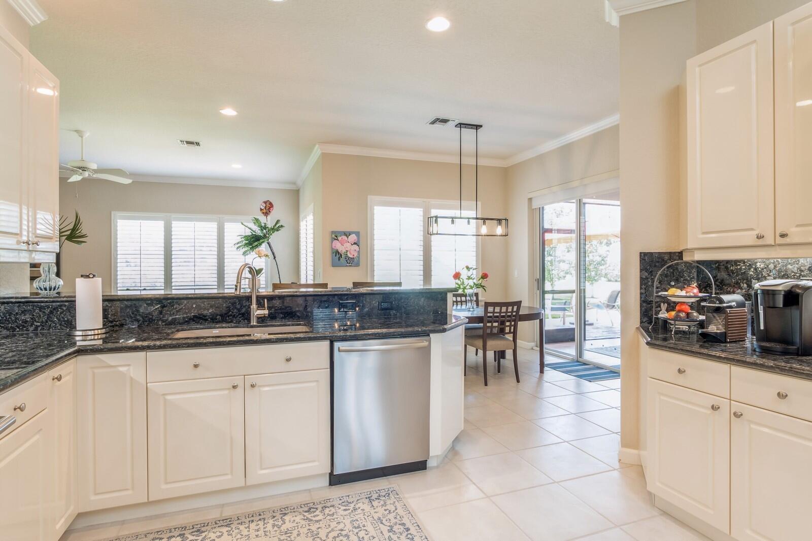 Excellent floor plan: 3/3 with Den, 3 Car Garage, great curb appeal, extensive professional landscape, 1 acre lot, stamped concrete driveway/patio, view of 16th green Estates course (membership voluntary PGA), 24 hour manned gate, irrigation well, new roof 2017; 9,10,12 & 13.5 ceilings, Low HOA fee! New Publix, Walgreens & Retail, proposed school, offices, firehouse, hospital, health park.