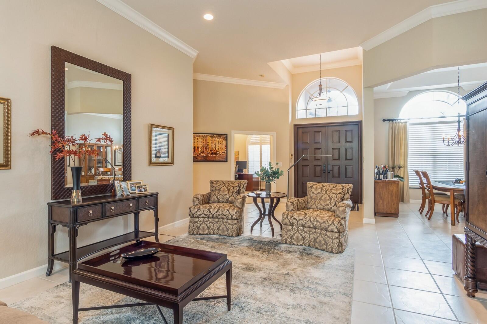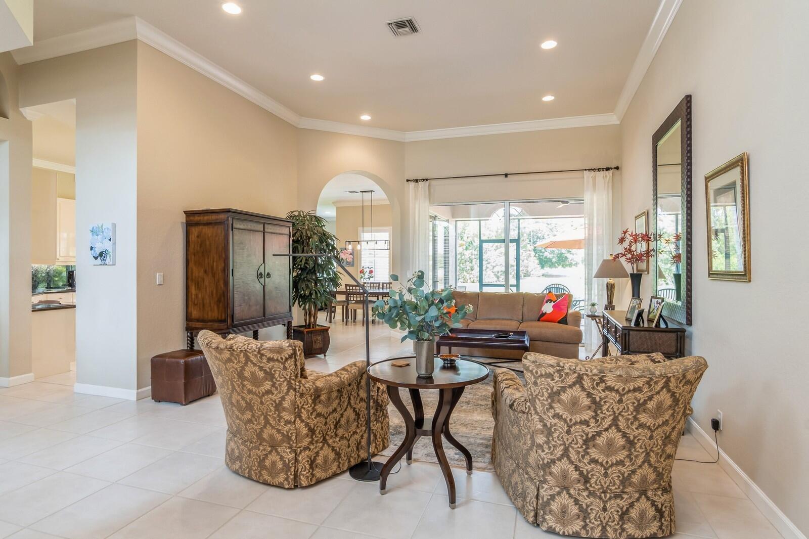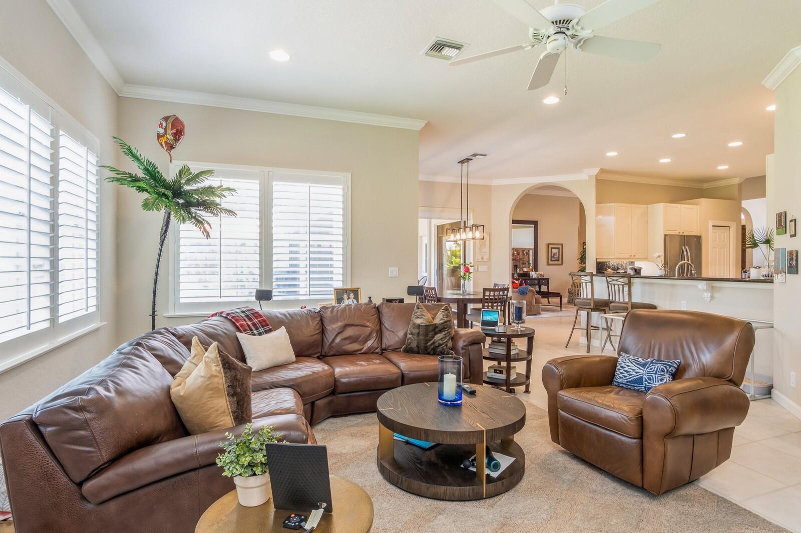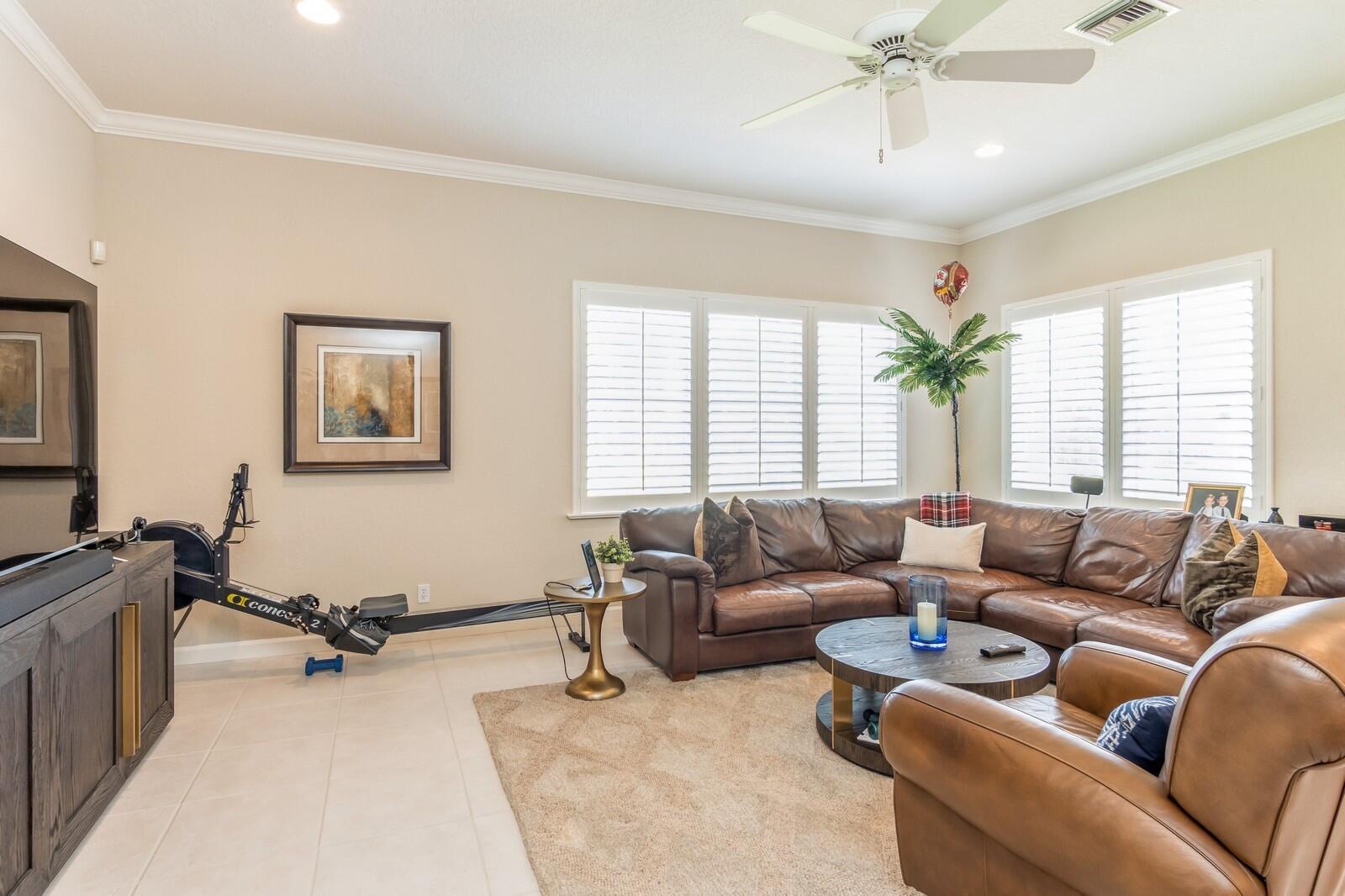 Excellent floor plan: 3/3 with Den, 3 Car Garage, great curb appeal, extensive professional landscape, 1 acre lot, stamped concrete driveway/patio, view of 16th green Estates course (membership voluntary PGA), 24 hour manned gate, irrigation well, new roof 2017; 9,10,12 & 13.5 ceilings, Low HOA fee! New Publix, Walgreens & Retail, proposed school, offices, firehouse, hospital, health park.