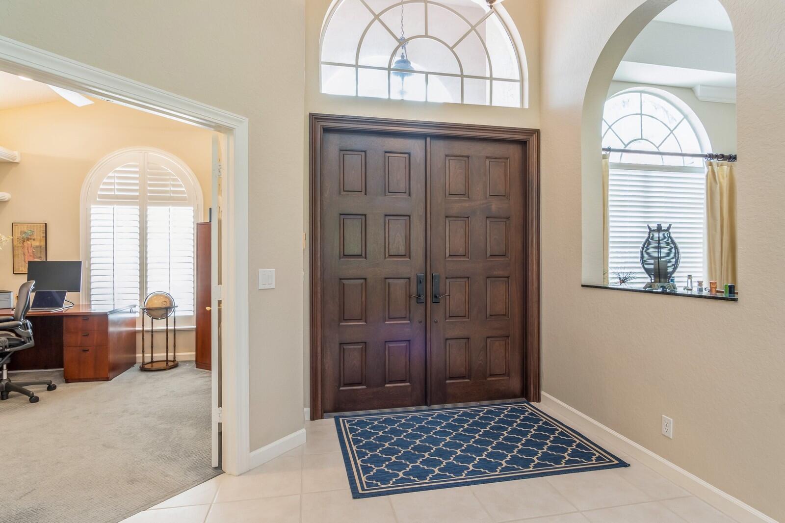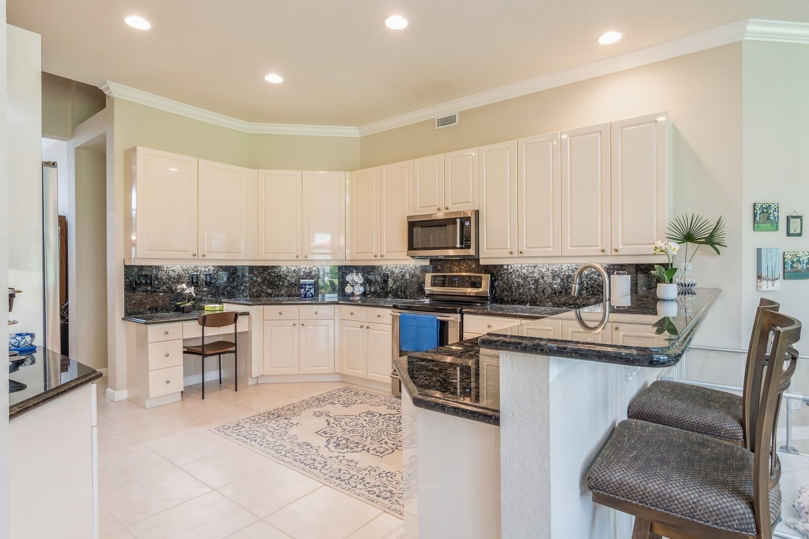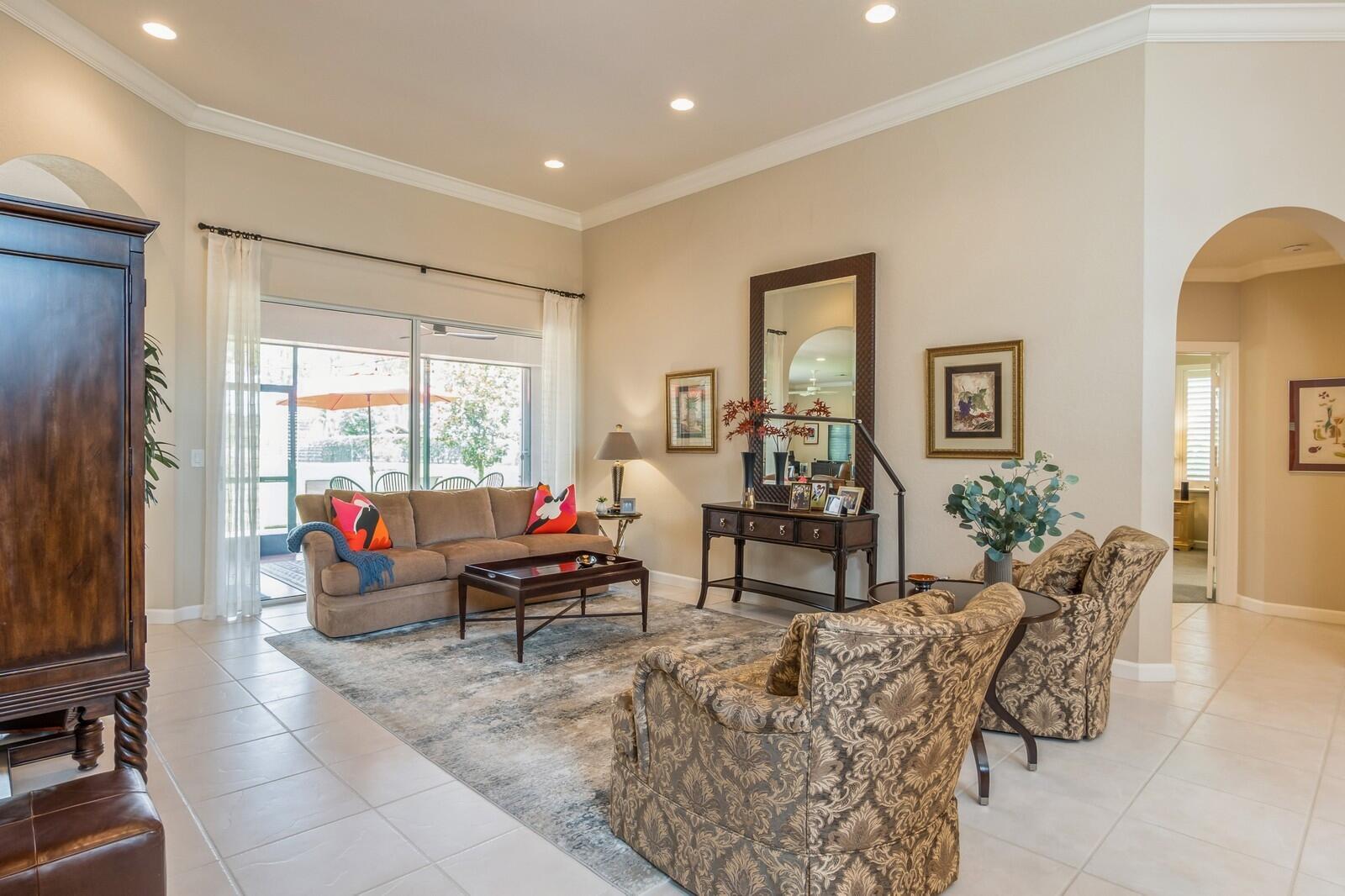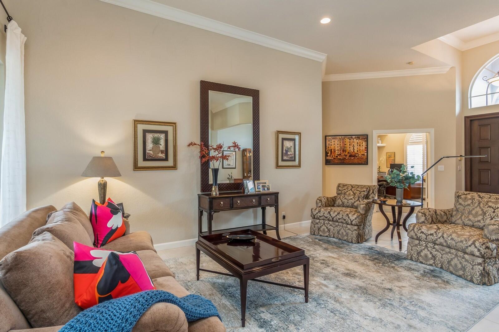 Excellent floor plan: 3/3 with Den, 3 Car Garage, great curb appeal, extensive professional landscape, 1 acre lot, stamped concrete driveway/patio, view of 16th green Estates course (membership voluntary PGA), 24 hour manned gate, irrigation well, new roof 2017; 9,10,12 & 13.5 ceilings, Low HOA fee! New Publix, Walgreens & Retail, proposed school, offices, firehouse, hospital, health park.