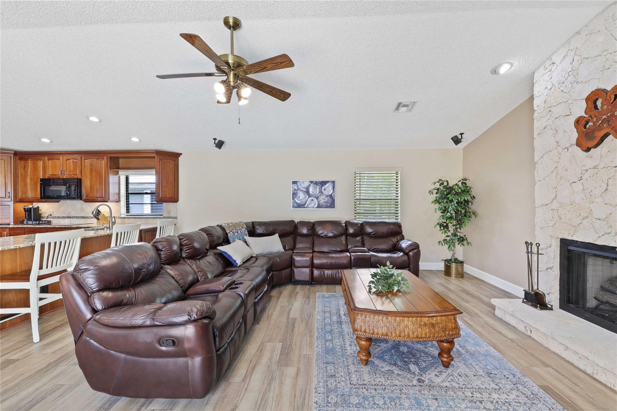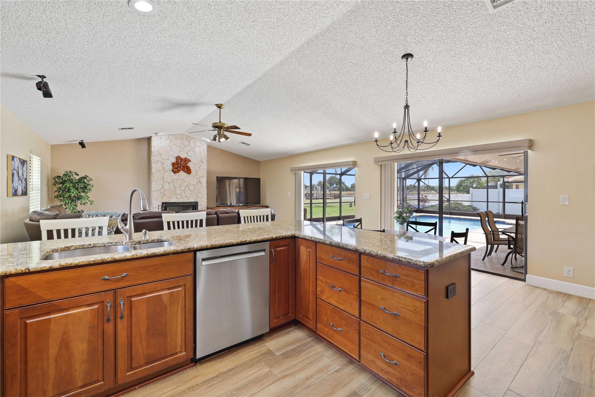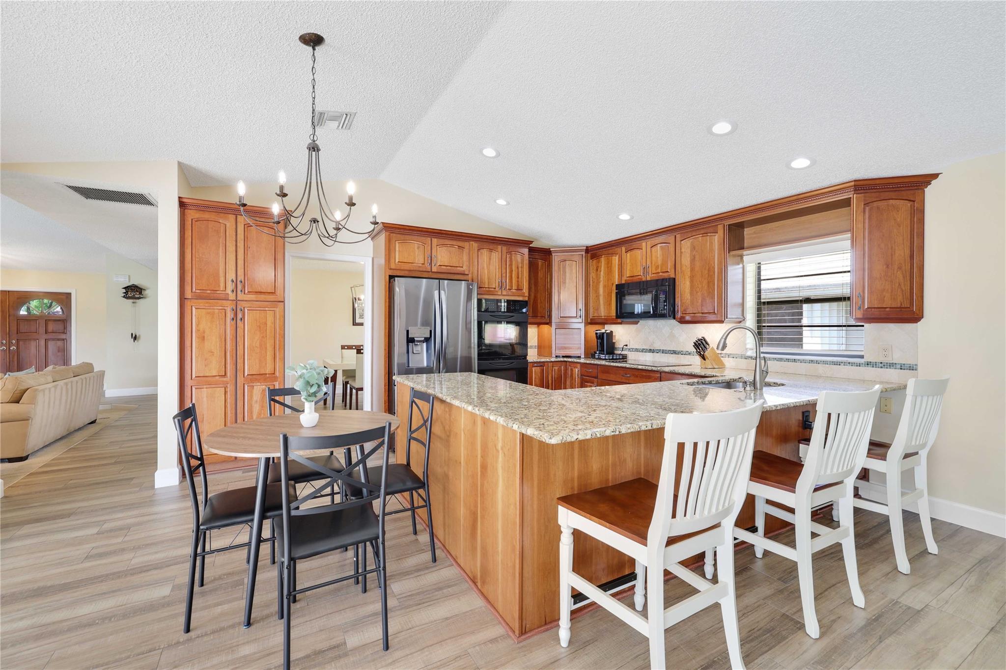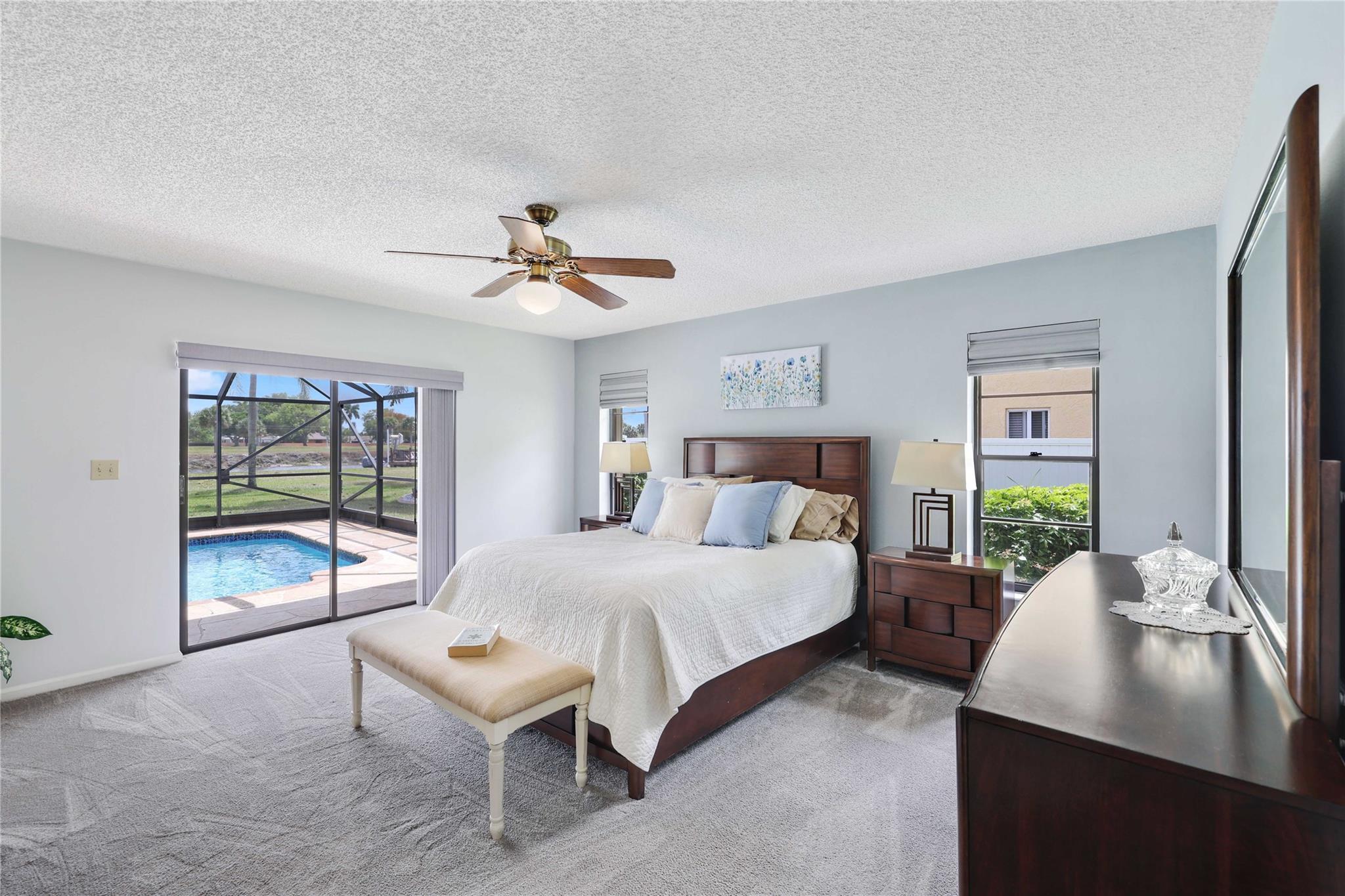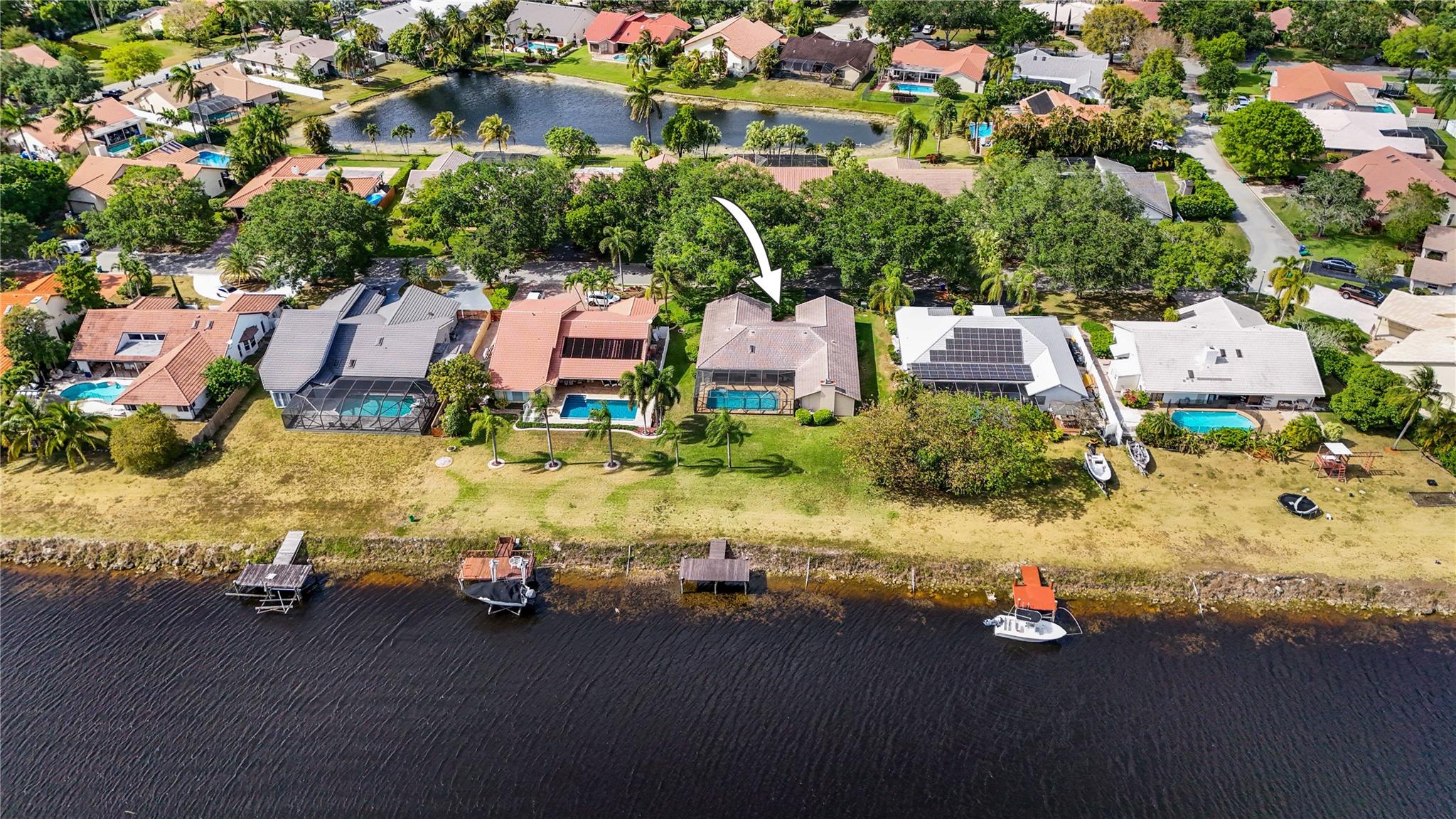The only home in Coral Springs on the C14 canal! Fully updated featuring vaulted ceilings, wood-look tile floors throughout the living areas, & carpet in the bedrooms. Kitchen updated w/ cherry wood cabinets & newer appliances. All 3 bathrooms are completely remodeled! Master bathroom features separate tub, shower, dual sink vanity, & XL walk-in closet w/ built ins. Amazing views of the huge lot, screened in pool, & C14 canal from every main living area. Tons of room for the family or pets to roam in the oversized back yard w/ no rear neighbors. Private boat dock can be upgraded with boat lift for small boats if you'd like. Updated electrical panels, Water heater 2015. AC 2021. Homes like this don't last long, schedule your showing today!