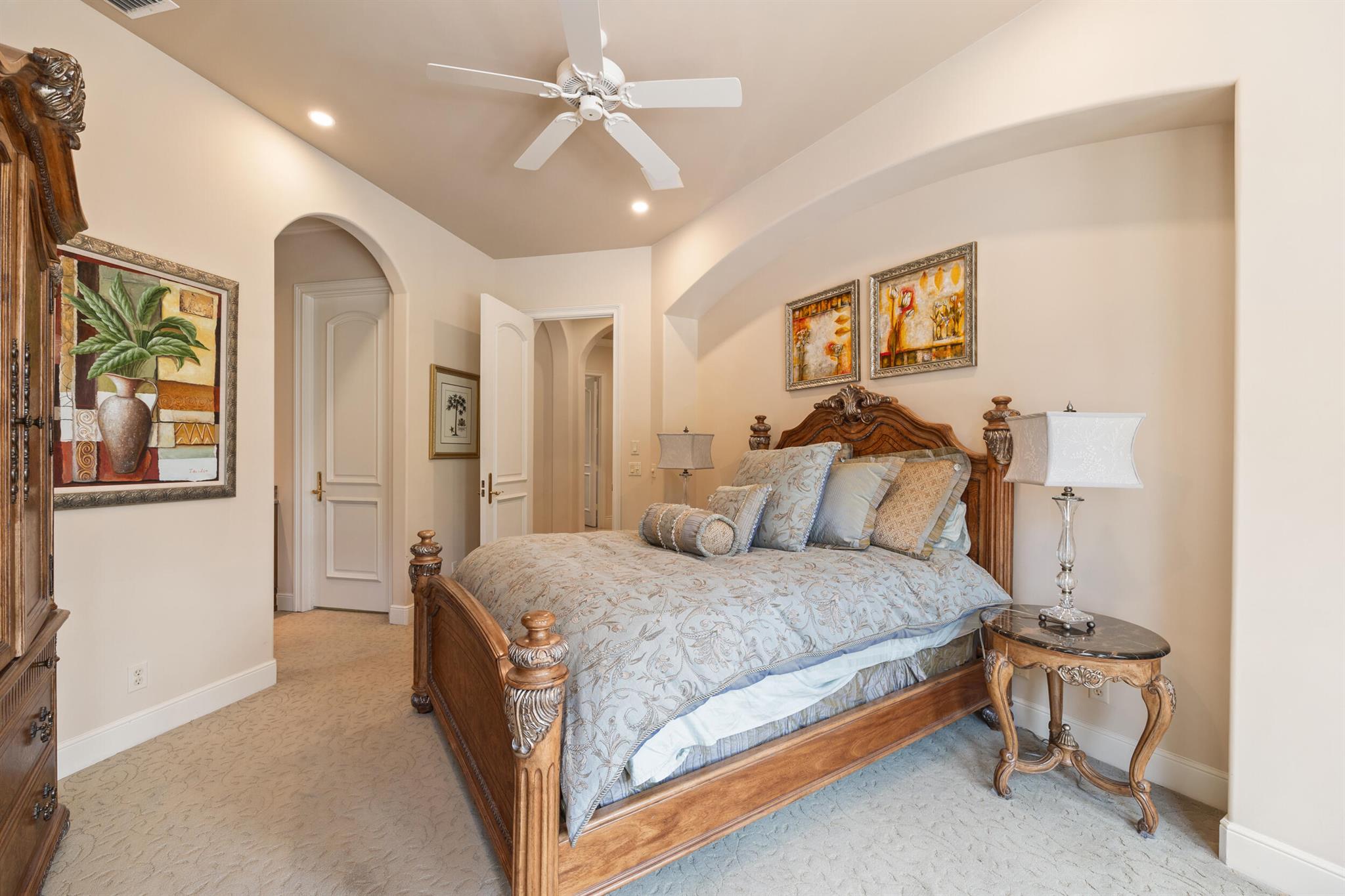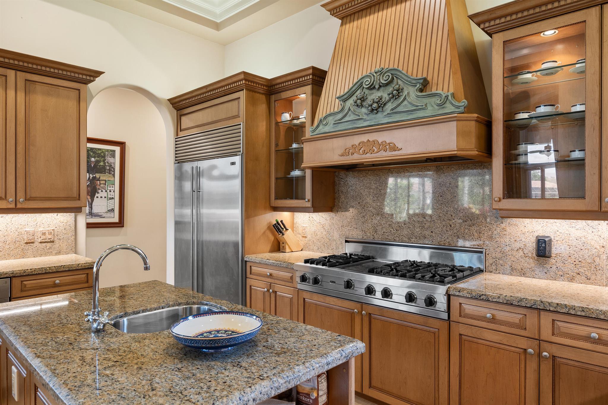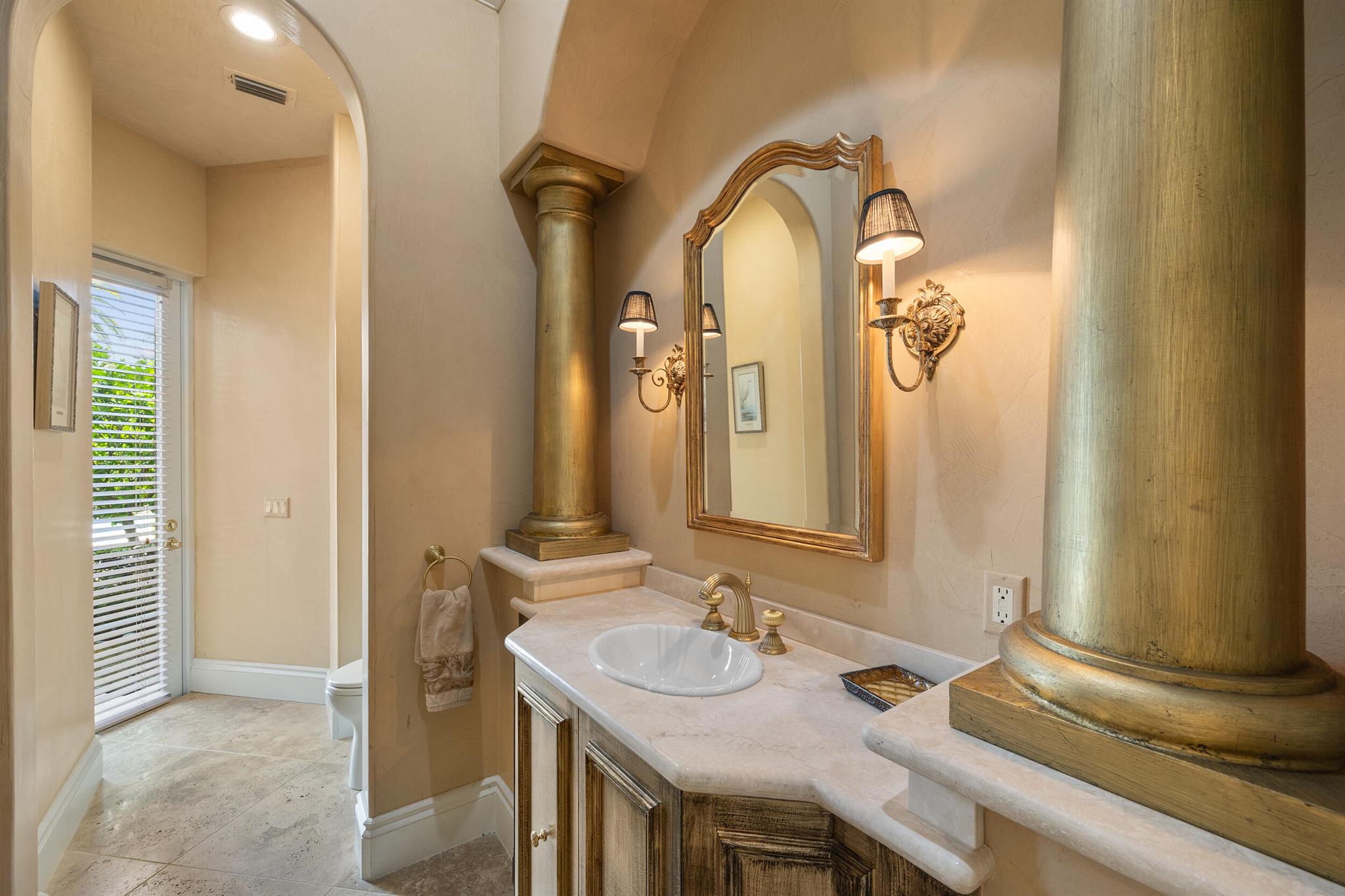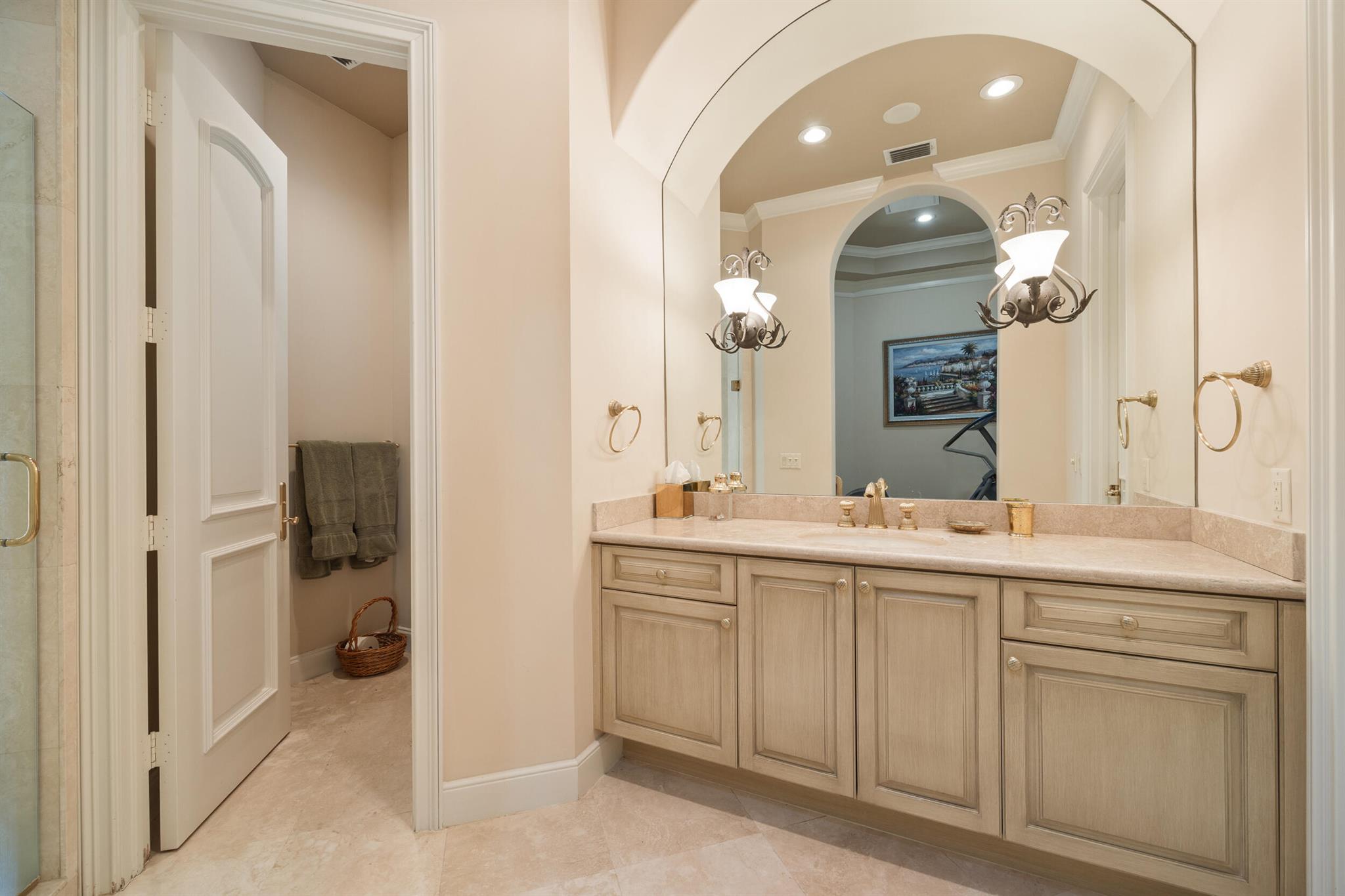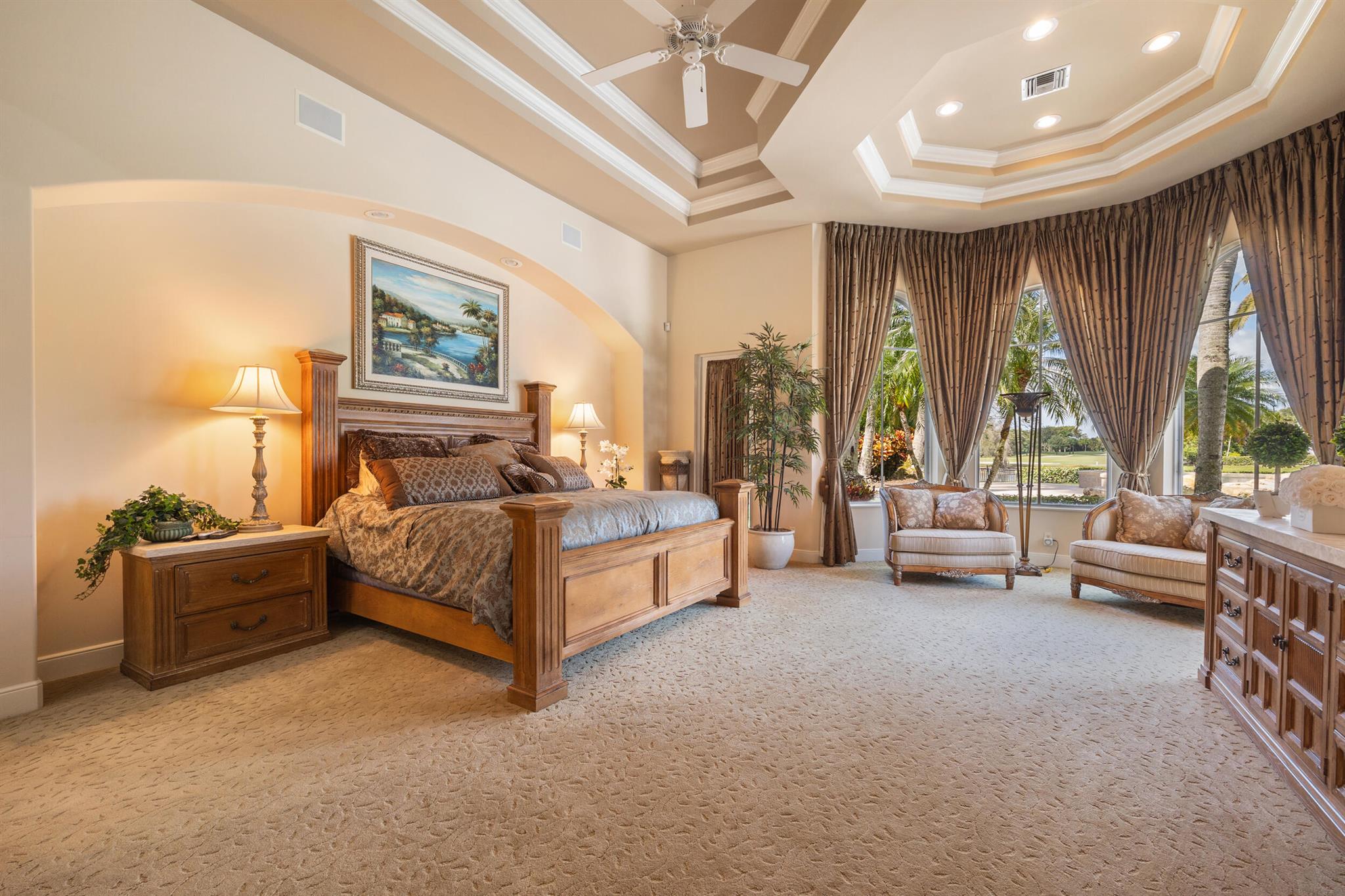 Meticulously kept residence in the exclusive Eagle Isle community. Enjoy Florida living with outstanding backyard water and award winning Jack Nicklaus-designed Legend Course views. From the moment you walk through the custom double doors you will notice the attention to detail with custom architectural and craftsmanship details. Impressive interior finishes throughout the home include coffered ceiling, crown molding, dramatic inlays, columns, stone fireplace and Saturnia floors. Hurricane windows and doors. Office is adorned with custom wood-paneled walls and plantation wood shutters. Gourmet kitchen with granite countertops, 2 dishwashers and 2 sinks and a butler's pantry. Separate sit down bar.