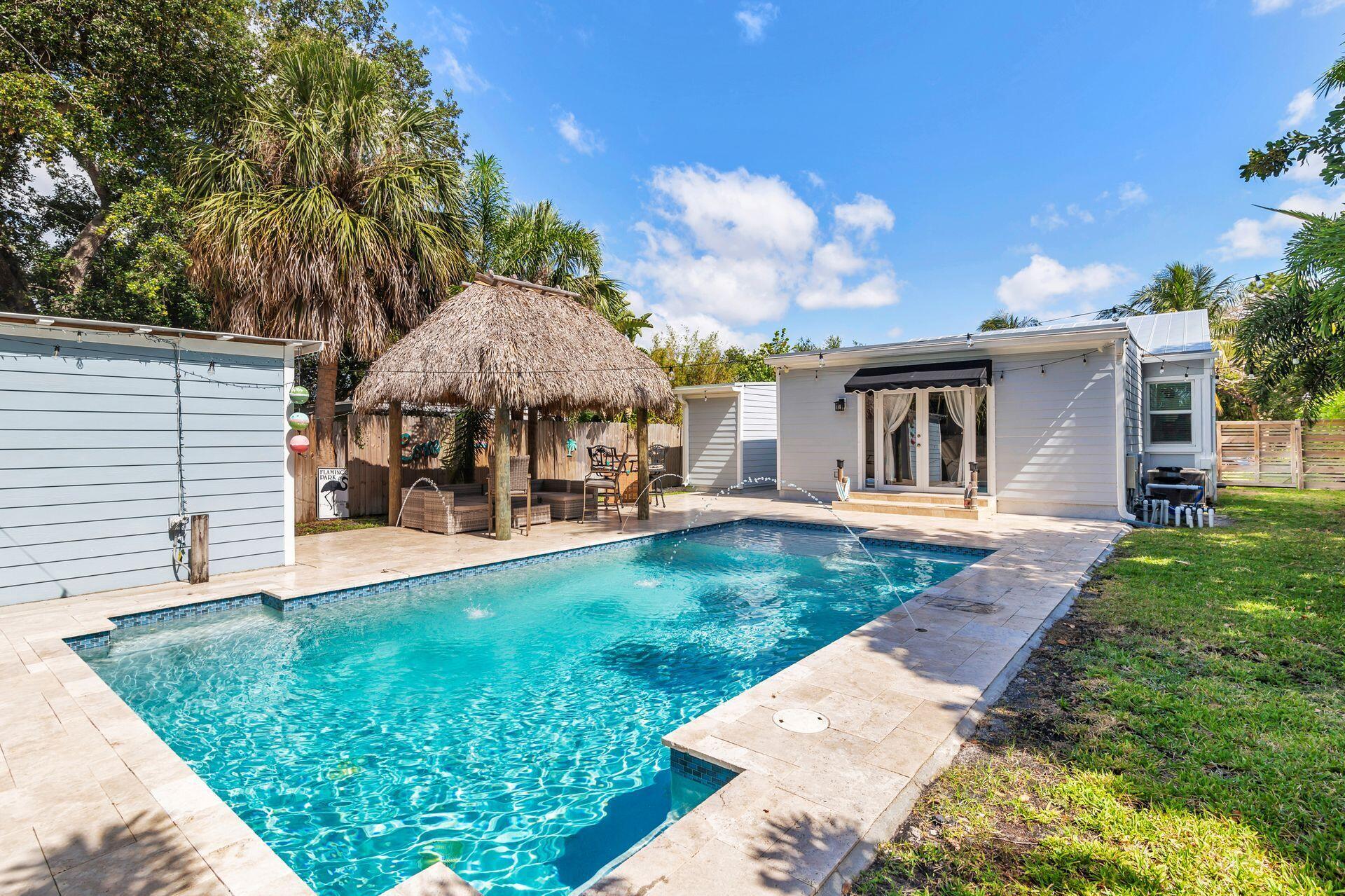 Nestled on arguably the nicest street in Flamingo Park rests this uber-charming and completely renovated 2 bedroom cottage. Filled with sunlight, original hardwood floors and two separate living spaces, this home boasts new impact rated windows, a new kitchen, NEW METAL ROOF, new swimming pool, new James Hardy-board planks around the entire exterior of the home and much more. This quaint home is move-in-ready and turnkey. Located close to Grandview market, City Place/ The Square, the island of Palm Beach, PBI Airport, amazing shopping and more much! EXTRA BONUS: The property is situated in the Palm Beach Public school district. *Per the City of West Palm Beach Historic Planner, the home can be added onto 392' square feet.
