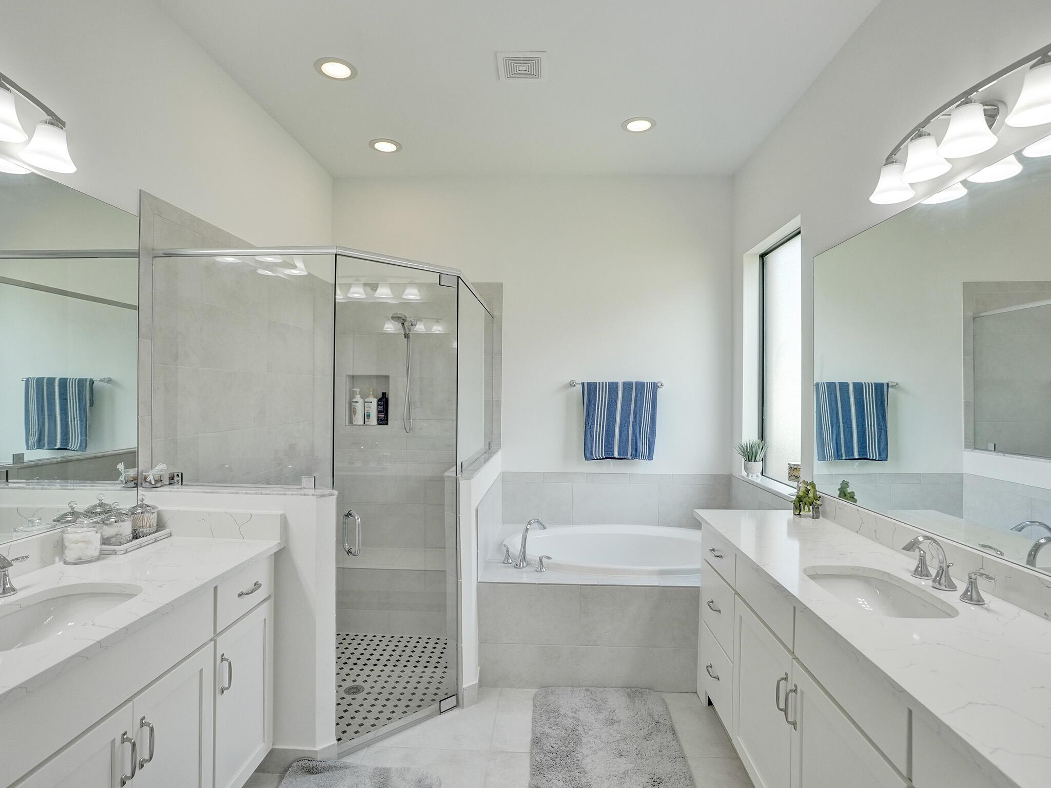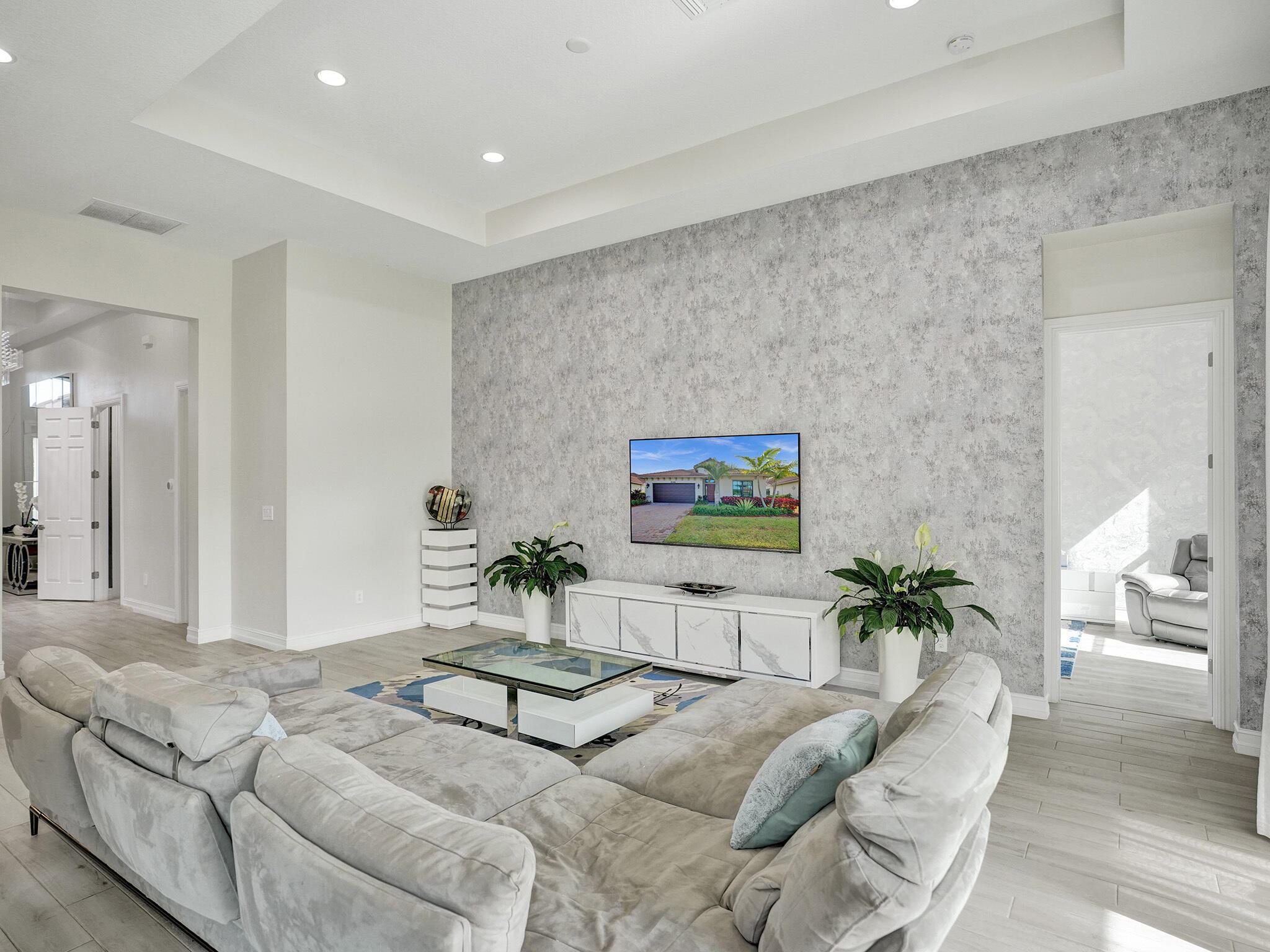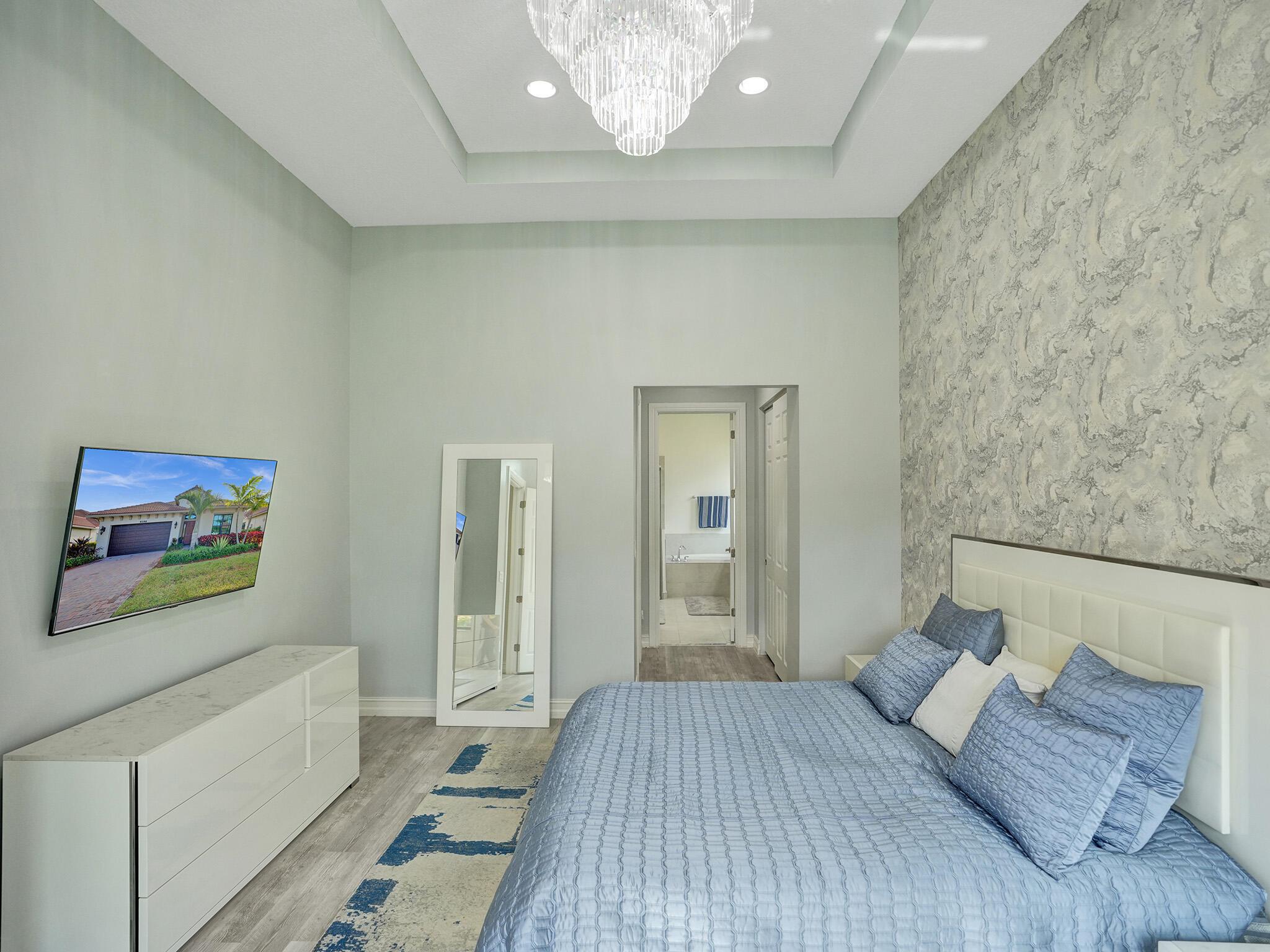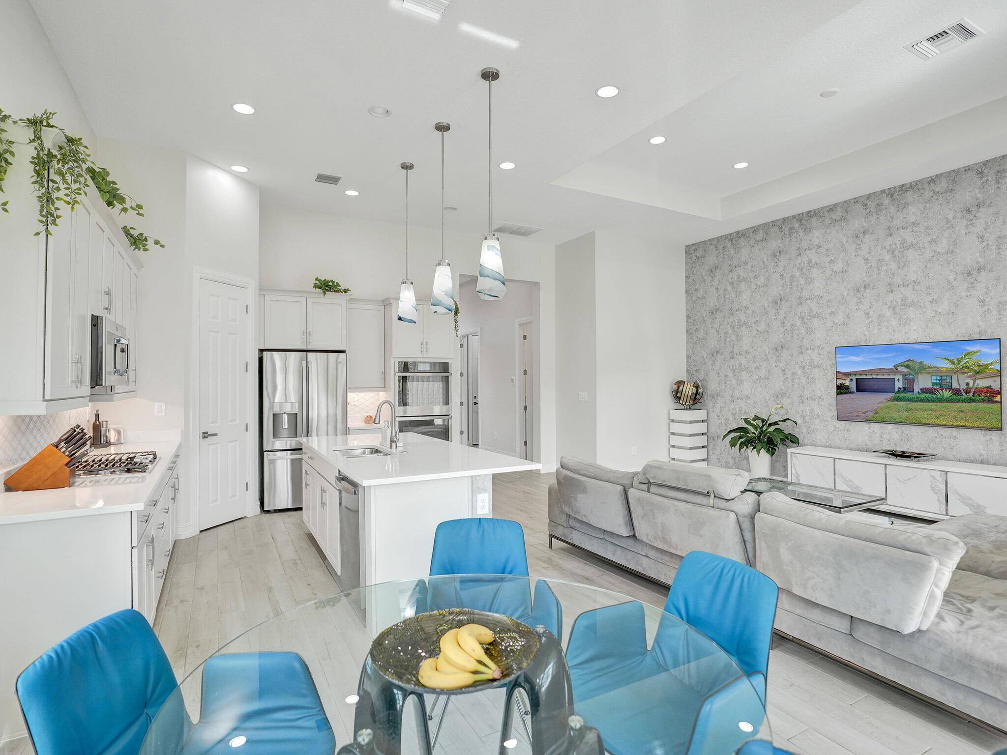 Upgrades Galore in this Gem! Experience luxury living in this tastefully-upgraded home located in the highly sought-after Four Seasons Community. Two bedrooms with its own en-suite bathrooms, plus a versatile den that's perfect for a home office or guest room. Top-notch finishes throughout: Exquisite tiled flooring in the living areas and high-quality vinyl flooring in the bedrooms. Kitchen features sleek quartz countertops, upgraded LED lighting, and stainless steel appliances. WiFi thermostat, motorized shades, dimming switches. Stunning wallpaper accents throughout. Sits on an oversized pie-shaped lot, ample space and prewiring for a pool. Comes with an oversized Weber Grill and located near the community entrance. See documents for HOA amenities and what's included in the monthly HOA
