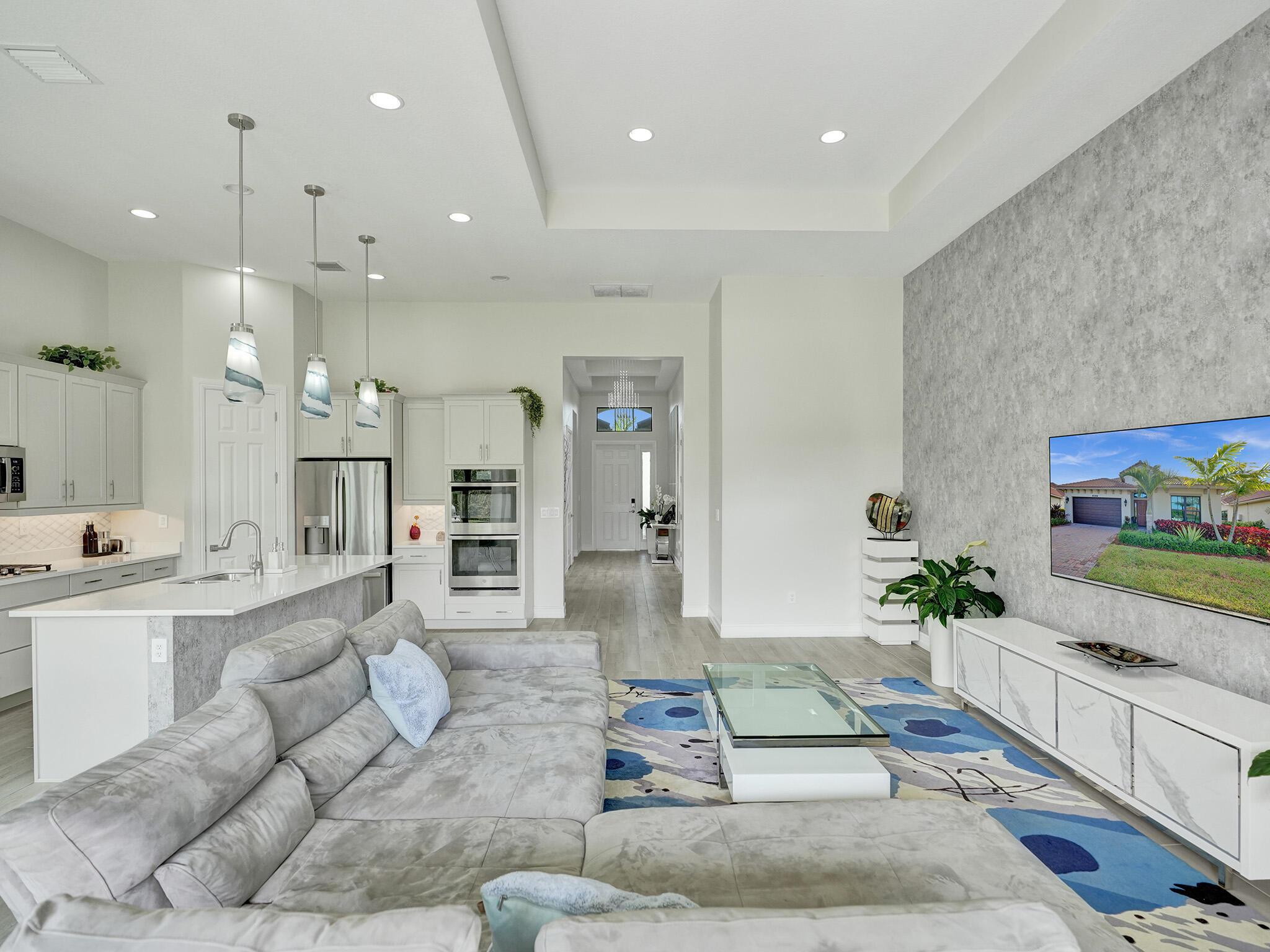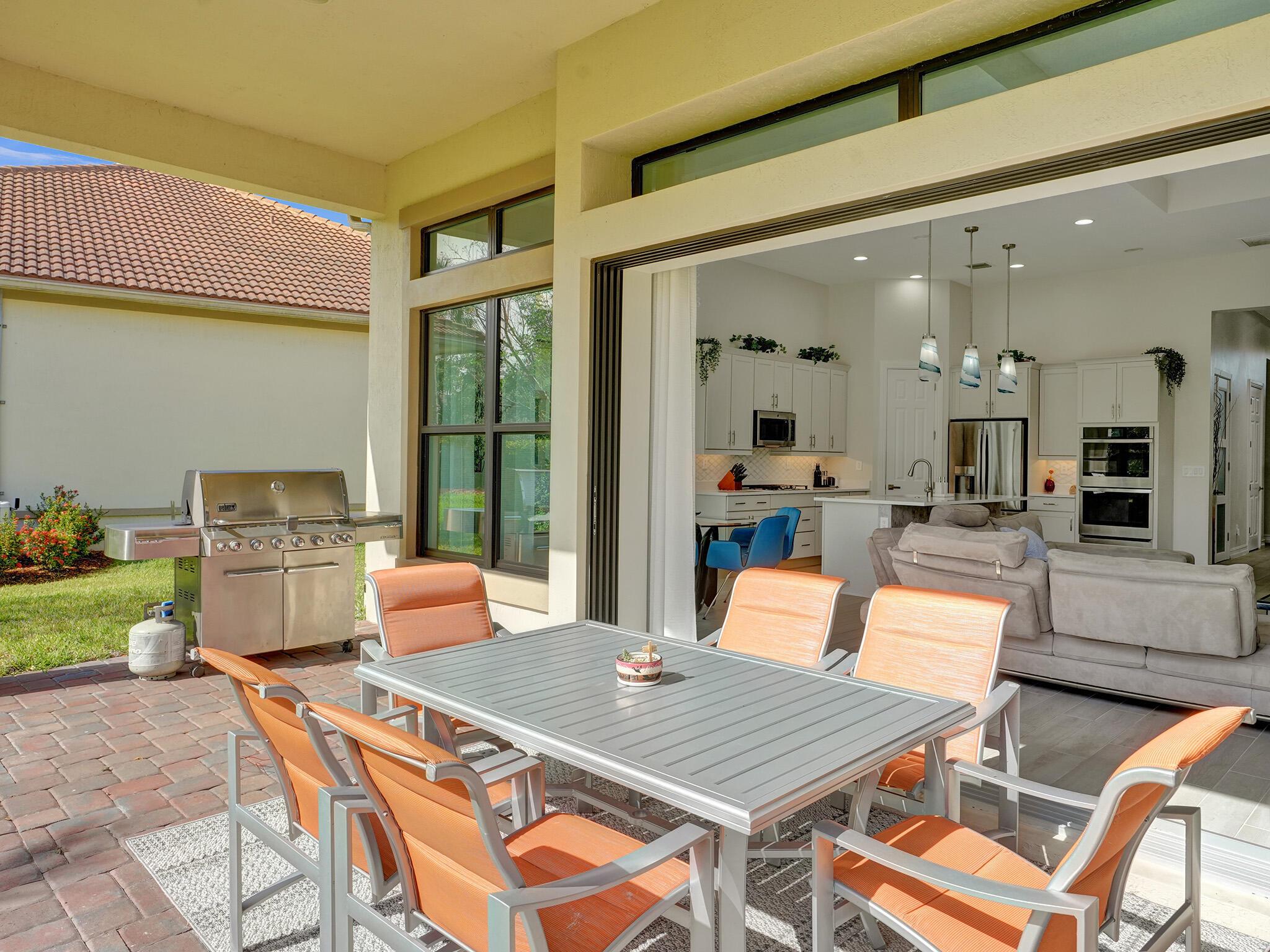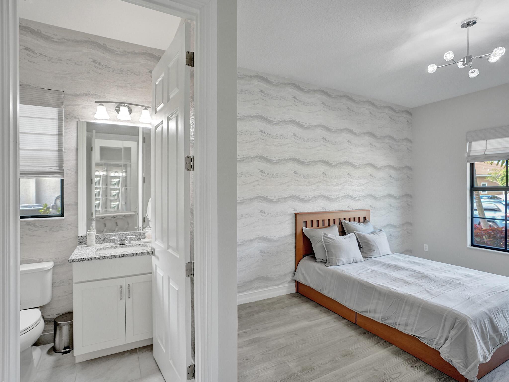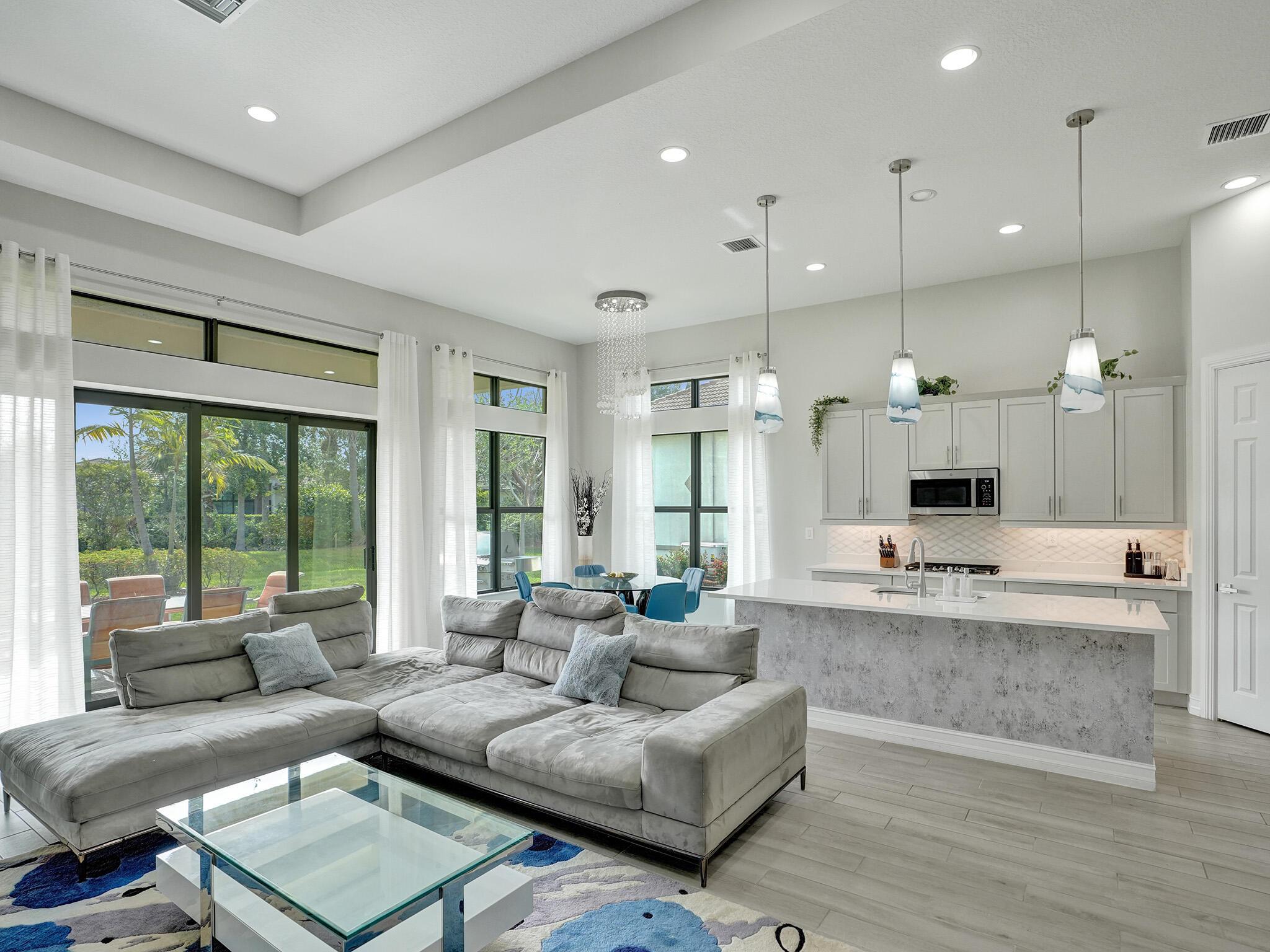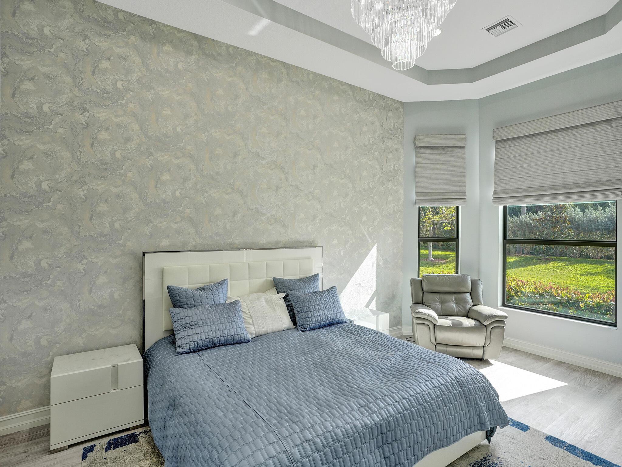 Upgrades Galore in this Gem! Experience luxury living in this tastefully-upgraded home located in the highly sought-after Four Seasons Community. Two bedrooms with its own en-suite bathrooms, plus a versatile den that's perfect for a home office or guest room. Top-notch finishes throughout: Exquisite tiled flooring in the living areas and high-quality vinyl flooring in the bedrooms. Kitchen features sleek quartz countertops, upgraded LED lighting, and stainless steel appliances. WiFi thermostat, motorized shades, dimming switches. Stunning wallpaper accents throughout. Sits on an oversized pie-shaped lot, ample space and prewiring for a pool. Comes with an oversized Weber Grill and located near the community entrance. See documents for HOA amenities and what's included in the monthly HOA