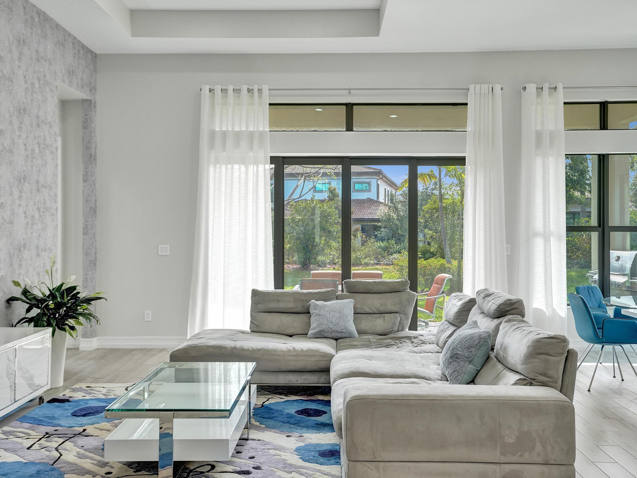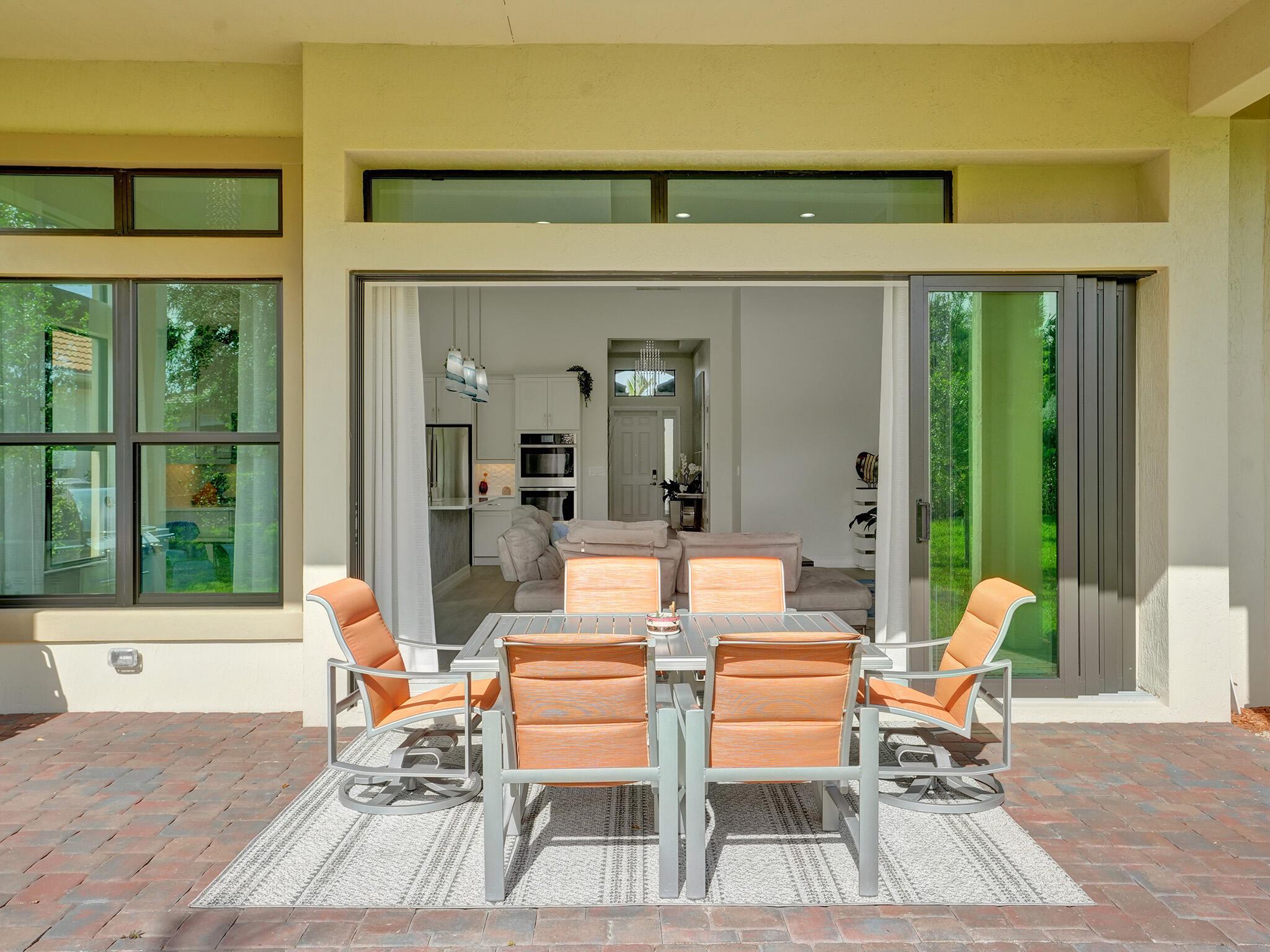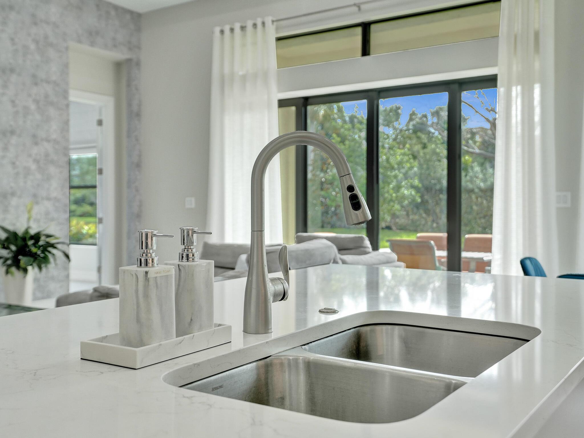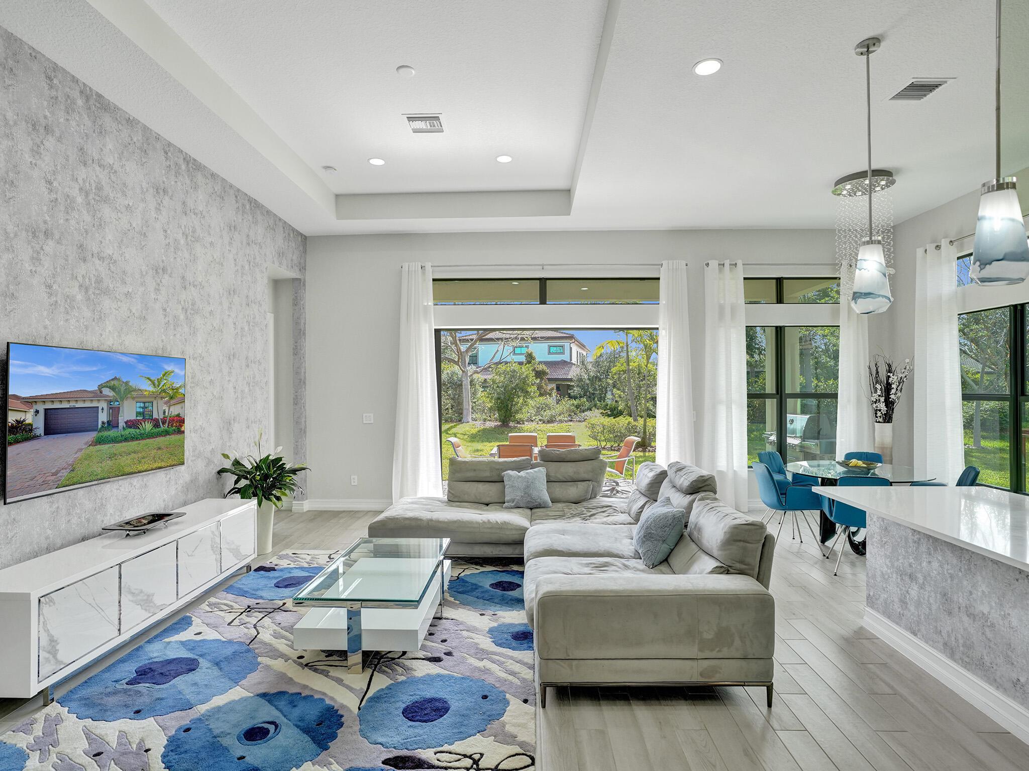 Upgrades Galore in this Gem! Experience luxury living in this tastefully-upgraded home located in the highly sought-after Four Seasons Community. Two bedrooms with its own en-suite bathrooms, plus a versatile den that's perfect for a home office or guest room. Top-notch finishes throughout: Exquisite tiled flooring in the living areas and high-quality vinyl flooring in the bedrooms. Kitchen features sleek quartz countertops, upgraded LED lighting, and stainless steel appliances. WiFi thermostat, motorized shades, dimming switches. Stunning wallpaper accents throughout. Sits on an oversized pie-shaped lot, ample space and prewiring for a pool. Comes with an oversized Weber Grill and located near the community entrance. See documents for HOA amenities and what's included in the monthly HOA