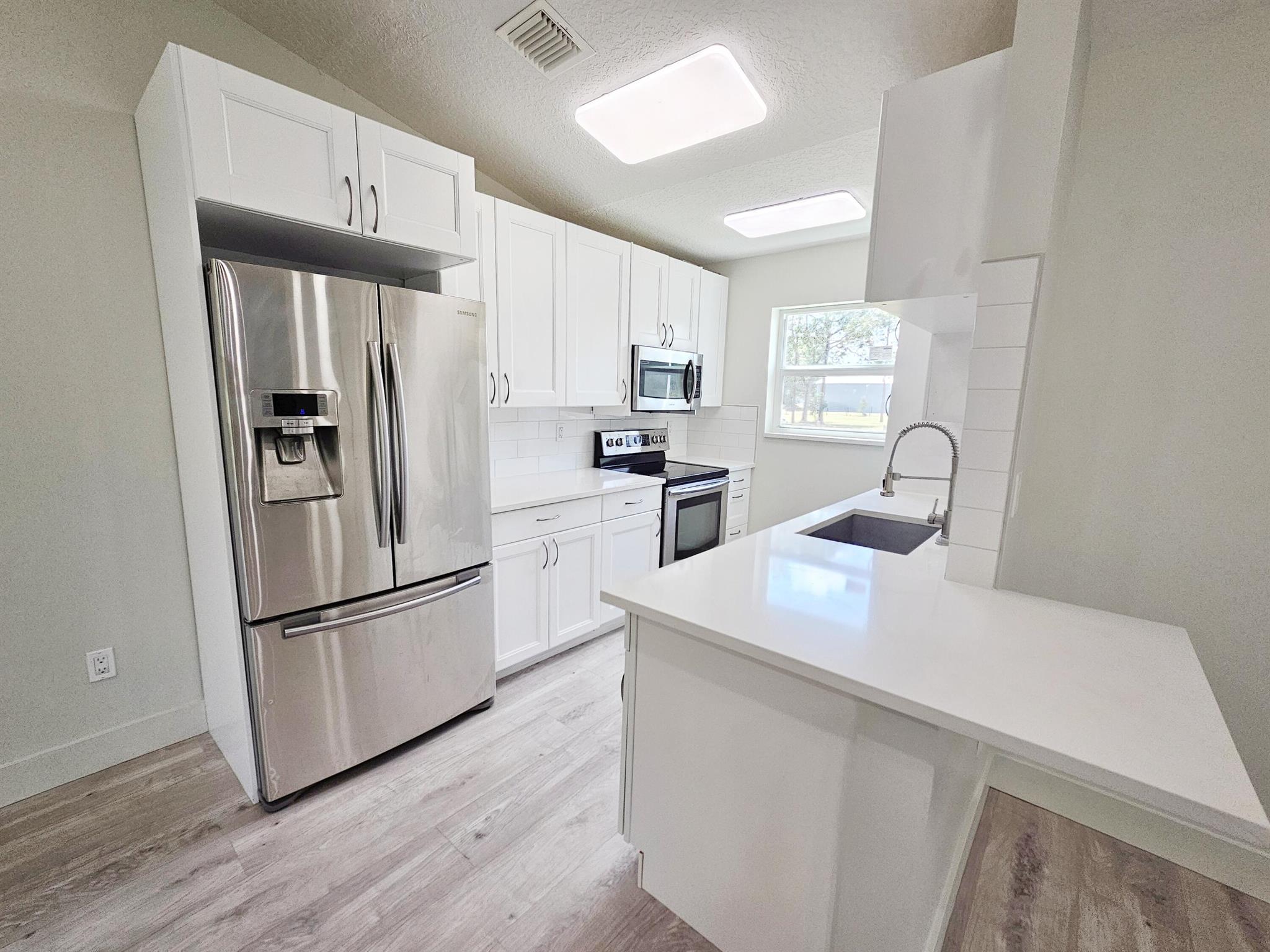 Beautiful 3-bedroom, 2-bath home with a separate large laundry room. The interior has been completely remodeled, and the exterior has been newly painted. Constructed with CBS on a private 1.41-acre lot with a fenced gate. The house features an open concept kitchen with stainless steel appliances, a new dishwasher, and a washer and dryer that were installed less than 1 year ago. Impact windows and a large screened patio provide plenty of room to relax and enjoy outdoor life.
