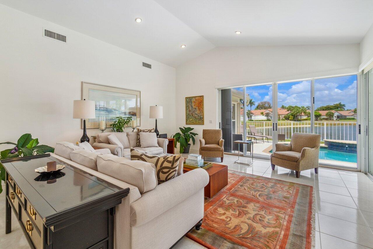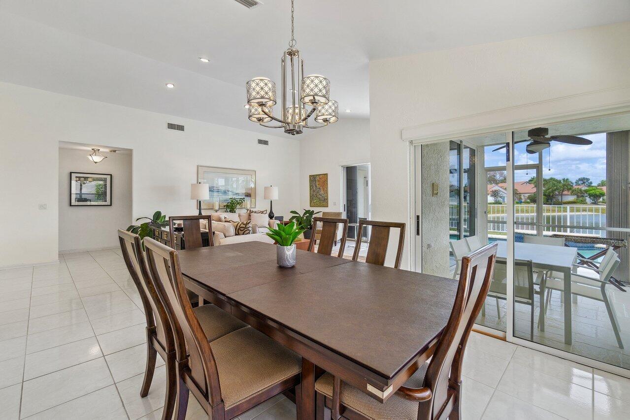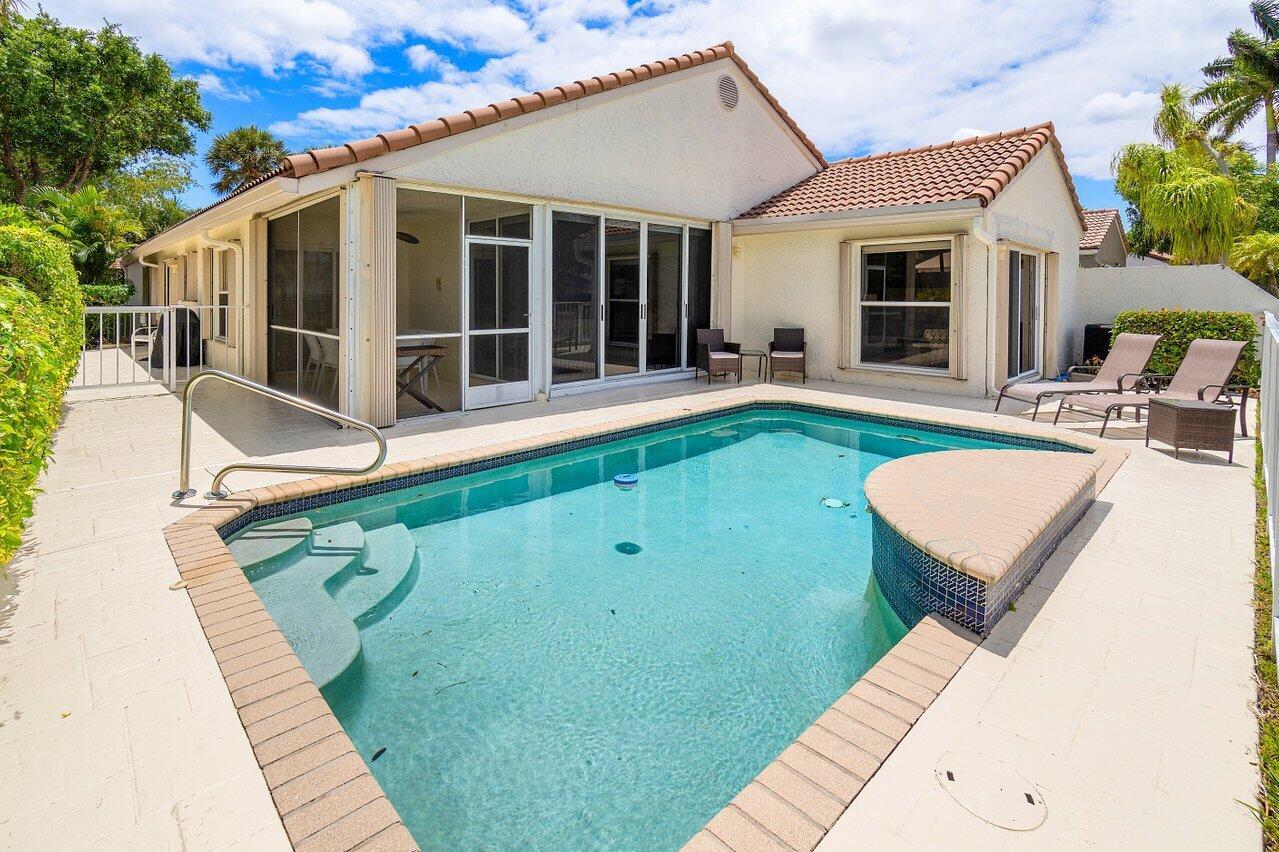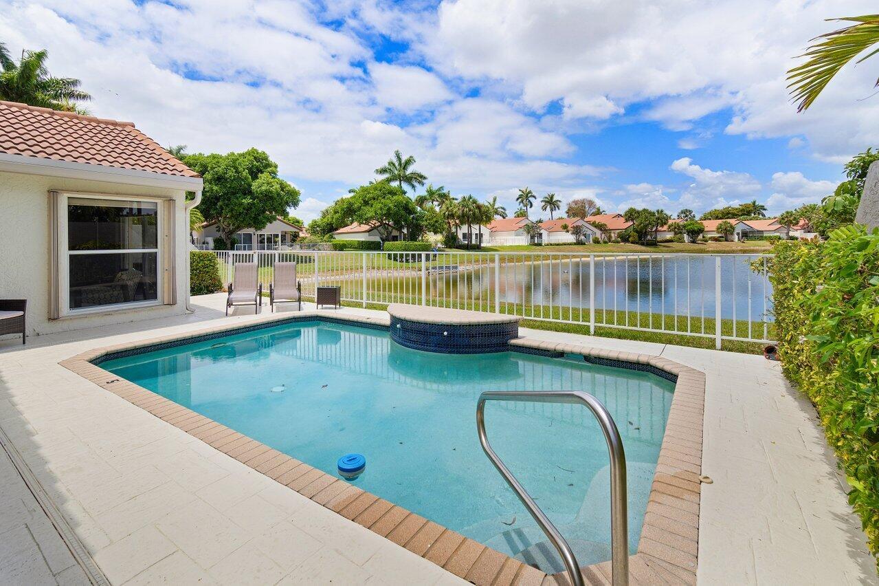 Impeccable Pool & Lake Front one story Mediterranean Single Family Home! Step into the Foyer a your eyes see the high ceilings, Open & Bright Living Areas and the Picturesque Views! This Harmonious Floor plan offers a Formal Living & Dining Rooms that step out to your Pool Lanai. Enjoy a Beautiful Custom Eat-In kitchen with Granite Counters & Back Splash and Stainless Steel Appliances! Main bedroom suite is spacious and has a Newly Remodeled Luxurious Bathroom w/ Soaking tub & Stepdown shower, 2 closets, Slider to your Heated Pool & Patios. The Guest Bath is Updated, 2nd Bdrm is over sized and has plenty of closet space & 3rd room does NOT have a closet and being used as a den in addition to living room. A Short Walk to the Country Club and houses of Worship! Accordion Shutters throughout