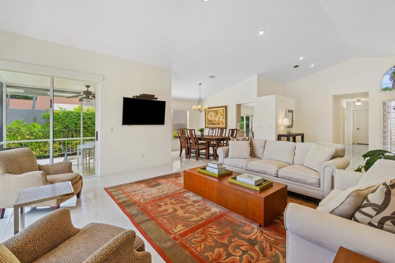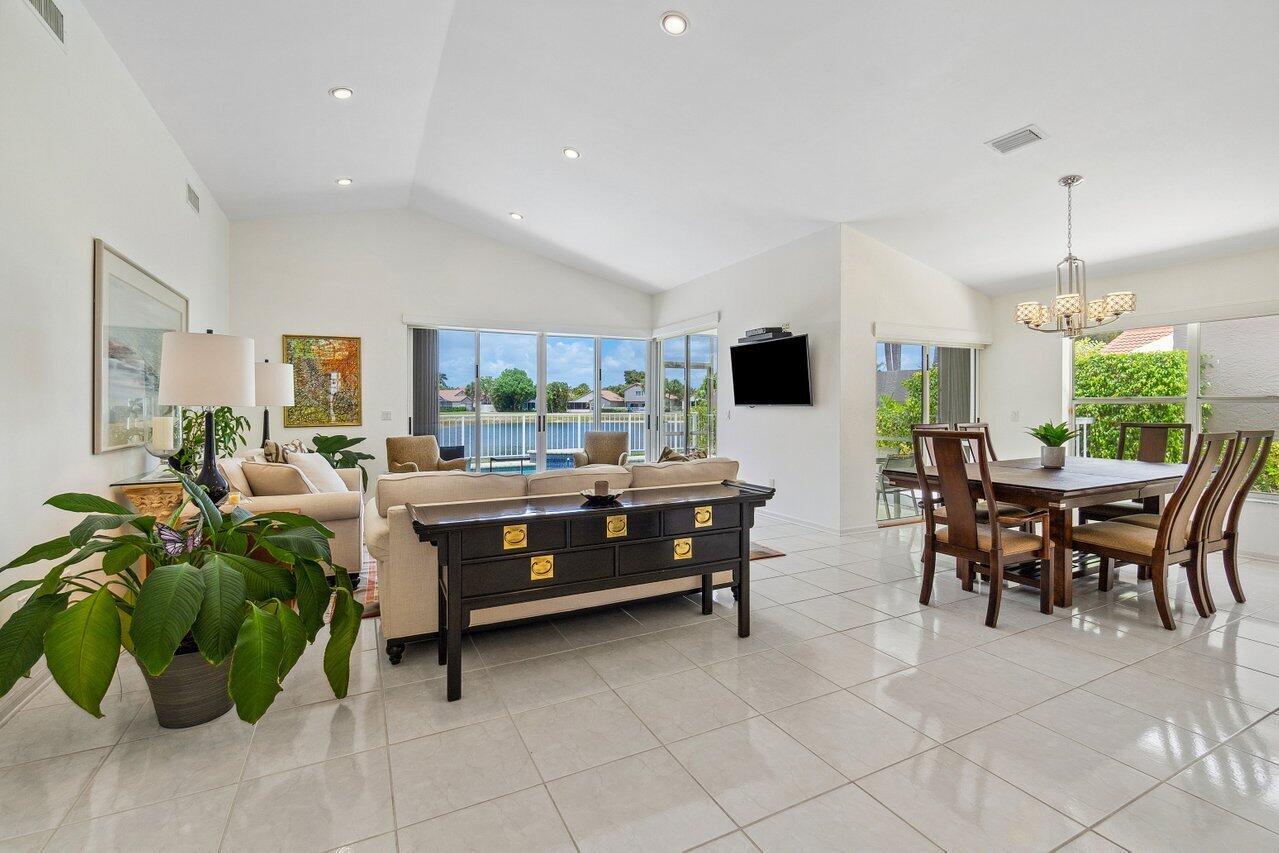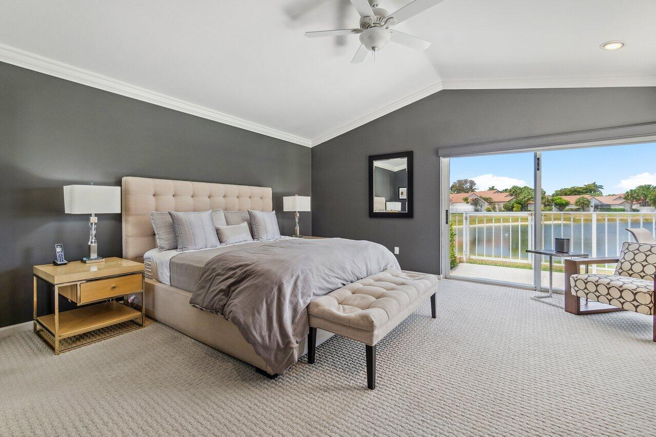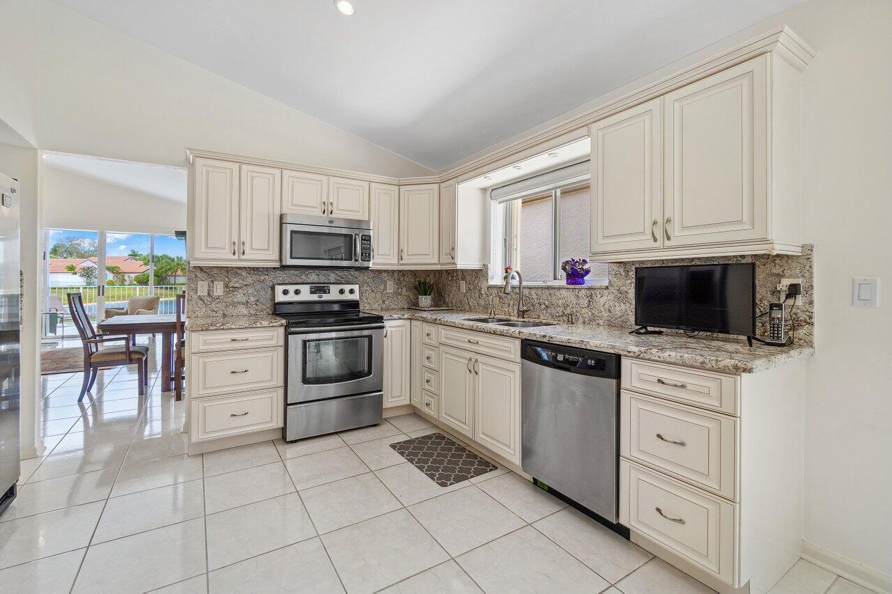 Impeccable Pool & Lake Front one story Mediterranean Single Family Home! Step into the Foyer a your eyes see the high ceilings, Open & Bright Living Areas and the Picturesque Views! This Harmonious Floor plan offers a Formal Living & Dining Rooms that step out to your Pool Lanai. Enjoy a Beautiful Custom Eat-In kitchen with Granite Counters & Back Splash and Stainless Steel Appliances! Main bedroom suite is spacious and has a Newly Remodeled Luxurious Bathroom w/ Soaking tub & Stepdown shower, 2 closets, Slider to your Heated Pool & Patios. The Guest Bath is Updated, 2nd Bdrm is over sized and has plenty of closet space & 3rd room does NOT have a closet and being used as a den in addition to living room. A Short Walk to the Country Club and houses of Worship! Accordion Shutters throughout