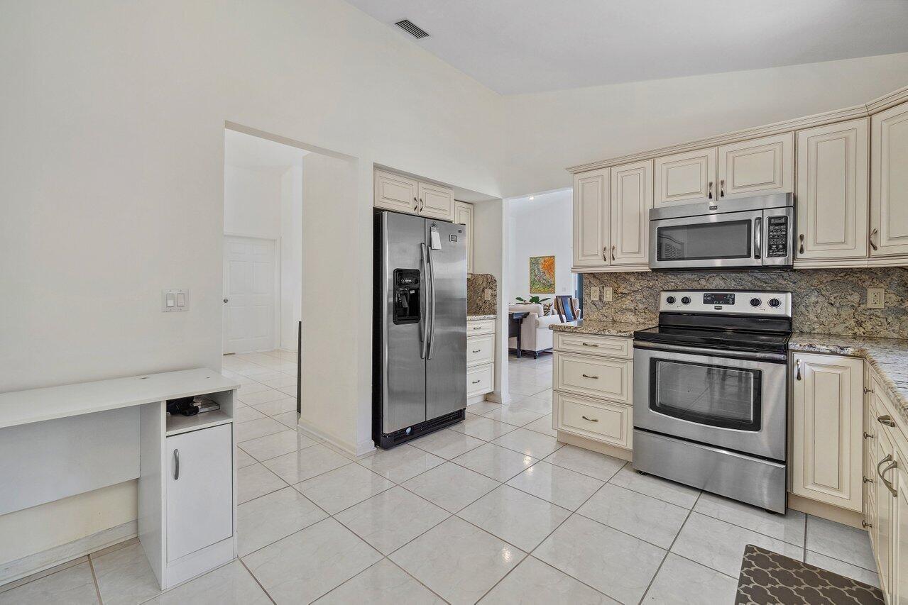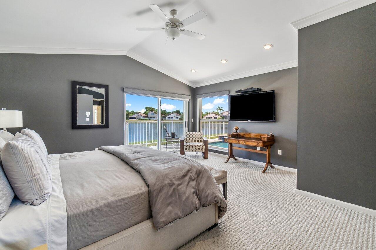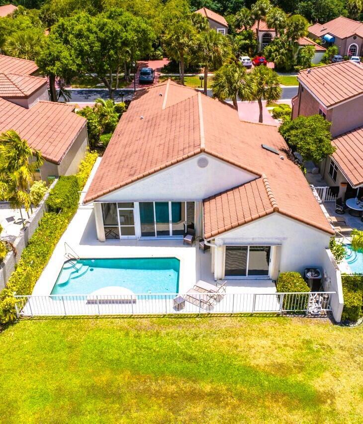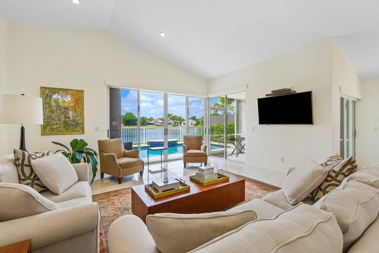 Impeccable Pool & Lake Front one story Mediterranean Single Family Home! Step into the Foyer a your eyes see the high ceilings, Open & Bright Living Areas and the Picturesque Views! This Harmonious Floor plan offers a Formal Living & Dining Rooms that step out to your Pool Lanai. Enjoy a Beautiful Custom Eat-In kitchen with Granite Counters & Back Splash and Stainless Steel Appliances! Main bedroom suite is spacious and has a Newly Remodeled Luxurious Bathroom w/ Soaking tub & Stepdown shower, 2 closets, Slider to your Heated Pool & Patios. The Guest Bath is Updated, 2nd Bdrm is over sized and has plenty of closet space & 3rd room does NOT have a closet and being used as a den in addition to living room. A Short Walk to the Country Club and houses of Worship! Accordion Shutters throughout