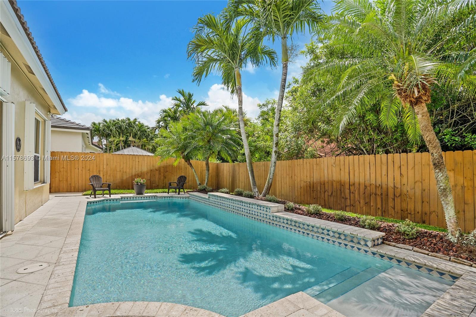 Welcome Home! This home is move in ready! Immaculately maintained, Original Owner. This 1-story, 3/2 Single Family Home Boasts a Backyard Oasis with Pool, Gazebo, Outdoor Kitchen, Palm Trees and 6 Ft Fence. 2024 New Roof, Exterior Painted Exterior 2024, A/C (2019), Plantation Shutters, Accordian Shutters and Security Lighting. Large driveway, 2 Car Garage and nearby guest parking spaces provides for plenty of convenient parking while entertaining. Master bedroom has walk-in-closet, his and her vanity, separate shower & roman tub. Renovated Kitchen and Bath. Home is surrounded by well maintained landscaping and privacy. Low HOA Fees. No HOA Buyer approval. HOA includes basic cable and internet through Comcast.