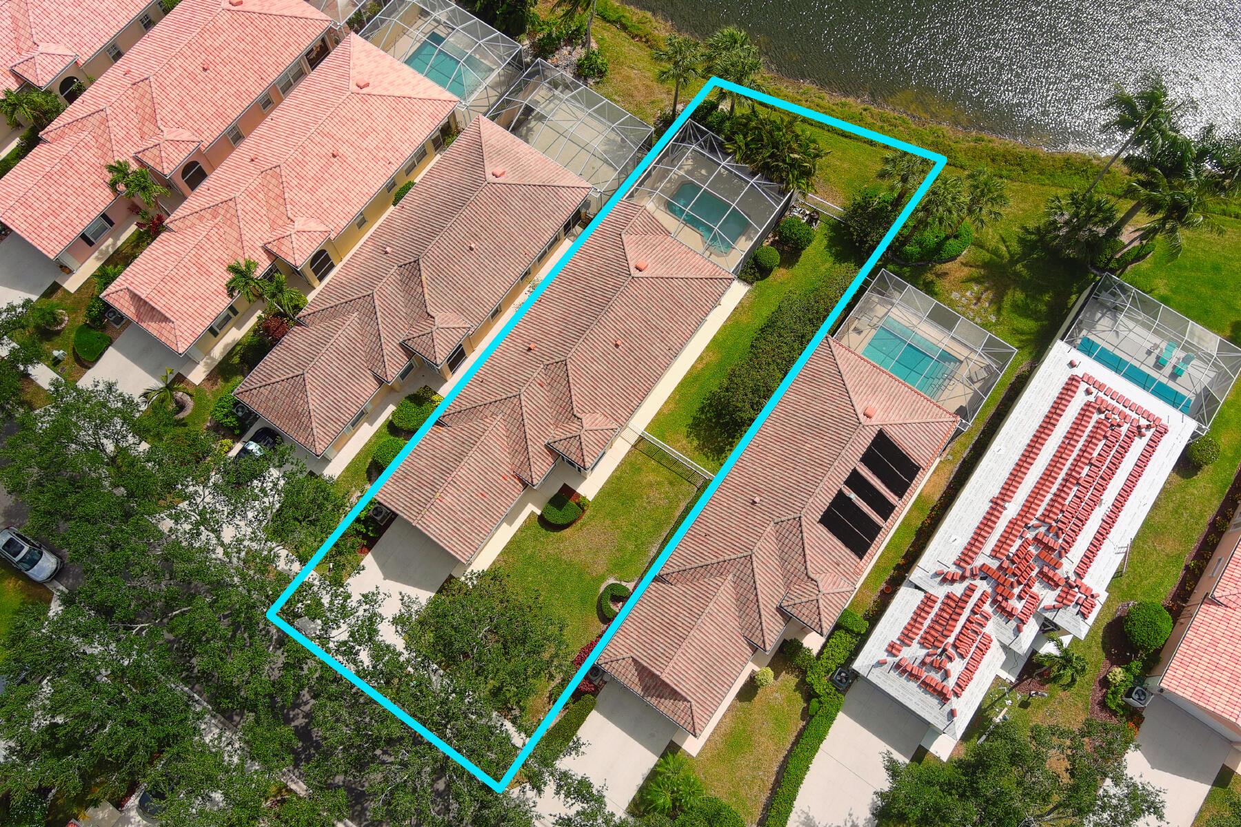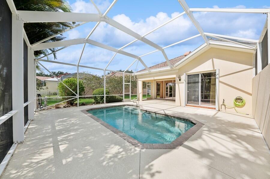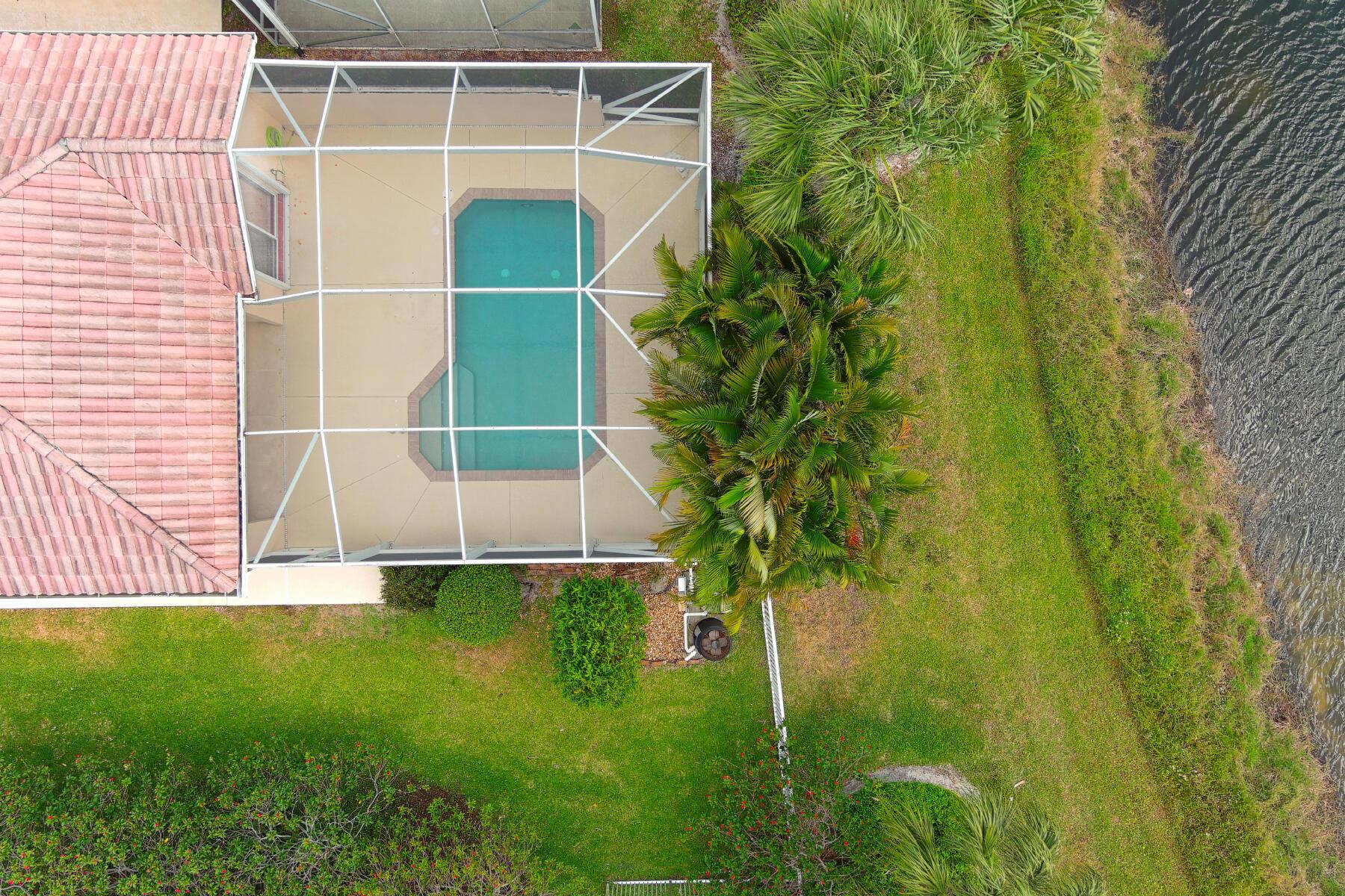 A Rare Opportunity, for One Lucky Buyer, to start with a Blank Canvas & Create a Home that can reflect their Own Personal Taste & Yet have the Foundation be this 3 Bedroom 2 Bath Glenwood Model with a Screened Cage having a Custom Heated Swimming Pool on an Extra Wide Fenced Lakefront Lot (close to 1.5 Times the Normal Size Lot)with Panoramic Views, On a Breathtaking Lakeside Parcel with Unobstructed Views of a Cul de Sac, Common Green Space that borders the Opposite Shoreline; directly behind the Lush Yard, Plus Views, of the Adjoining Lakes with Pedestrian Walkways & Bridges, that go on Forever! There isn't any other home In Riverwalk with these View! The Excitement begins with a Tropically Planted Extra Wide, Broad Lush Lawn leading to an Inviting Screened Entry with a Decorative