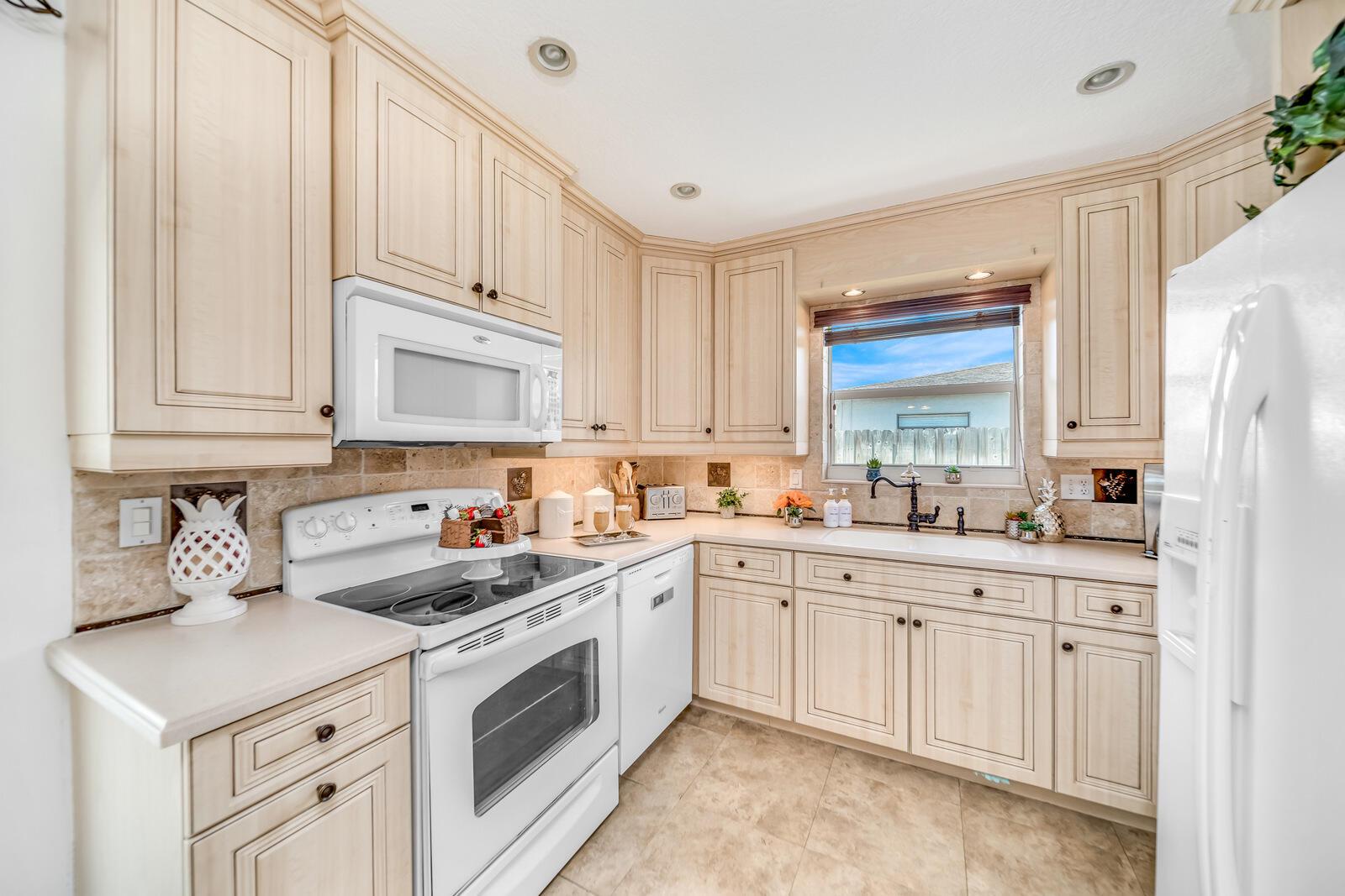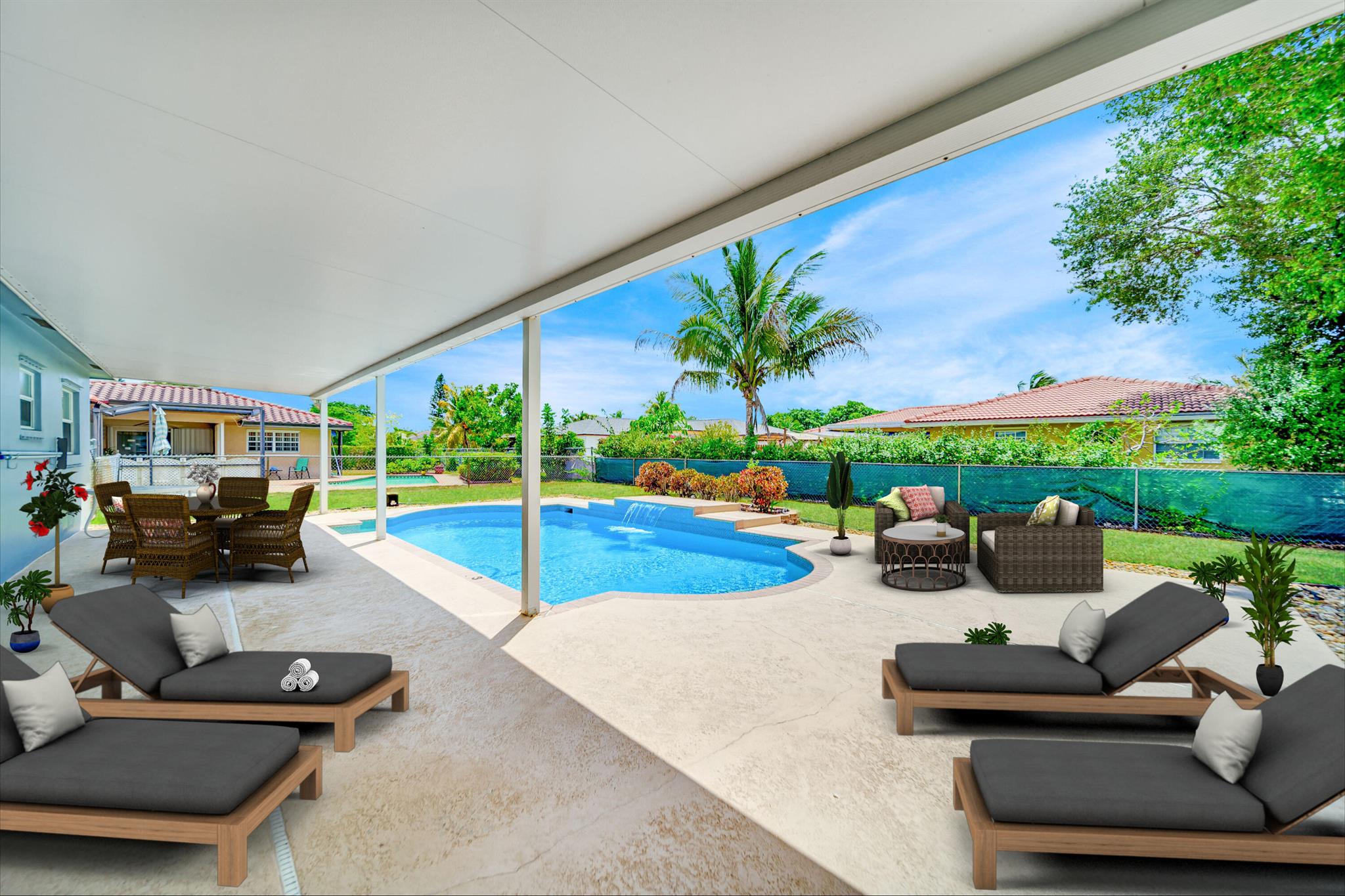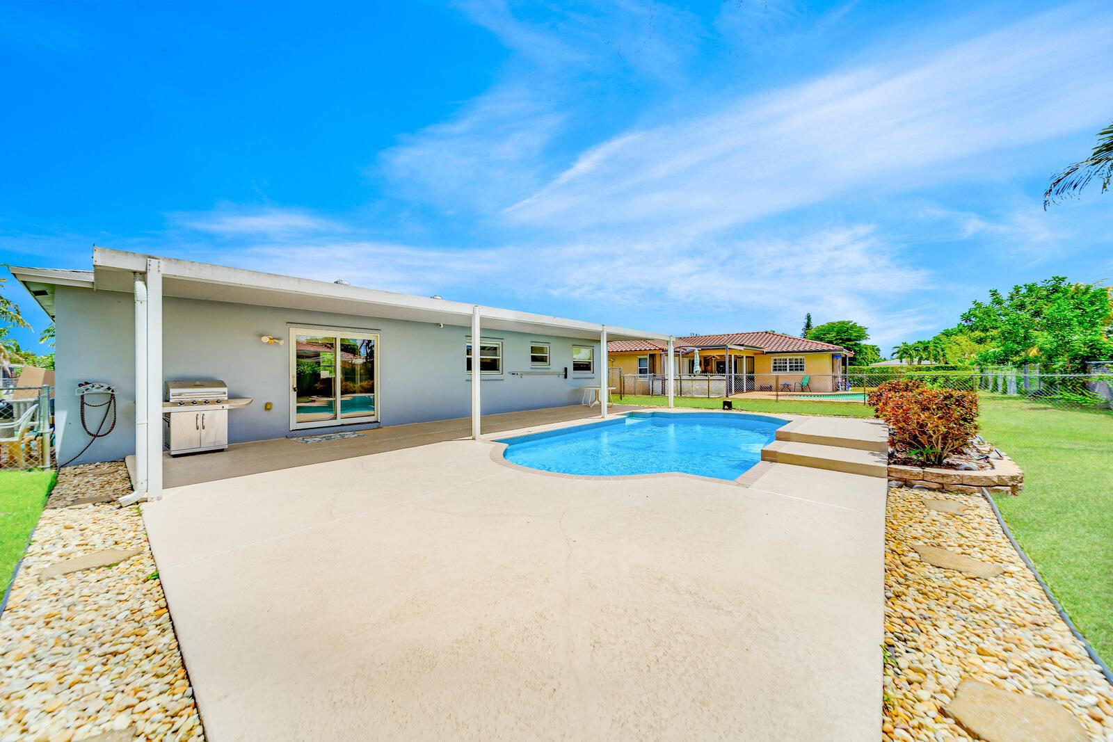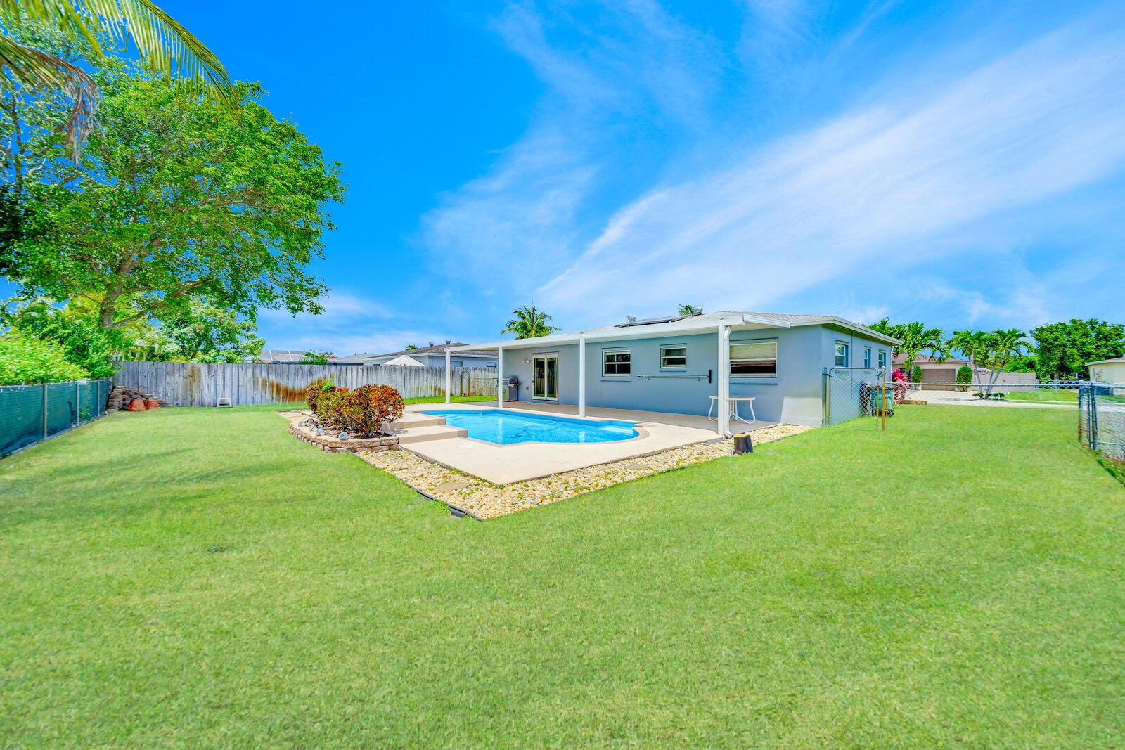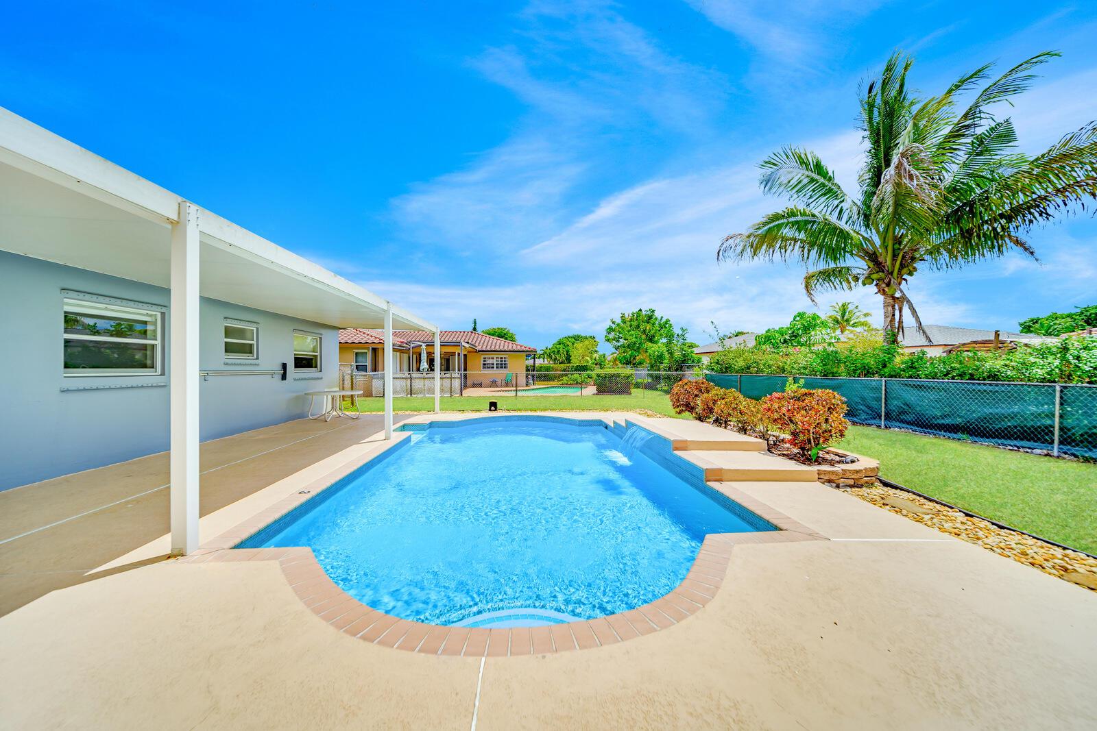 Spacious & open 3 bedroom 2 bath, 1 car garage, pool home in Palmetto Pines. NEWER sparkling swimming POOL built in 2004, was just diamond brightened in ''Beach Sand'' color plus it has all new gorgeous iridescent glass tiles plus a water fall! A tropical paradise awaits you outside while you enjoy endless swimming in your own private pool. Fenced in yard plus green grassy area. Covered & open patio area. Great for BBQ! Newer windows! Updated kitchen features tall wood cabinets, tumbled marble backsplash and tons of counter space plus a sunny eat in area. Big living room. Master suite & guest bath are both updated. Move in ready home that is well maintained & in meticulous condition.