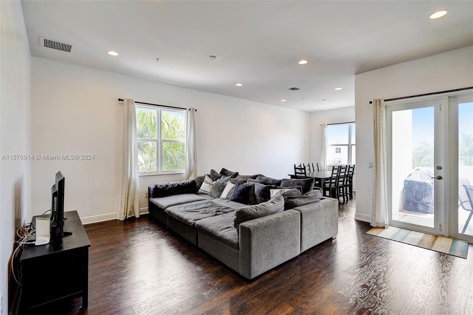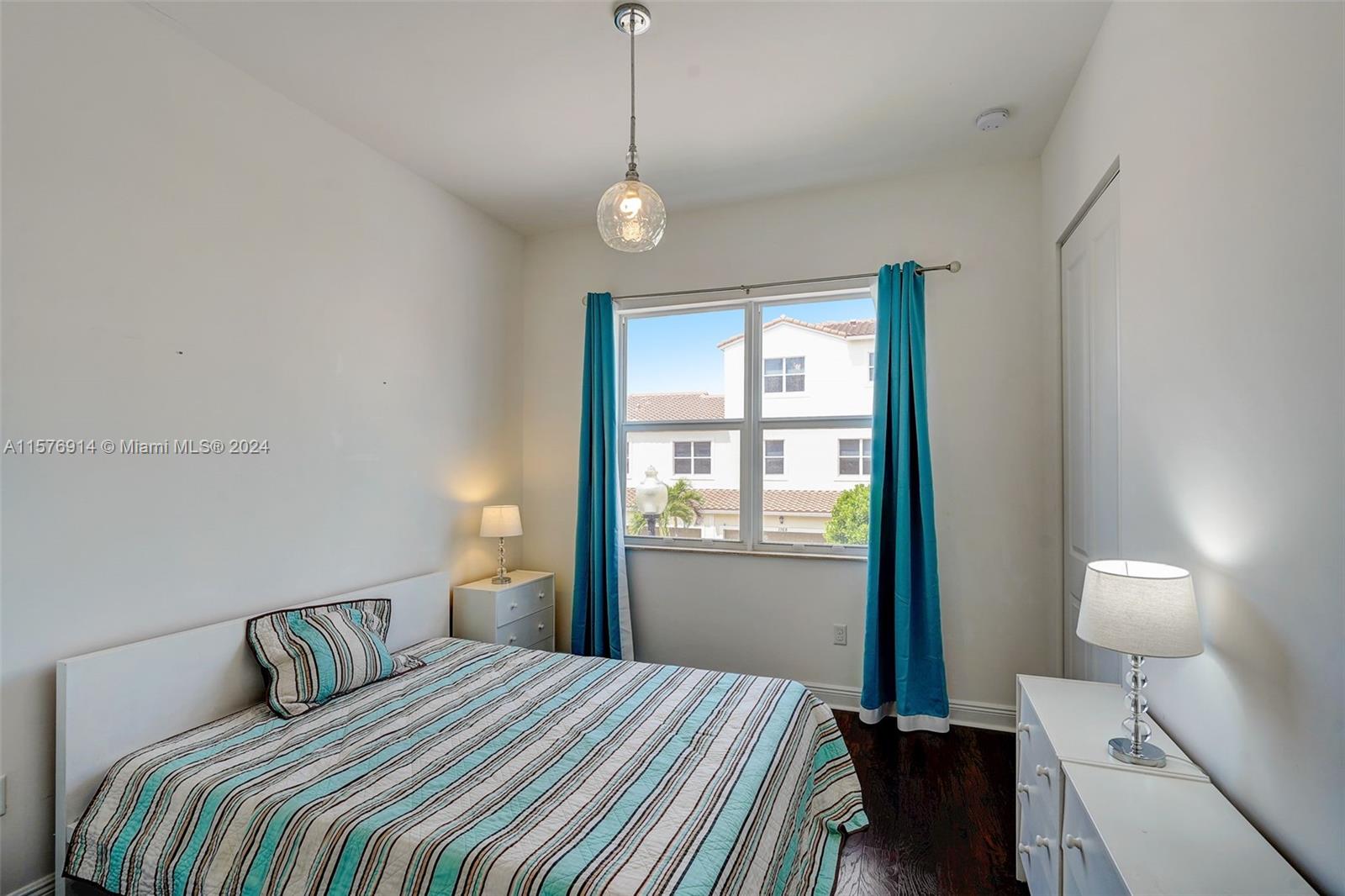 Stunning 3 story corner townhome in the gated community of Centra Falls West. Built in 2018, you will have peace of mind as it feels like brand new! The interior of this home features porcelain tile flooring, hardwood floors & upgraded stair railings. The gourmet kitchen is complete w/upgraded kitchen cabinetry, quartz countertops, decorative backsplash, ss appliances, and large eat in island. The second level of this you have the laundry room, 2 secondary bedrooms & large primary suite w/private balcony, walk-in closet. The 3rd level features another bedroom, second living room, and dining area, and a large terrace with summer kitchen perfect for entertaining. On each level there is a large closet for plenty of storage. Townhome is directly across from the community pool and gym.