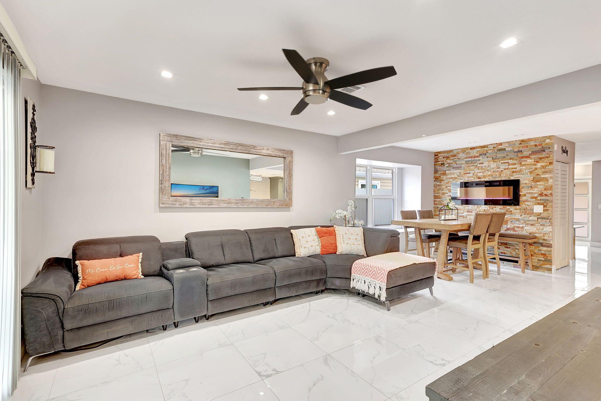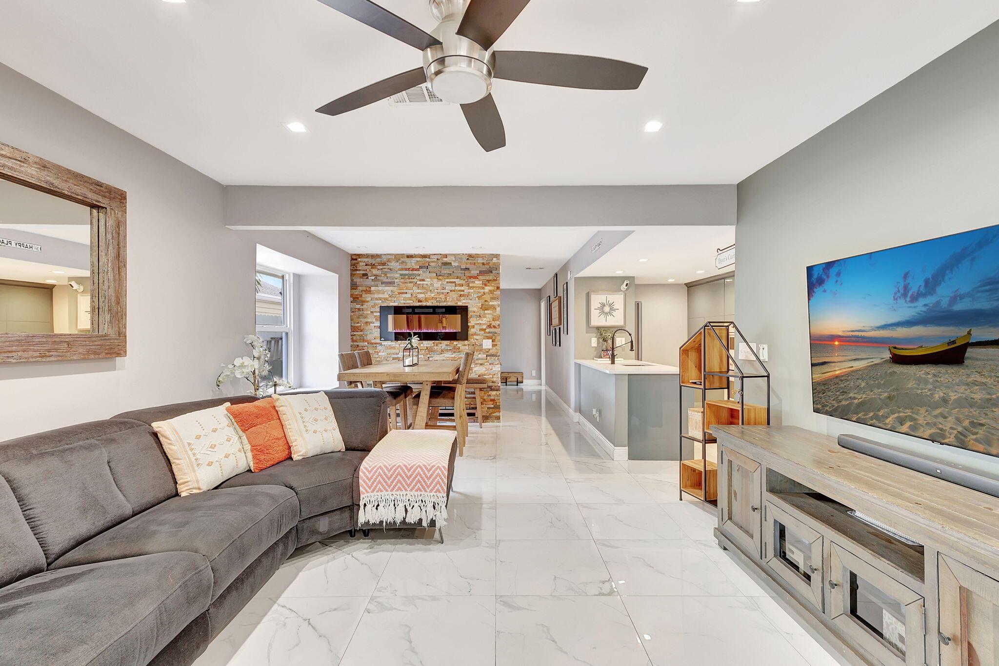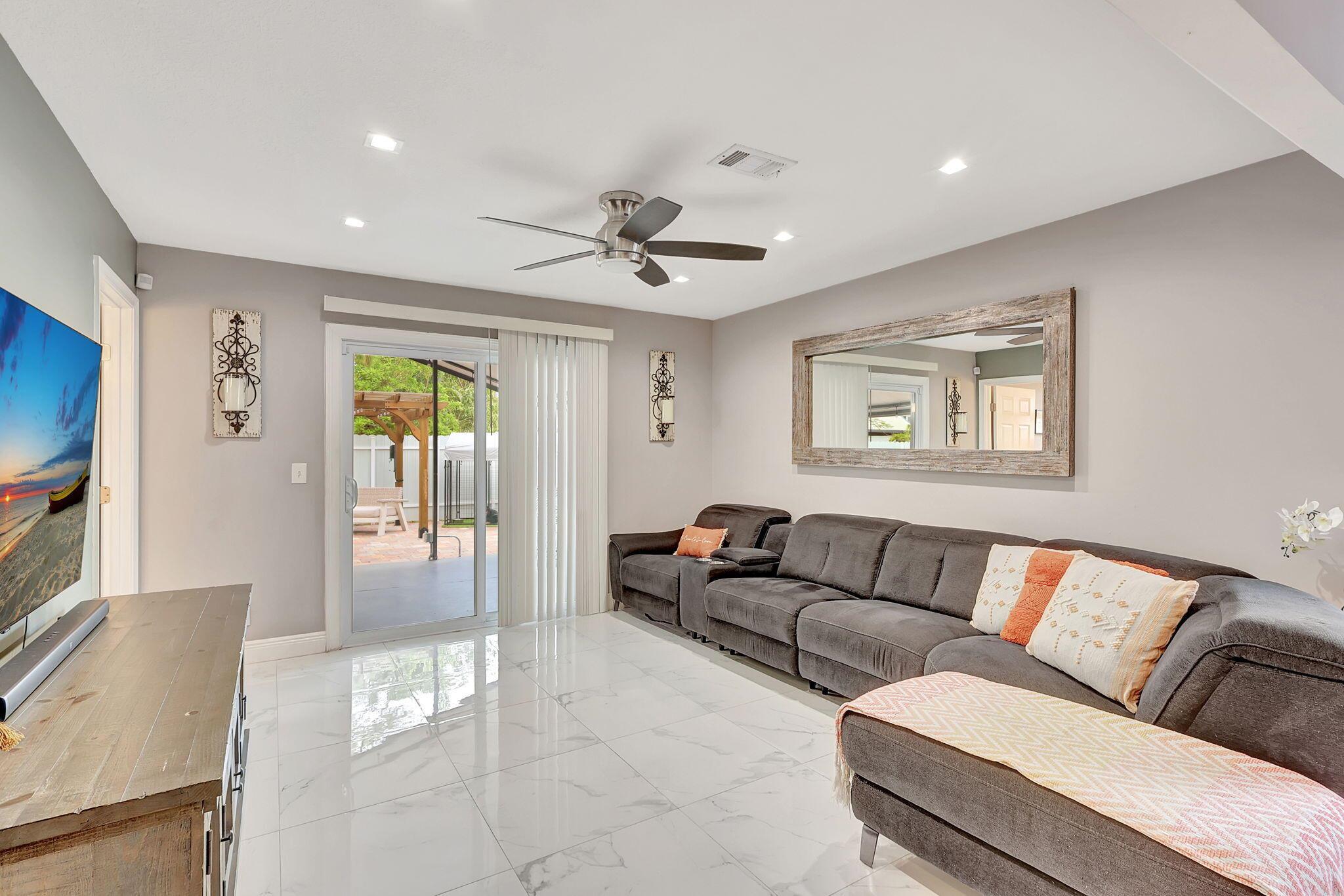 This stunning 5-bedroom, 2.5-bathroom residence has been meticulously renovated from top to bottom, offering contemporary design, high-end finishes throughout, impact windows and doors, and custom fireplace. Situated in the Victoria Woods community, this home not only delivers on modern luxury but also a lifestyle filled with amenities. The seamless flow between the living room, dining area, and kitchen makes it perfect for entertaining and everyday living. With access to the private backyard that has been designed for entertainment leisure, it is a great indoor and outdoor living experience. Victoria Woods offers a range of amenities including a community pool, clubhouse, tennis and basketball courts, a playground, a picnic area,