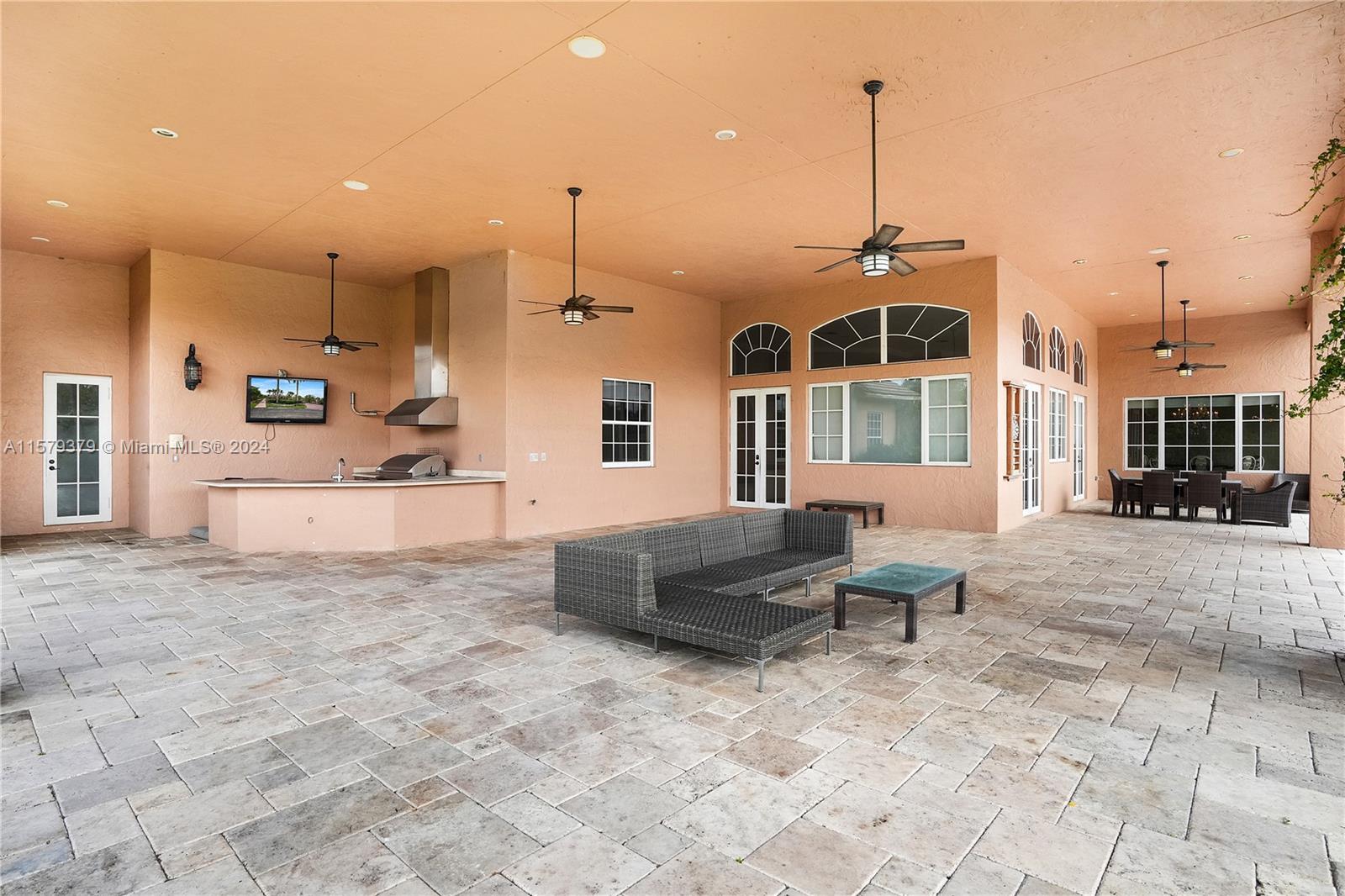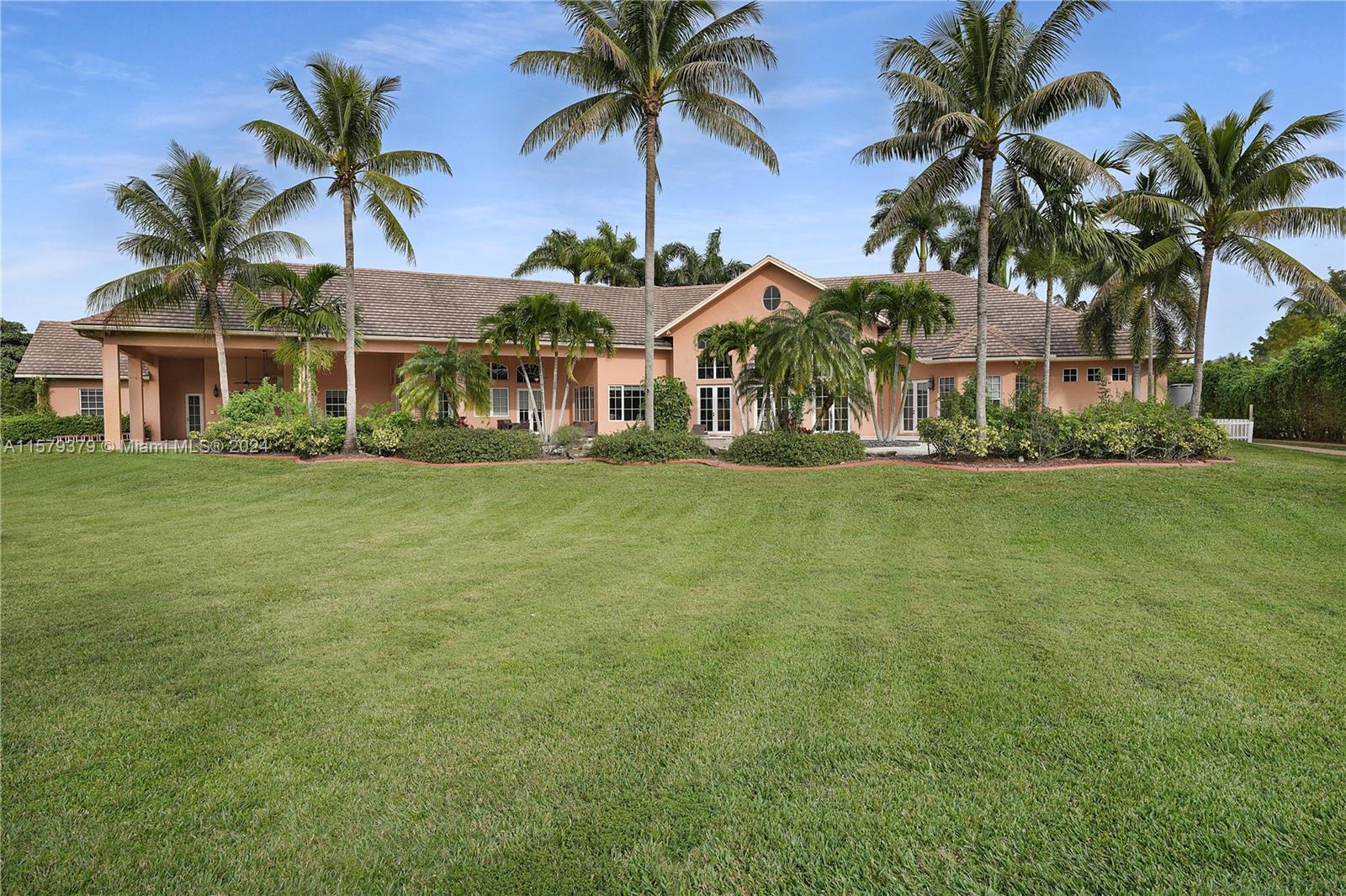 Exquisite French-inspired situated in the coveted sunshine ranches community of southwest ranches. Hidden away on a serene cul-de-sac with only three neighboring homes. This property spans nearly four acres of beautifully maintained gardens. The ranch style layout exudes sophistication wit features like marble flooring, a media room, dual master suites, and private bathrooms in each bedroom. The state of the art kitchen is outfitted with premium appliances making it perfect for culinary enthusiasts. the state also includes an expansive lanai, outdoor kitchen, and a luxurious pool and spa, ideal for entertaining or relaxation. Enhaced with hurricane-resistant and doors, plus automatic generator. This Home is both secure and distinctive.SELLER TO ACCEPT CRYPTO