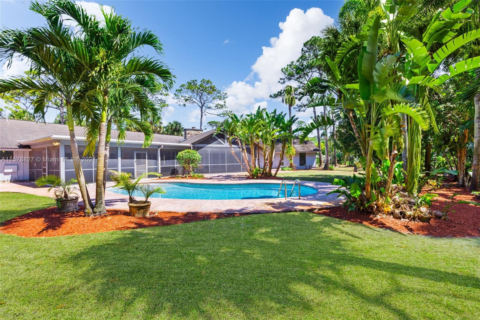MUST SEE!! This beautiful ranch-style pool home has 4 bedrooms, 3.5 bathrooms, and a sizeable office. It sits on almost 2 acres of manicured property and is part of a very exclusive community with no HOA and private roads. The large dining and family rooms are perfect for entertaining, and the common area boasts stunning marble floors. The oversized screened lanai is ideal for enjoying the beautiful pool. The home has a newly paved circular driveway with a large carport and a two-car attached garage. The huge backyard is fully fenced-in and irrigated. Don’t miss out on this once-in-a-lifetime opportunity to own an estate! Book your showing today!!