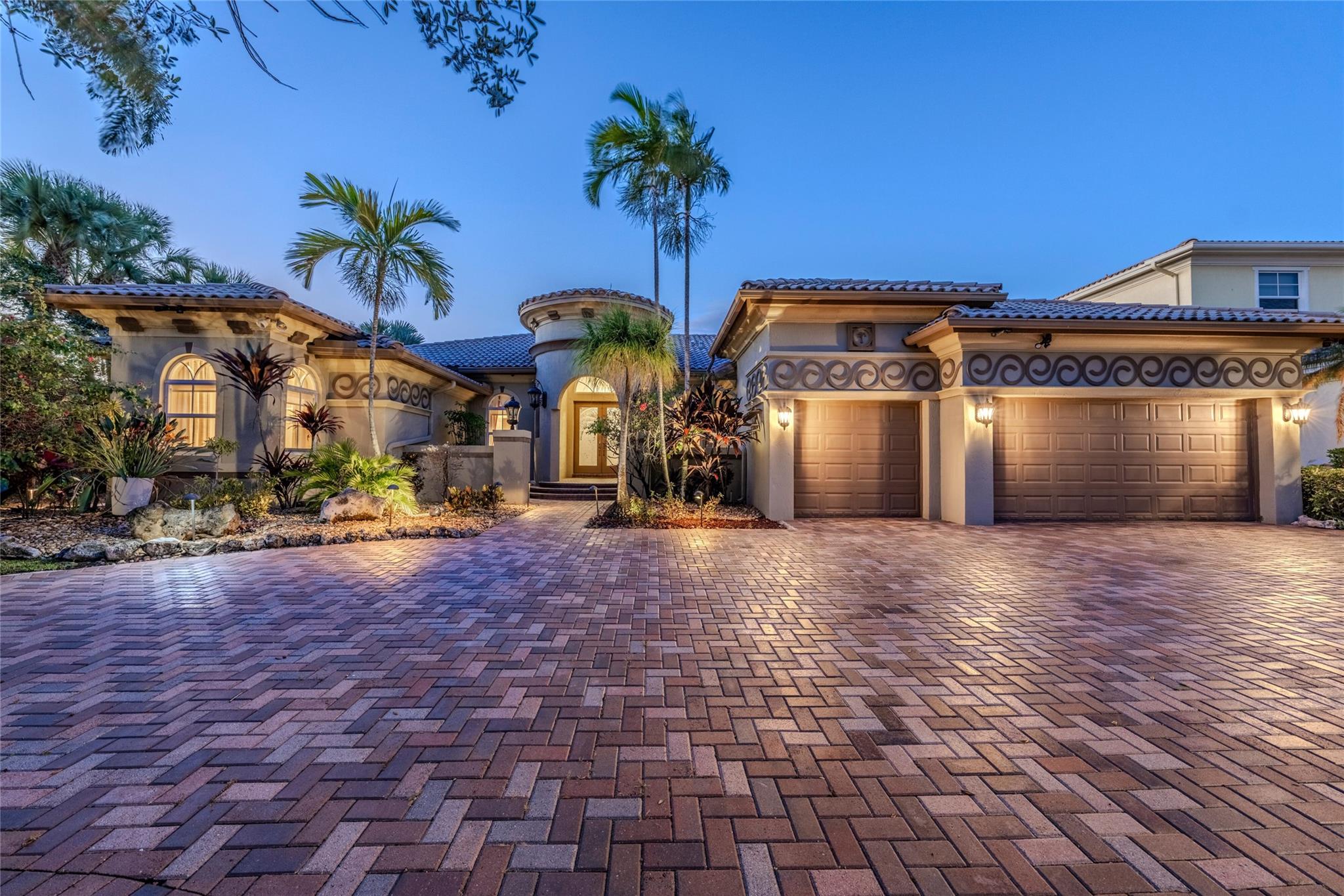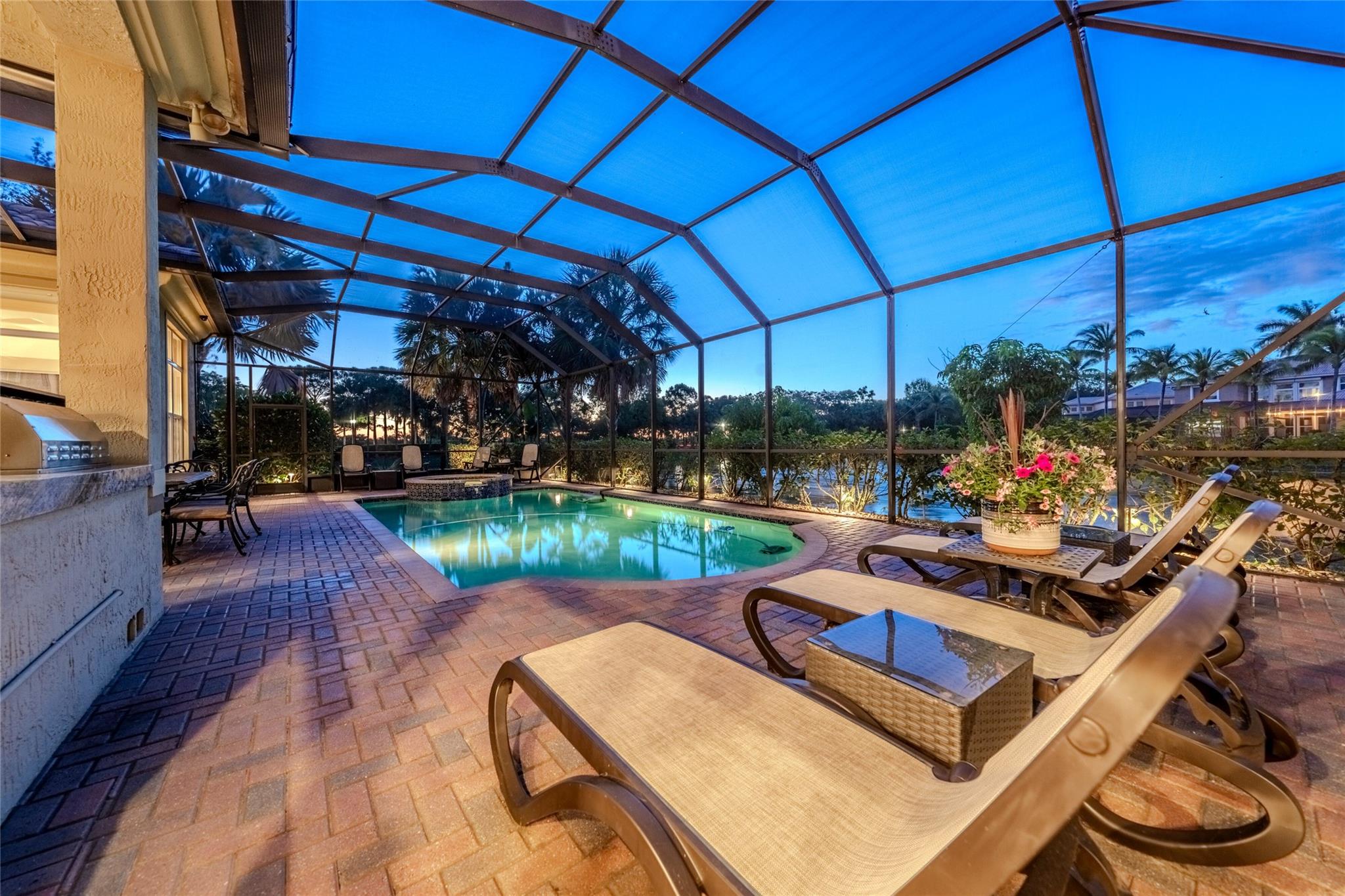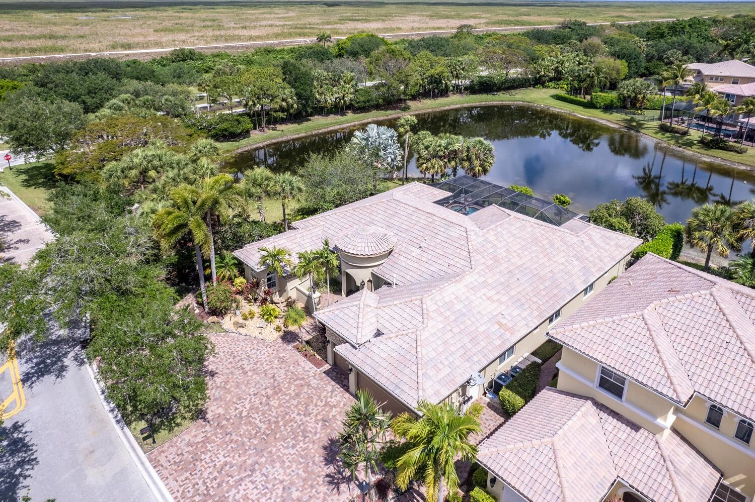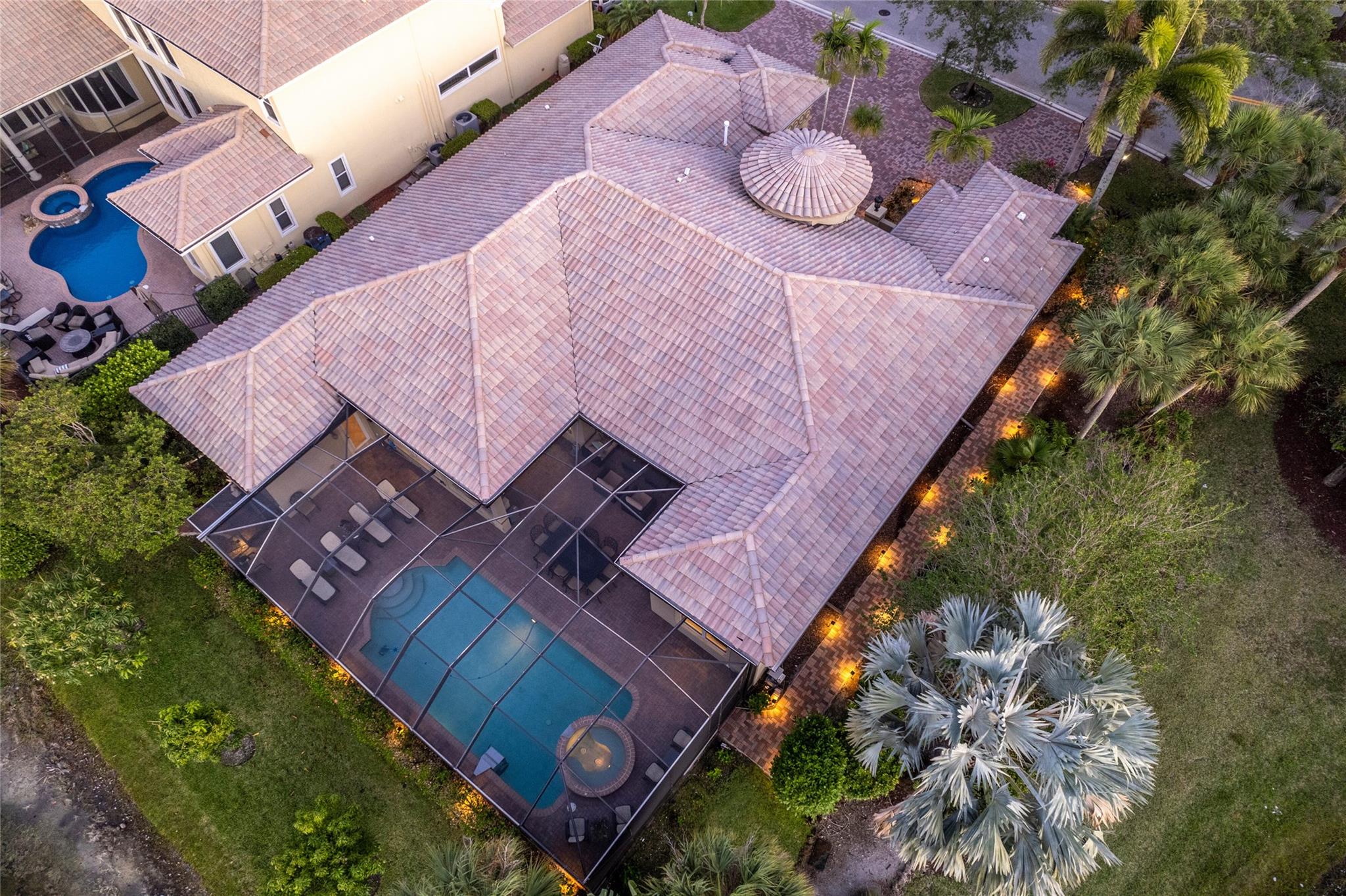 The circular driveway, exquisite elevation & beautiful landscaping only begin to define the outstanding features of this stunning home! Desirable features incl: triple split plan; impact windows & doors; volume ceilings w/crown molding; amazing chef's kitchen w/custom cabinets, pantry closet, natural gas cooktop (also gas hot H2O heater & outdoor grill), granite counters & breakfast bar, built-in s-steel appliances, & breakfast area overlooking water; five bedrooms+office+exercise room/nursery off beautiful MBR; MBA w/whirlpool tub, separate vanities & private bidet & commode; all California Closets; Central Vac (missing hose); GORGEOUS appointments--window treatments & light fixtures; beautiful, saltwater, heated, screen-enclosed pool w/Fastlane swim system; & breathtaking lake views!