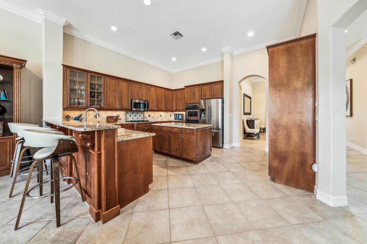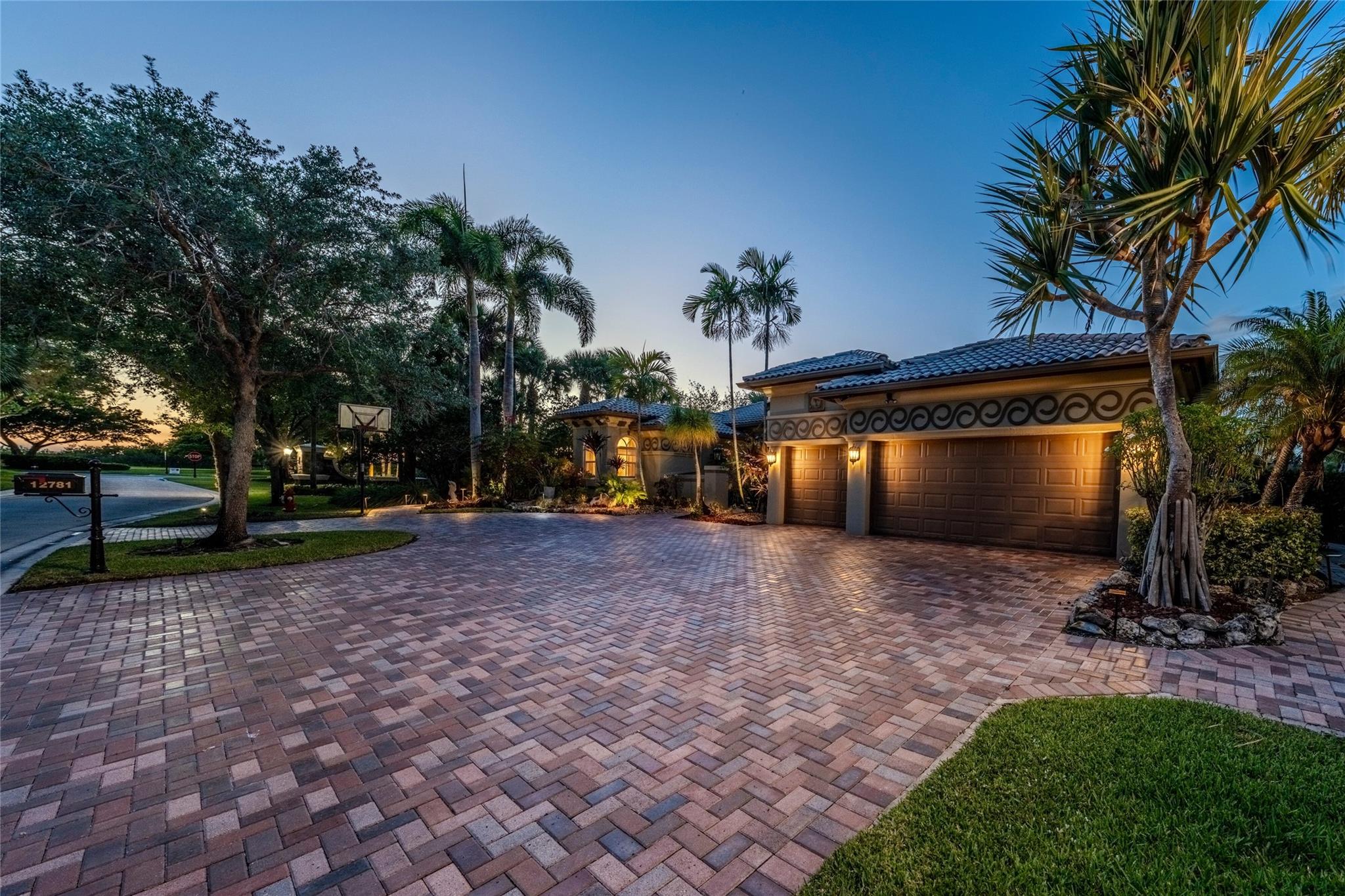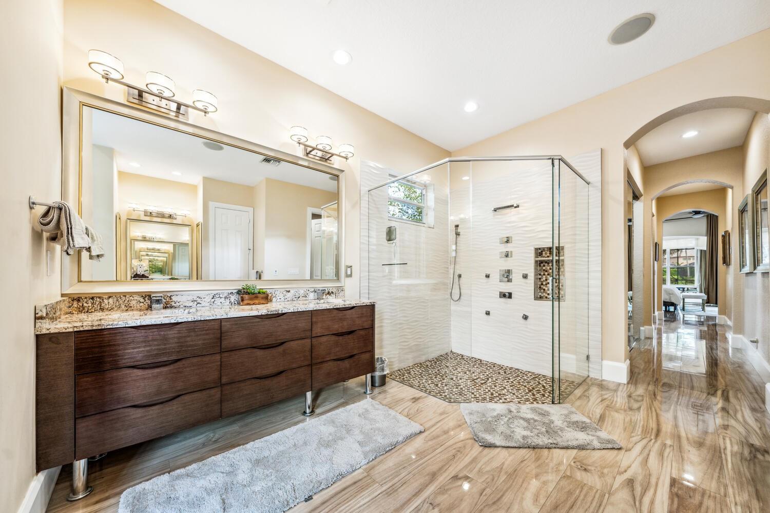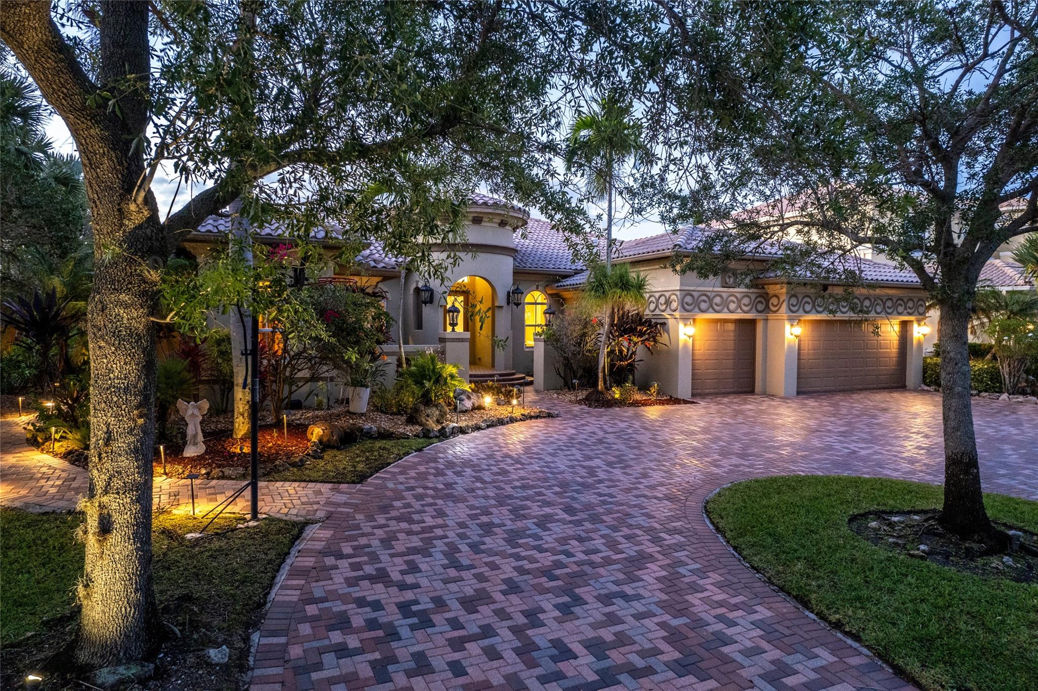 The circular driveway, exquisite elevation & beautiful landscaping only begin to define the outstanding features of this stunning home! Desirable features incl: triple split plan; impact windows & doors; volume ceilings w/crown molding; amazing chef's kitchen w/custom cabinets, pantry closet, natural gas cooktop (also gas hot H2O heater & outdoor grill), granite counters & breakfast bar, built-in s-steel appliances, & breakfast area overlooking water; five bedrooms+office+exercise room/nursery off beautiful MBR; MBA w/whirlpool tub, separate vanities & private bidet & commode; all California Closets; Central Vac (missing hose); GORGEOUS appointments--window treatments & light fixtures; beautiful, saltwater, heated, screen-enclosed pool w/Fastlane swim system; & breathtaking lake views!