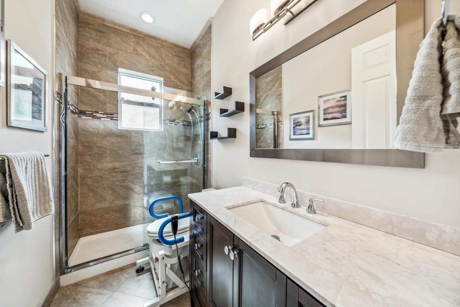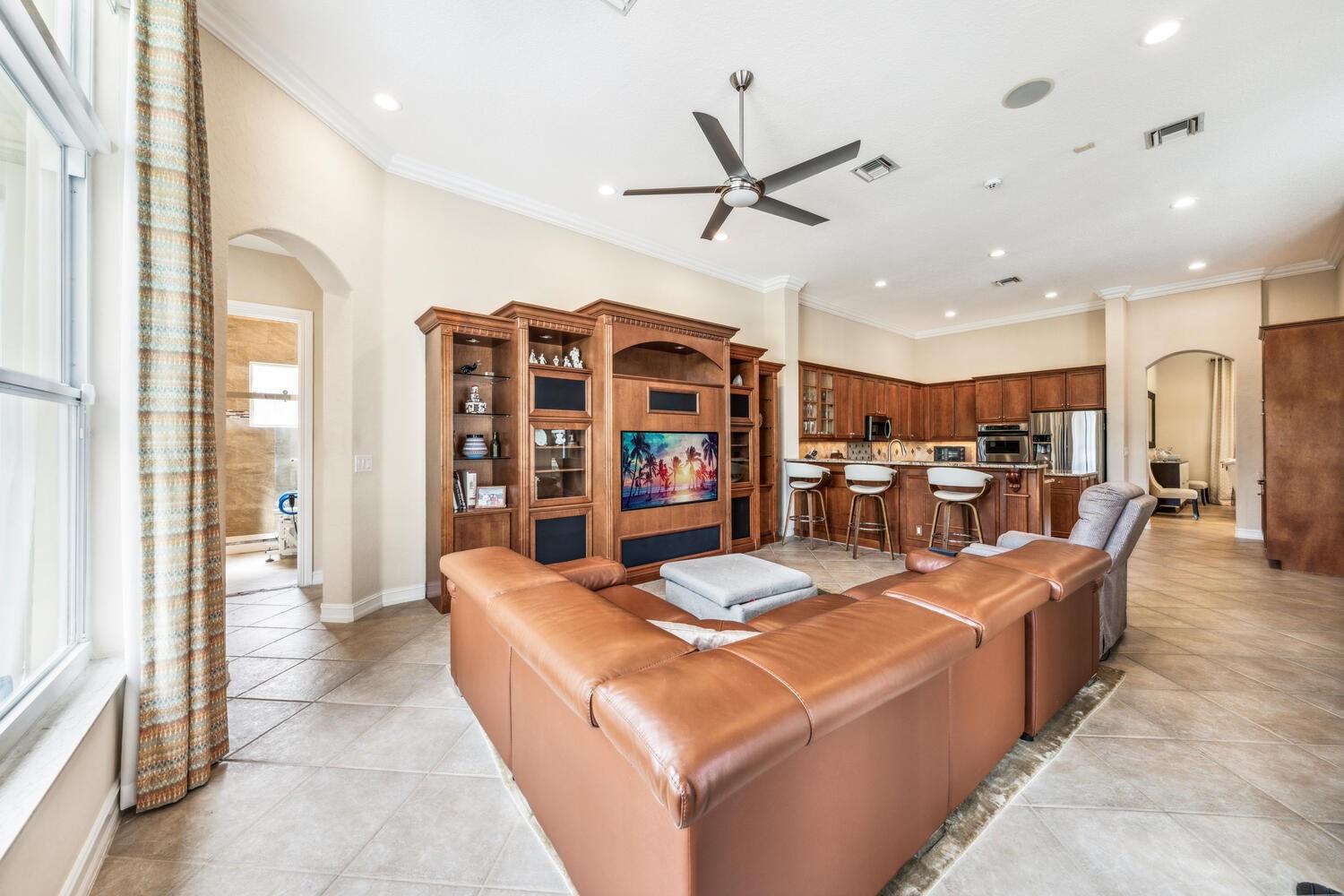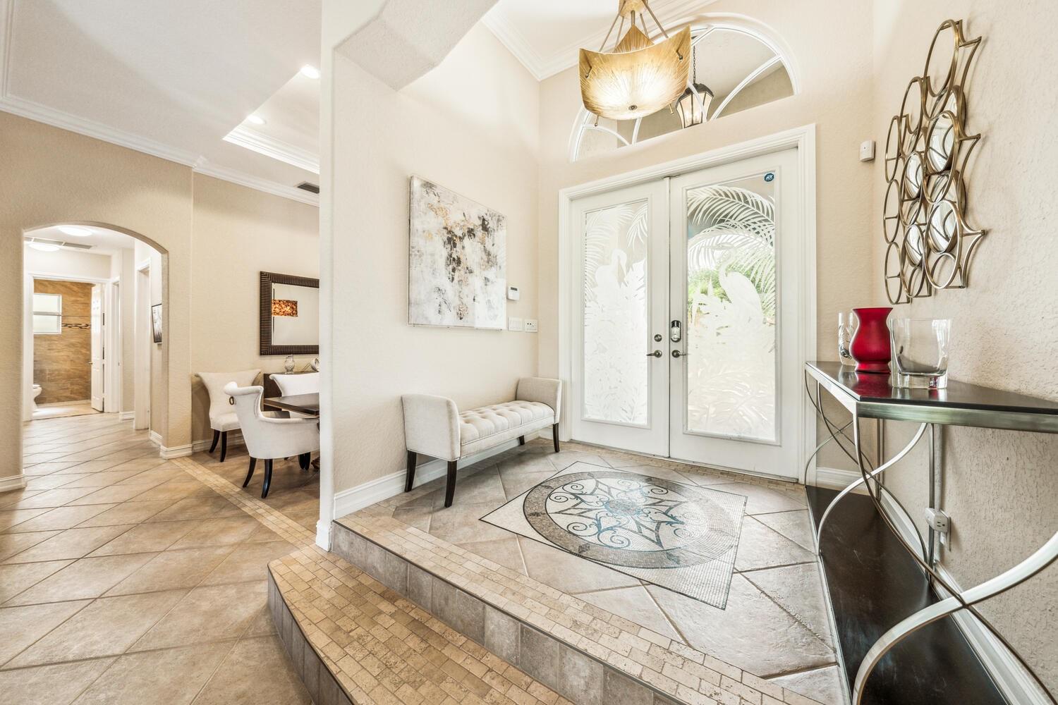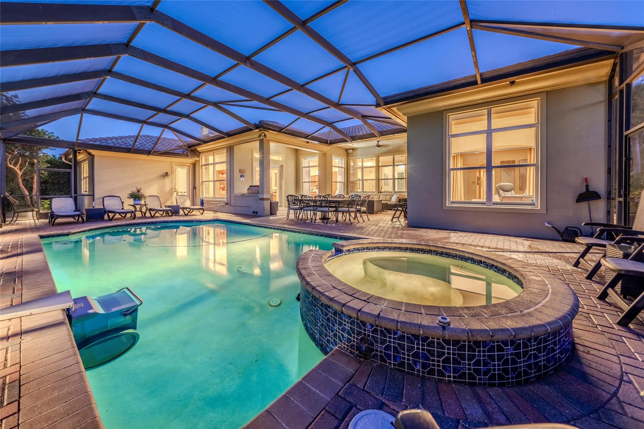 The circular driveway, exquisite elevation & beautiful landscaping only begin to define the outstanding features of this stunning home! Desirable features incl: triple split plan; impact windows & doors; volume ceilings w/crown molding; amazing chef's kitchen w/custom cabinets, pantry closet, natural gas cooktop (also gas hot H2O heater & outdoor grill), granite counters & breakfast bar, built-in s-steel appliances, & breakfast area overlooking water; five bedrooms+office+exercise room/nursery off beautiful MBR; MBA w/whirlpool tub, separate vanities & private bidet & commode; all California Closets; Central Vac (missing hose); GORGEOUS appointments--window treatments & light fixtures; beautiful, saltwater, heated, screen-enclosed pool w/Fastlane swim system; & breathtaking lake views!