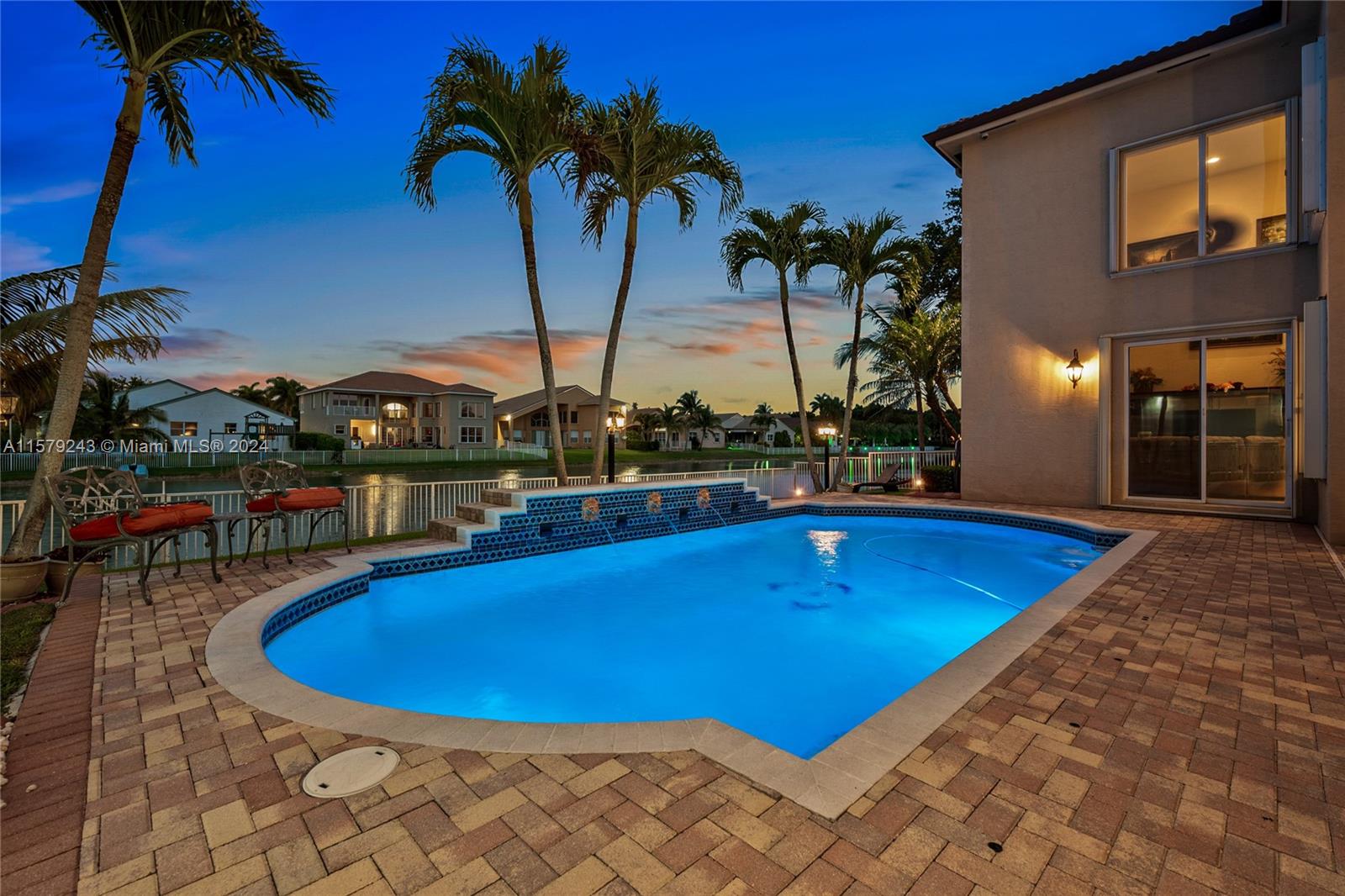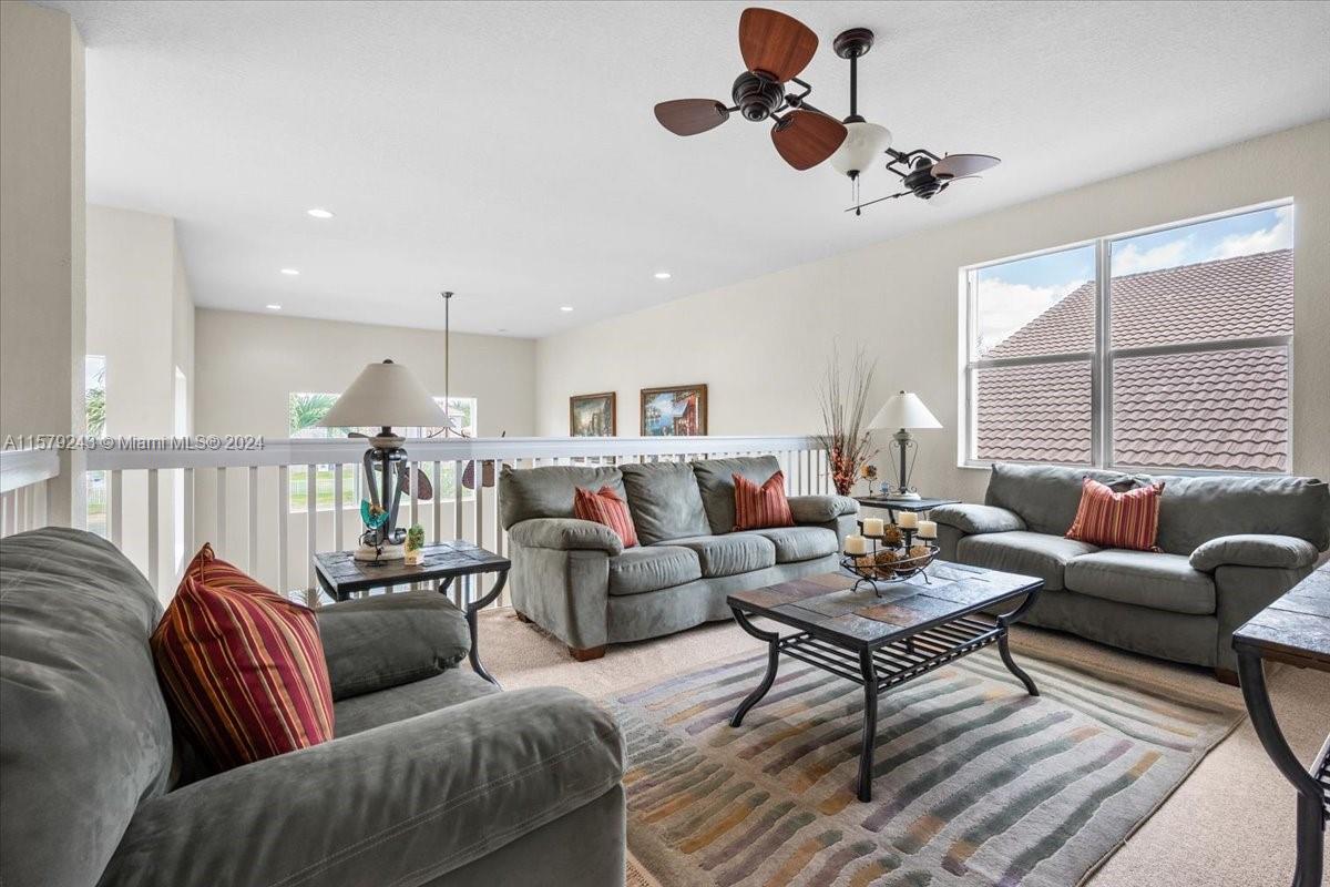 Introducing the coveted Catherine model—a captivating 4BR/3.5BA residence featuring a spacious loft and large office. Abundant natural light and a soaring 22-foot vaulted ceiling infuse modern elegance and functionality. The main level boasts two rooms, including a luxurious junior suite with its own cabana bath, alongside an additional office/bedroom. Culinary enthusiasts will appreciate the gourmet kitchen with sleek wooden cabinets and granite countertops, perfectly positioned for stunning backyard views. The loft offers versatility, easily transforming into a 6th bedroom if desired. Outside, enjoy the inviting pool and backyard with serene waterfront sunset views—an ideal setting for relaxation. Nestled in Sunset Lakes, your dream home awaits!