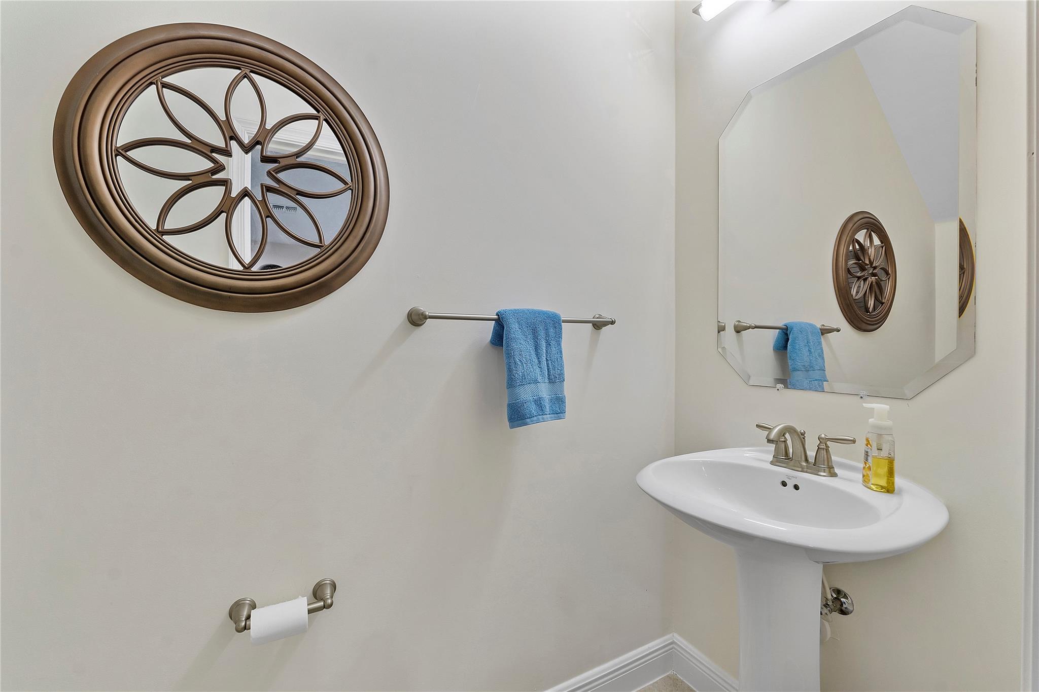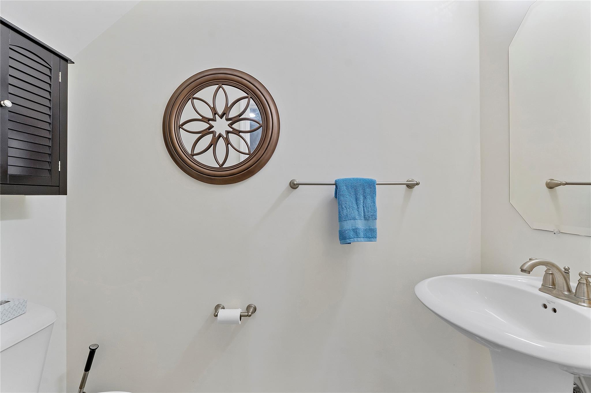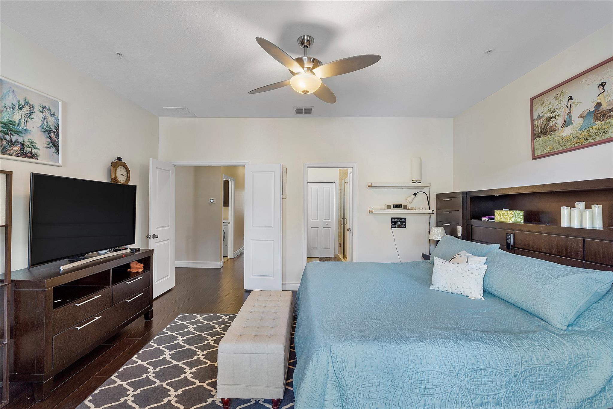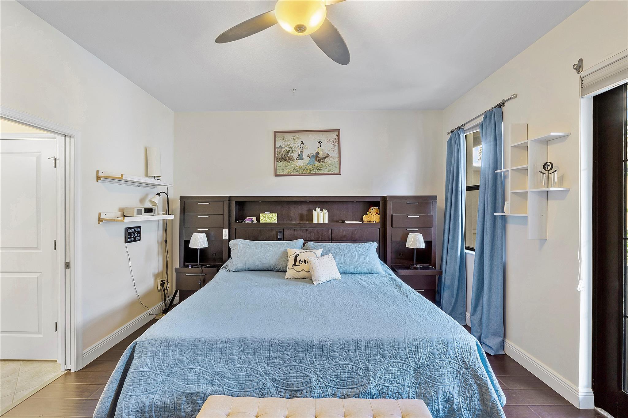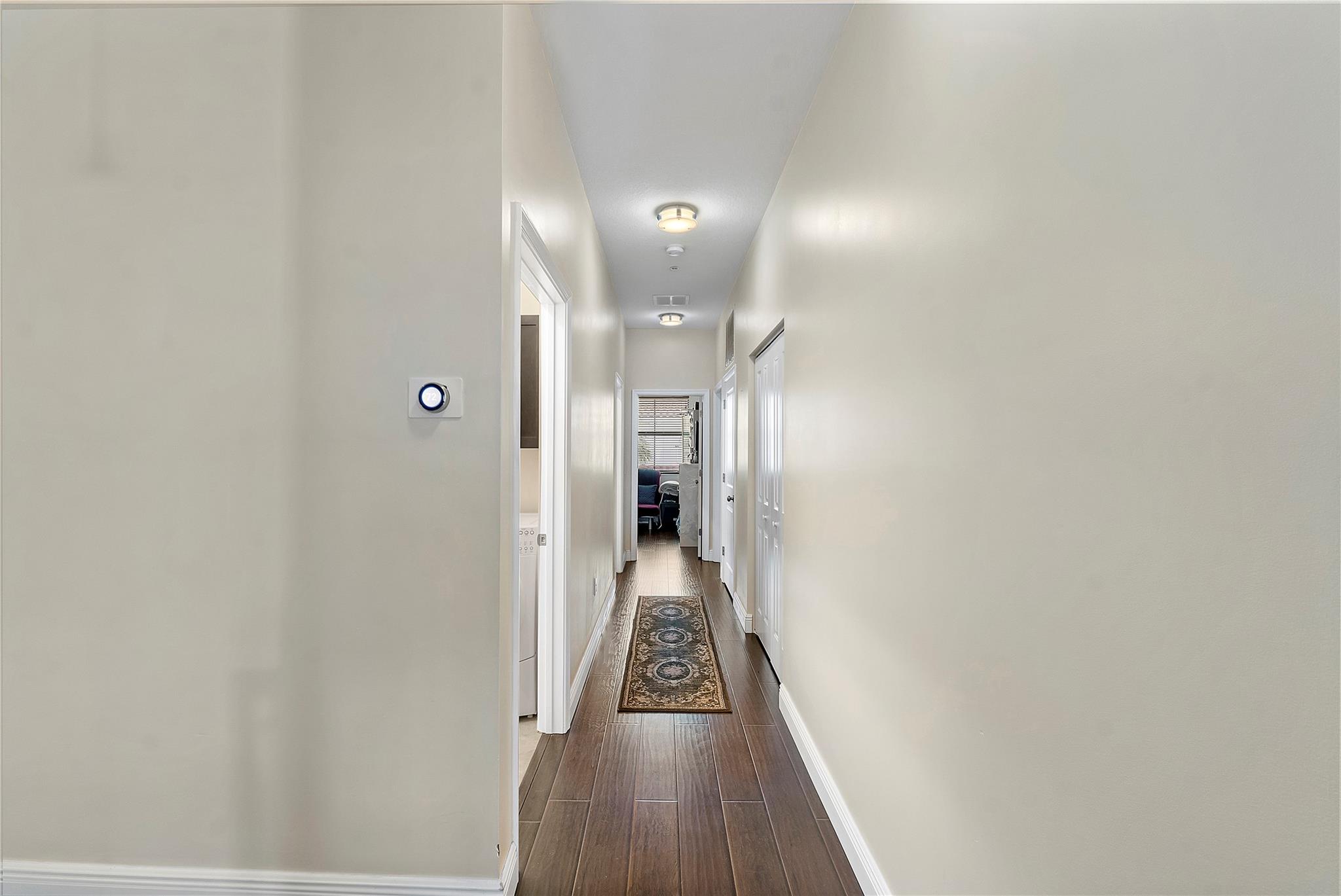 Artesia is an exclusive guard gated community with many luxury ammenities. This two story Mediterranean style townhome has 3 bedrooms, 2.5 bathrooms and a two car garage. The front porch entrance leads to an open concept living area with an updated kitchen with white cabinetry, white quartz countertops and SS appliances. Large island with seating along with a dining area. Neutral tile flooring downstairs and wood laminate on stairs and second floor. All 3 bedrooms are upstairs. Primary suite has private balcony. Primary bath has dual sinks, large shower & large walk-in closet. Additional 2 bedrooms and 1 bath and laundry room all upstairs. Impact windows thoughout. Custom Gladiator garage system with cabinets, slat walls and flooring. Water filtration system for entire home.
