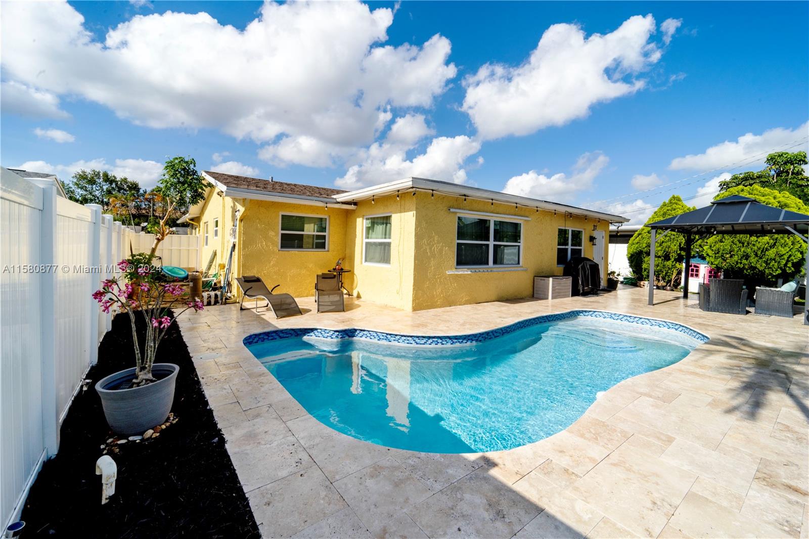 Indulge in luxurious living within this captivating 3-bedroom, 2-bathroom home, featuring a den or office space, nestled in the sought-after Sunrise community. Recently renovated, kitchen with quartz countertops and sleek wood cabinets. Enjoy the convenience of newer appliances and a modern gas water heater, Outside, the property boasts a host of upgrades, including new gutters in the front side of the house , insulation, and impact windows and doors, A newly paved circle driveway , new PVC fence encloses your private sanctuary. Entertain with a sparkling diamond bright refinished pool and a travertine pool deck, the roof may be 11 years old, with recent updates including a new electrical panel. Conveniently located near the Sawgrass Expressway and Sawgrass Mills shopping mall,