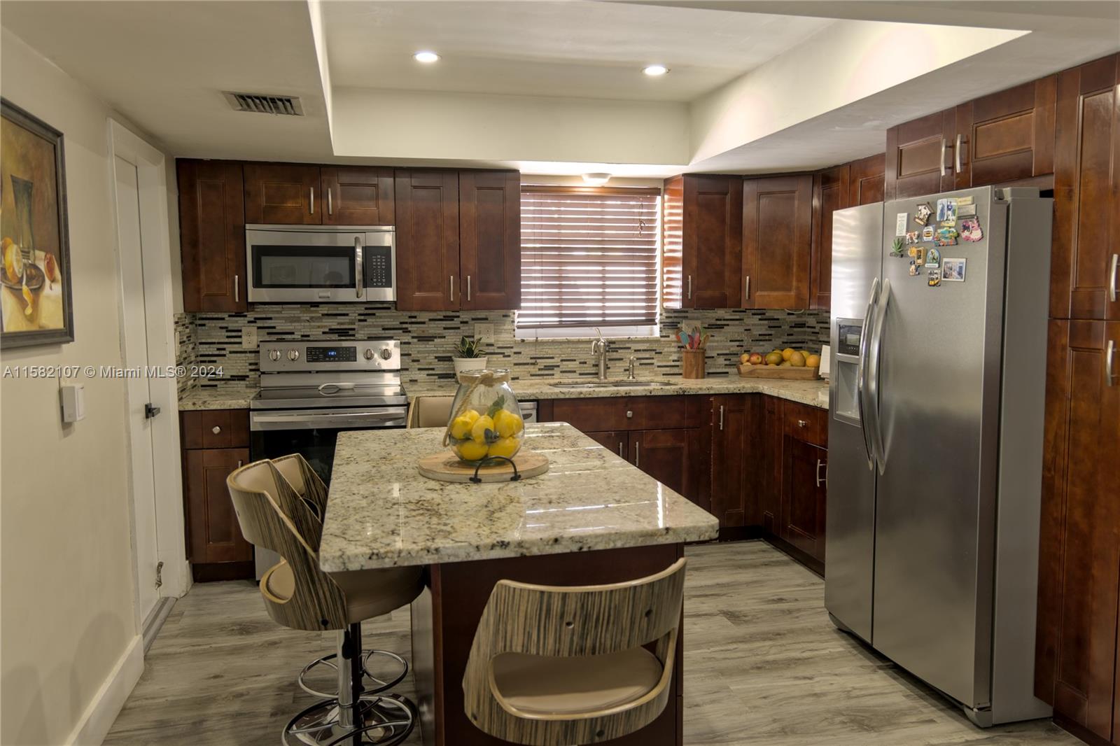 "Pasadena Lakes South" Pembroke Pines, 3 bedroom, 2.5 bath, guest room, working area, laundry, newly resurfaced pool, A/C is less than 6 years old. NO HOA! Newly renovated vinyl floors, open concept, beautiful kitchen with island, new main bathroom, very modern, accordion shutters, impact french door and french door to patio with beautiful roof covered terrace next to pool. Located minutes from major roads, schools, parks, restaurants, malls, casinos and beaches. Easy to see! Garage has been converted to work area, but can be easily converted back to garage.