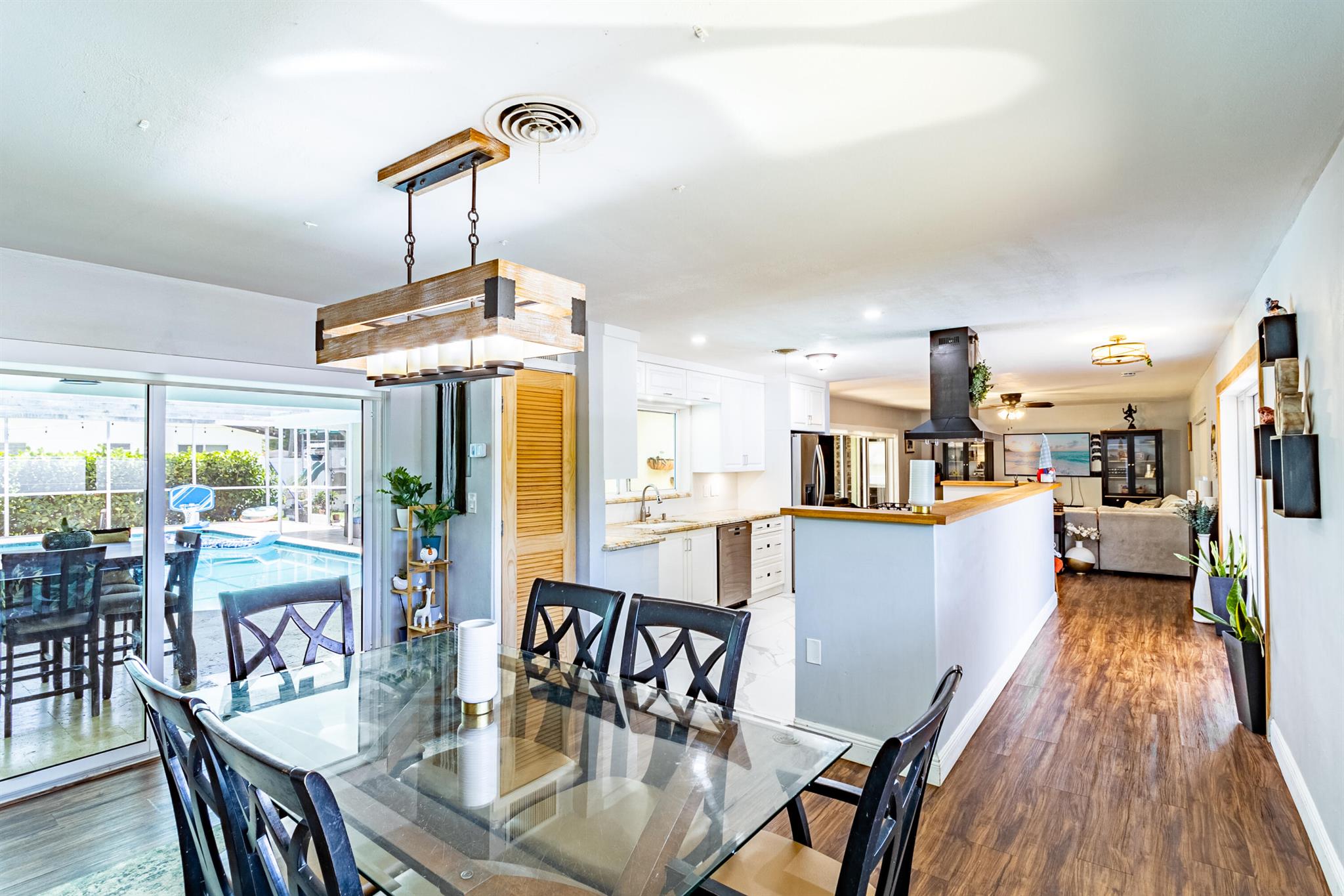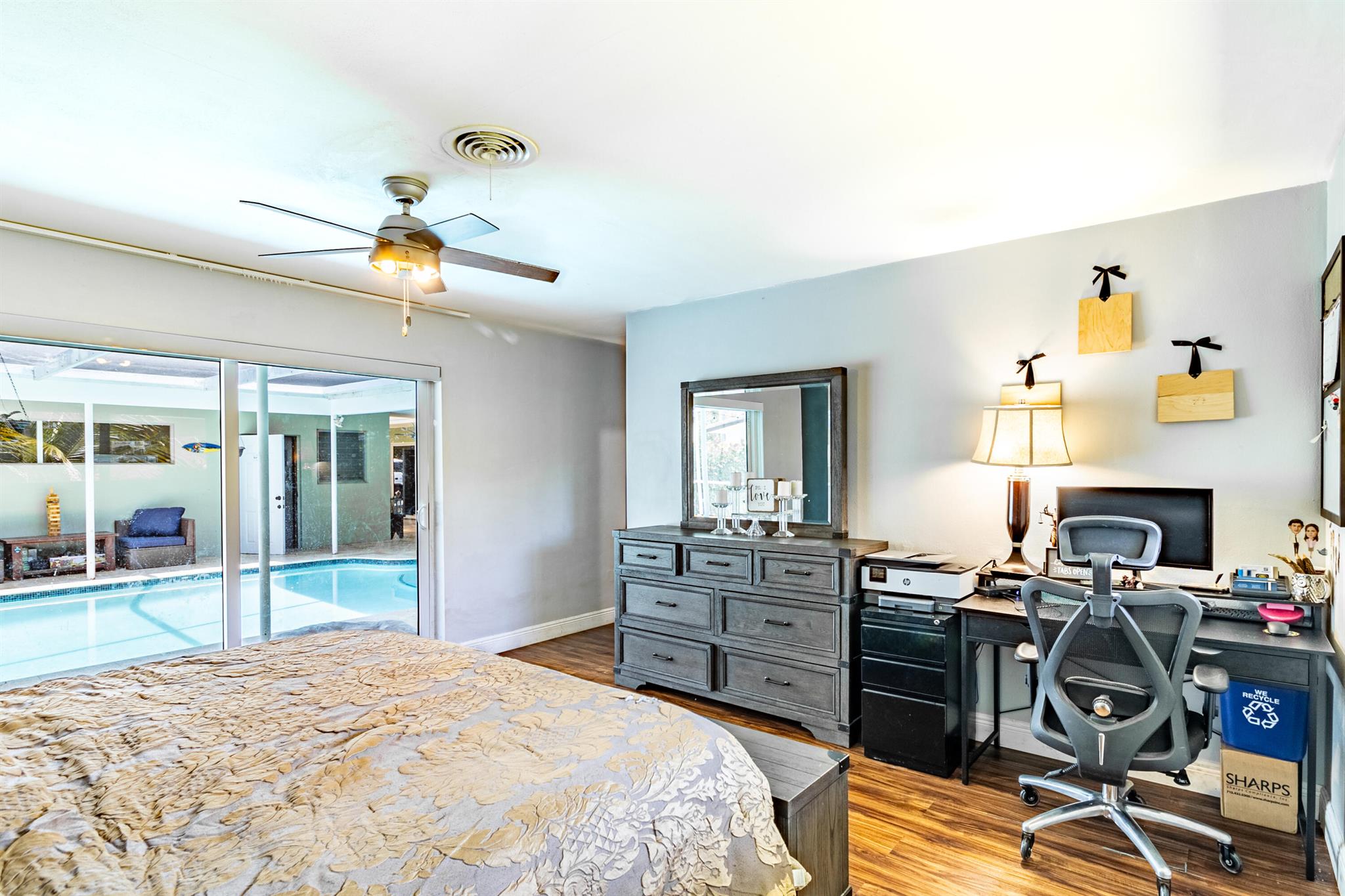 Discover this large corner lot home in Plantation Park's coveted no-HOA community! Featuring an oversized screened-in pool and courtyard, with serene views from every room. Beautiful fenced in backyard with a fire pit is perfect for entertaining. Home has been extensively updated for comfort with new Kitchen and Bathrooms. Pool completely redone with sealed travertine pool tiles, new pool heater and pump, complete hurricane impact windows and doors, new A/C, tankless water heater, and brand-new appliances including washer/dryer for added peace of mind. Electrical & insulation upgrades enhance safety and efficiency. See Documents for full list of upgrades! Move in ready. Located in an excellent school zone, within walking distance to parks and playgrounds--ideal for families.