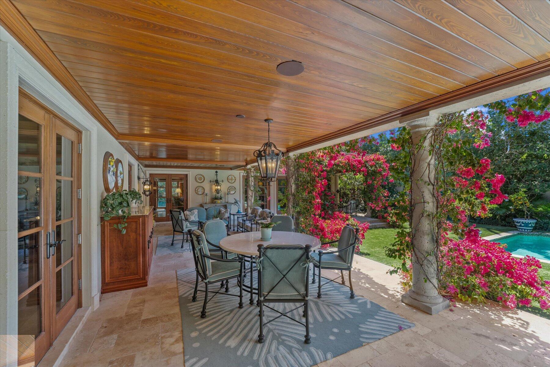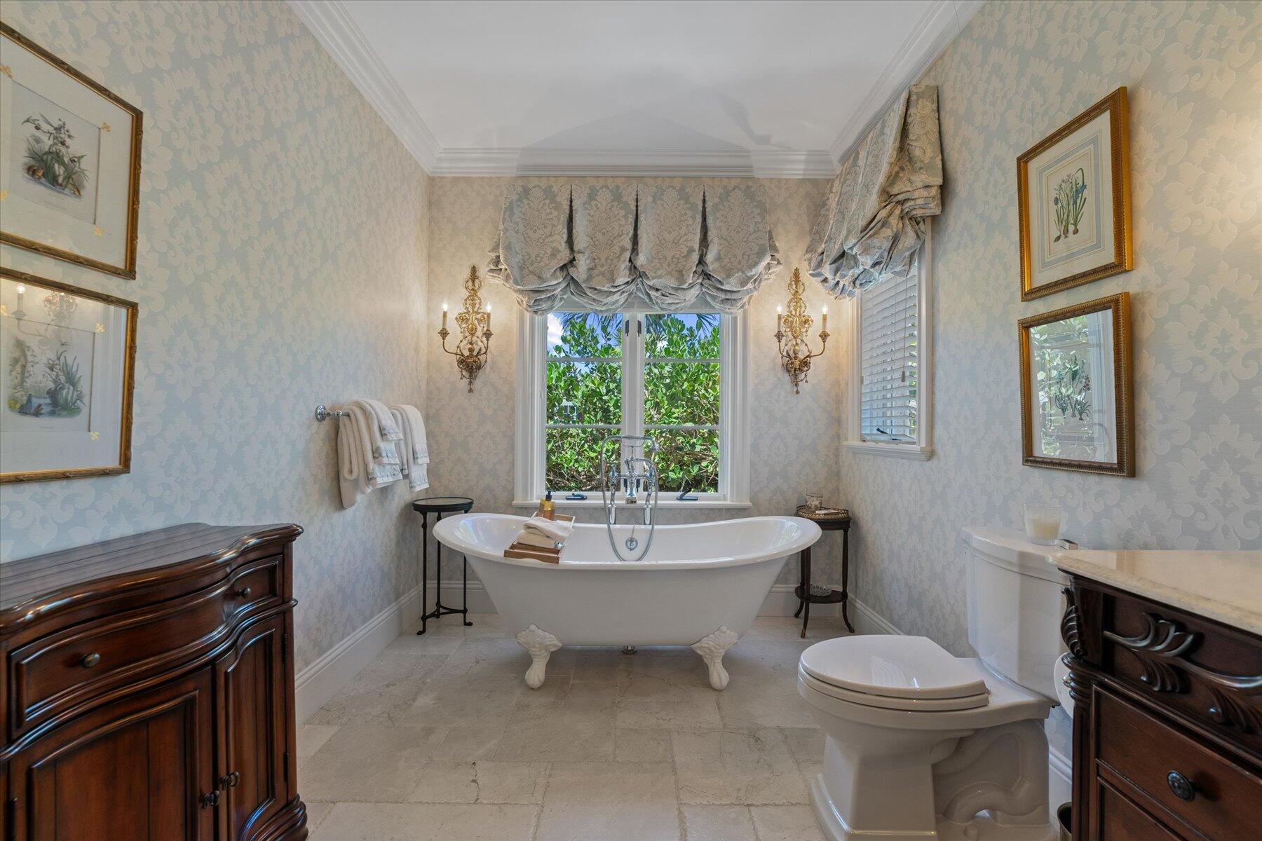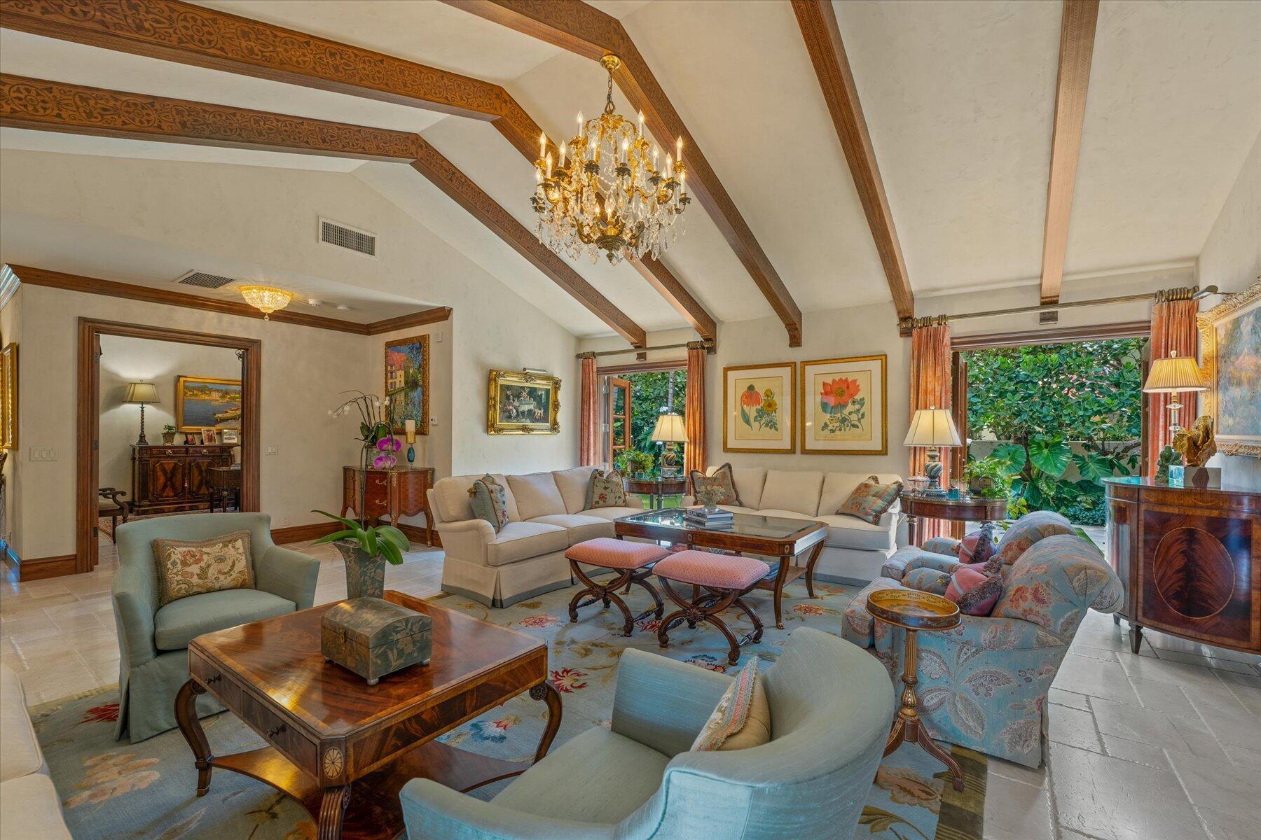 Located on one of the most ultra prime, sought after tree-lined streets, this level 5 totally renovated 5/6.1 is only second house from the ocean! Extraordinarily scaled, it boasts high ceilings, stunning finishes, easy flowing floor plan and the most magnificent gardens by Nievera-Williams. Its oversized outdoor loggia is an extension of the generous living areas, and an upper terrace adjoins the 3 second floor bedrooms. Designed for the Palm Beach lifestyle, this ''filled with character'' treasure includes a striking Mizner-style beamed living room, a gourmet eat in kitchen, gracious entry, elevator, limestone, marble and wood floors and more. It is truly a move in ready home, you can enjoy immediately.