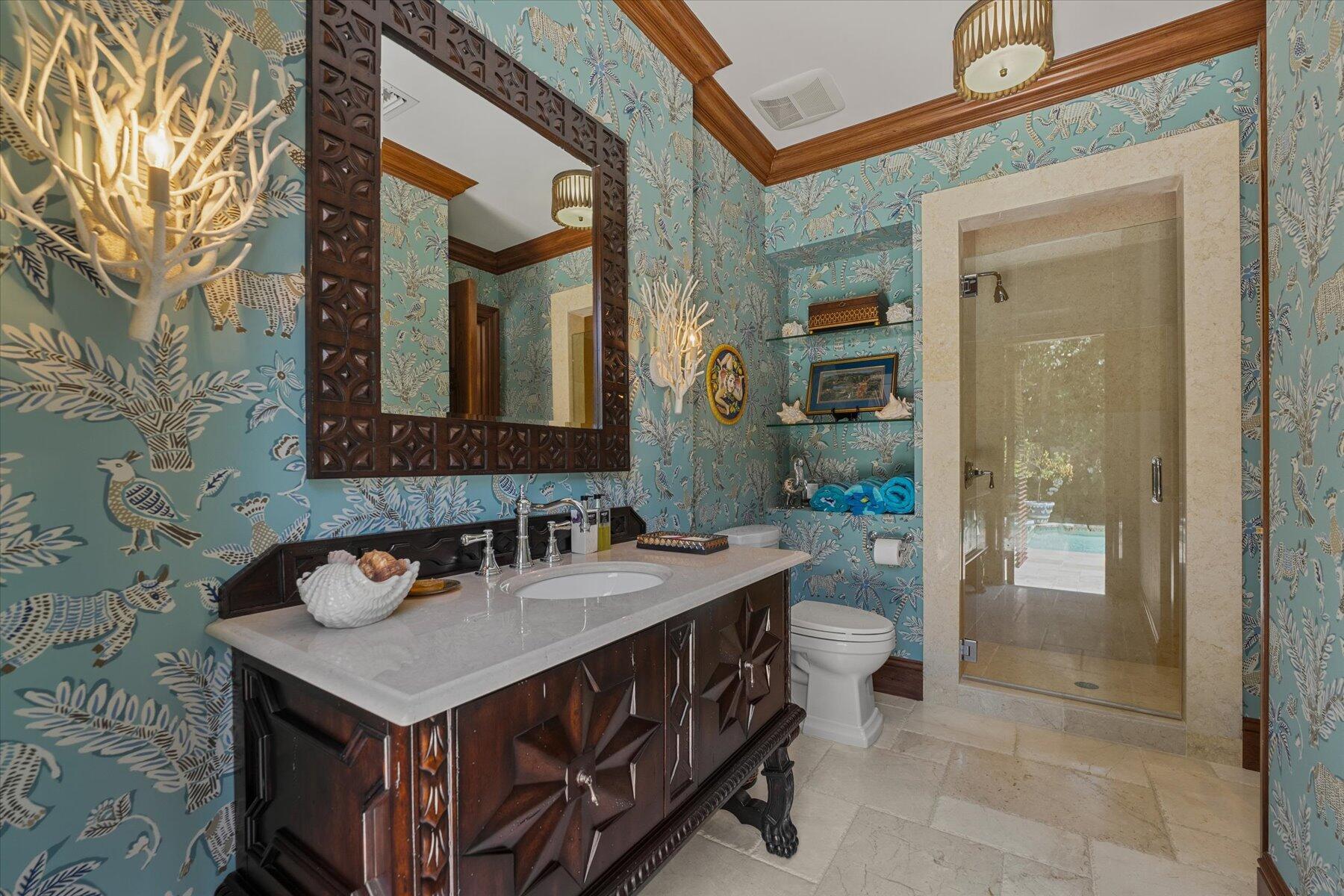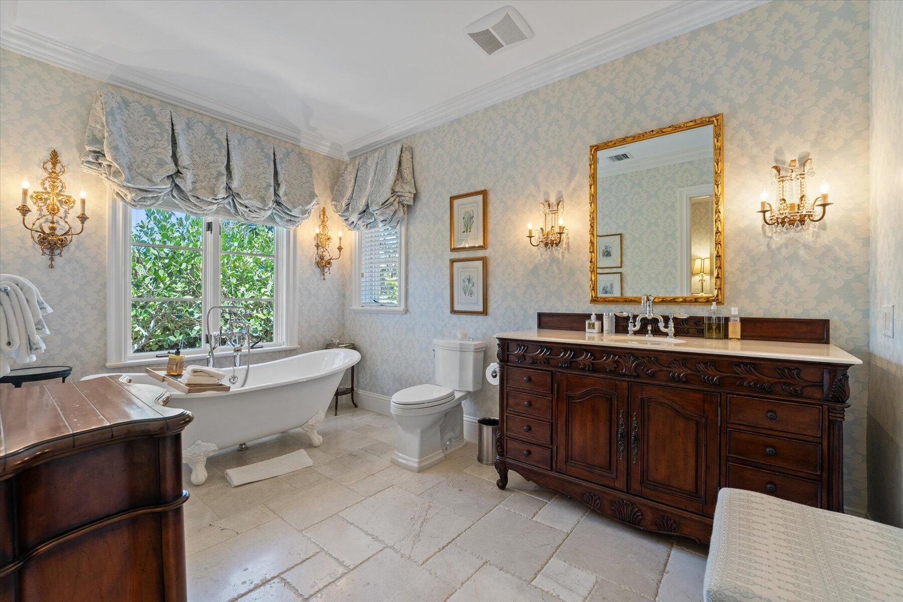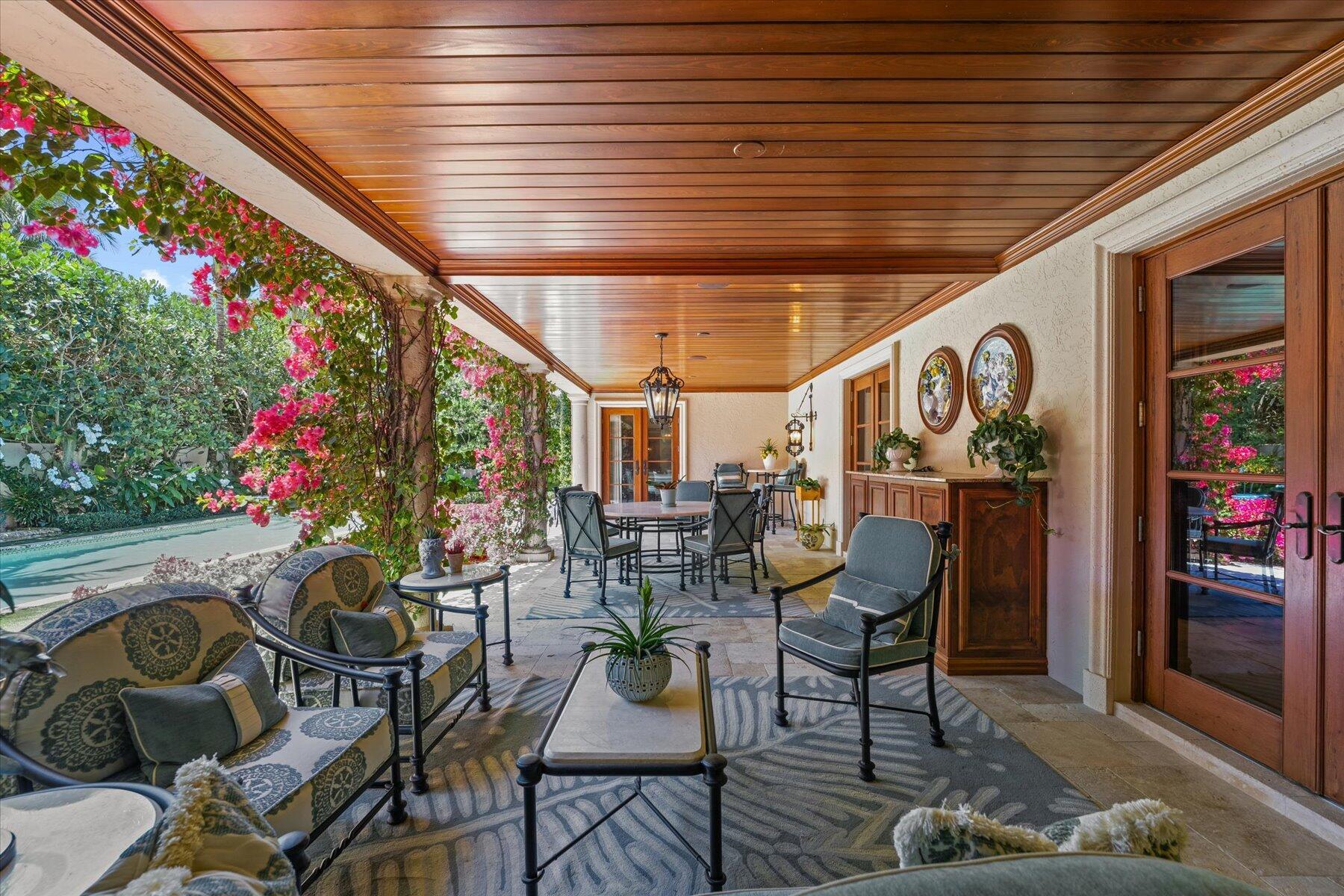 Located on one of the most ultra prime, sought after tree-lined streets, this level 5 totally renovated 5/6.1 is only second house from the ocean! Extraordinarily scaled, it boasts high ceilings, stunning finishes, easy flowing floor plan and the most magnificent gardens by Nievera-Williams. Its oversized outdoor loggia is an extension of the generous living areas, and an upper terrace adjoins the 3 second floor bedrooms. Designed for the Palm Beach lifestyle, this ''filled with character'' treasure includes a striking Mizner-style beamed living room, a gourmet eat in kitchen, gracious entry, elevator, limestone, marble and wood floors and more. It is truly a move in ready home, you can enjoy immediately.