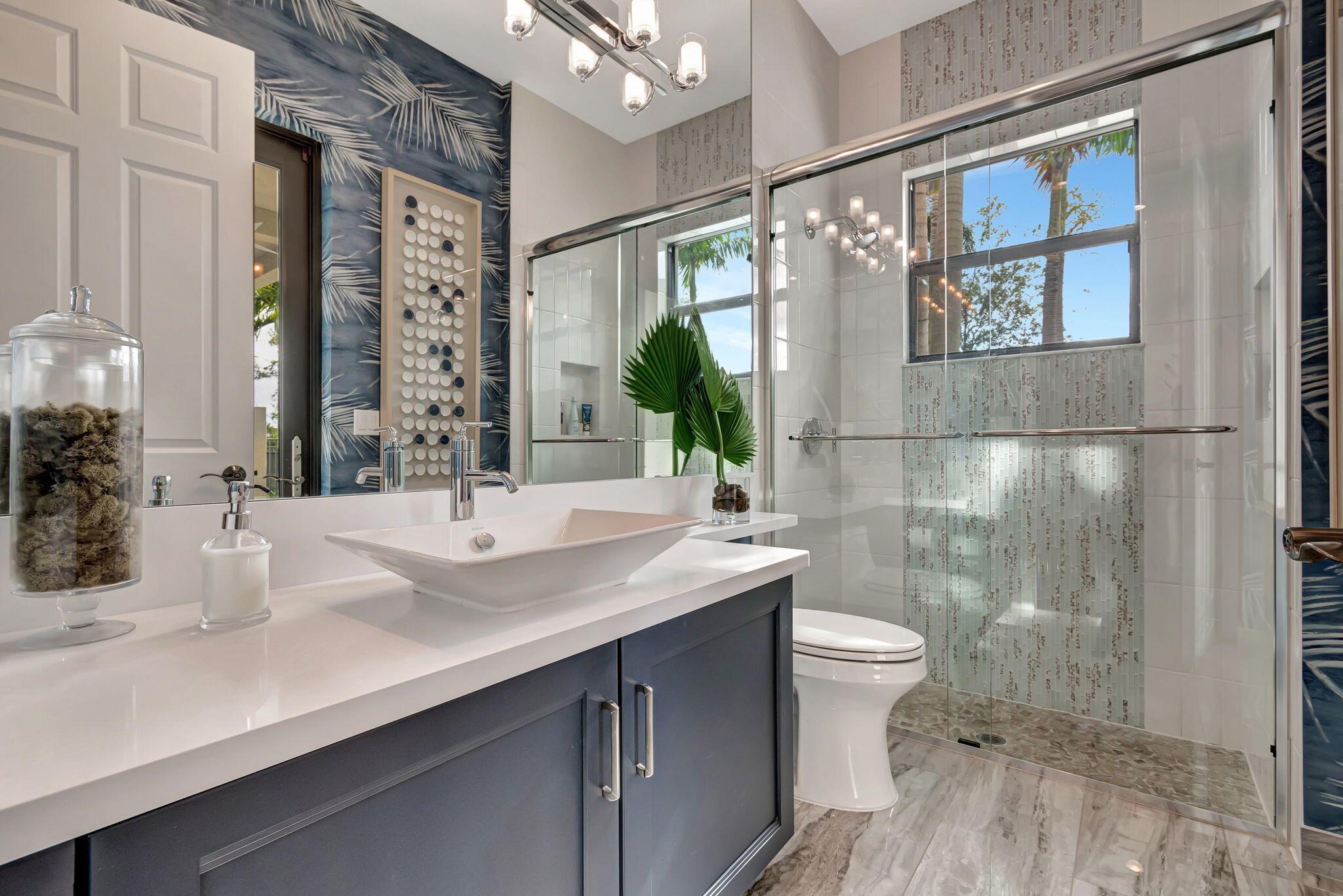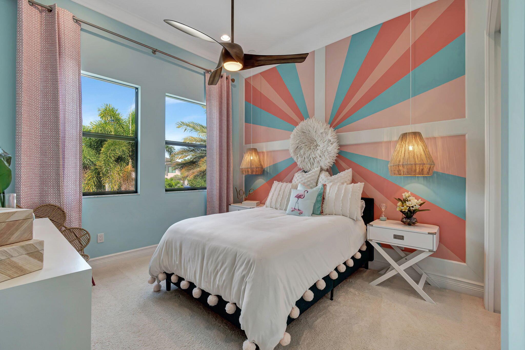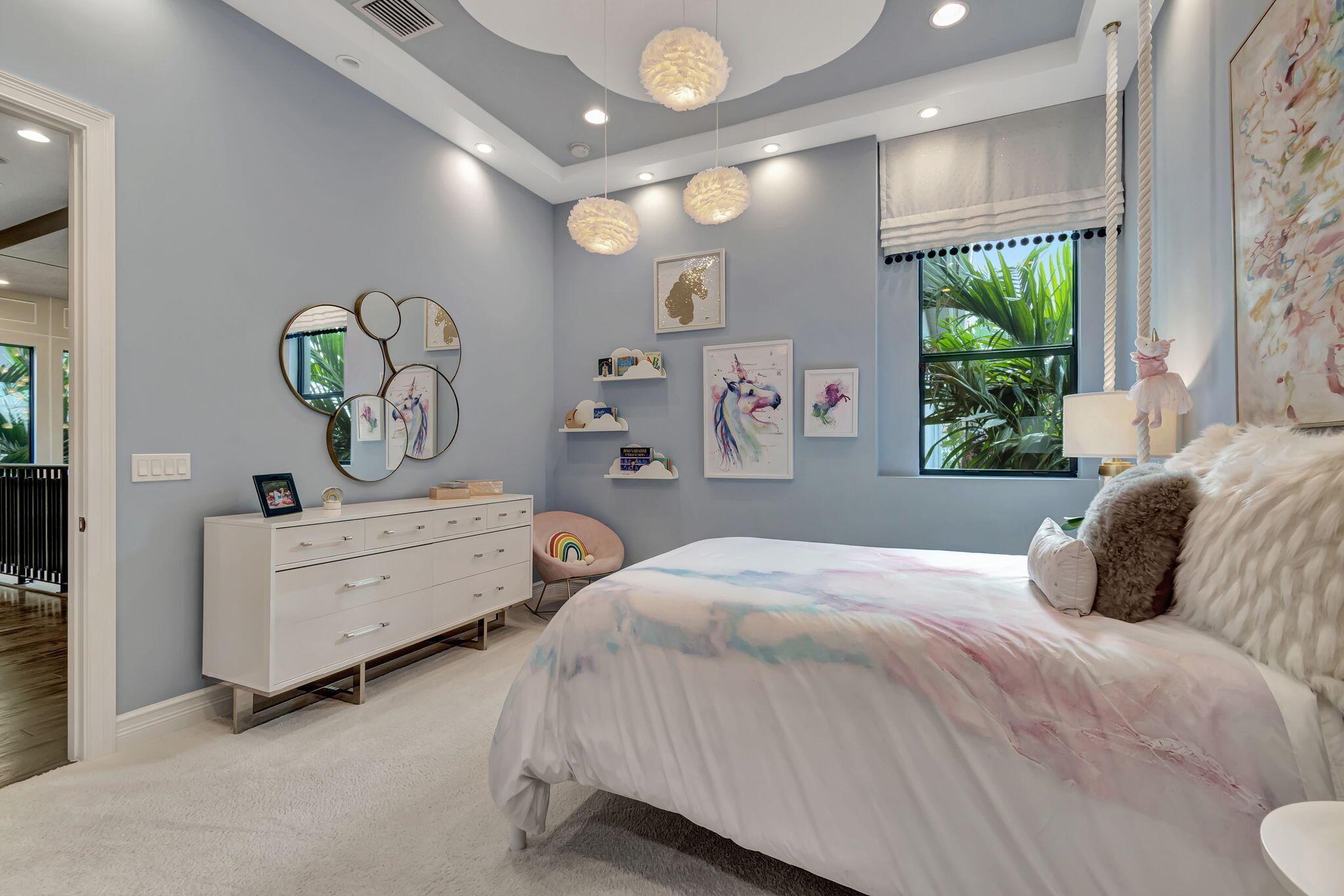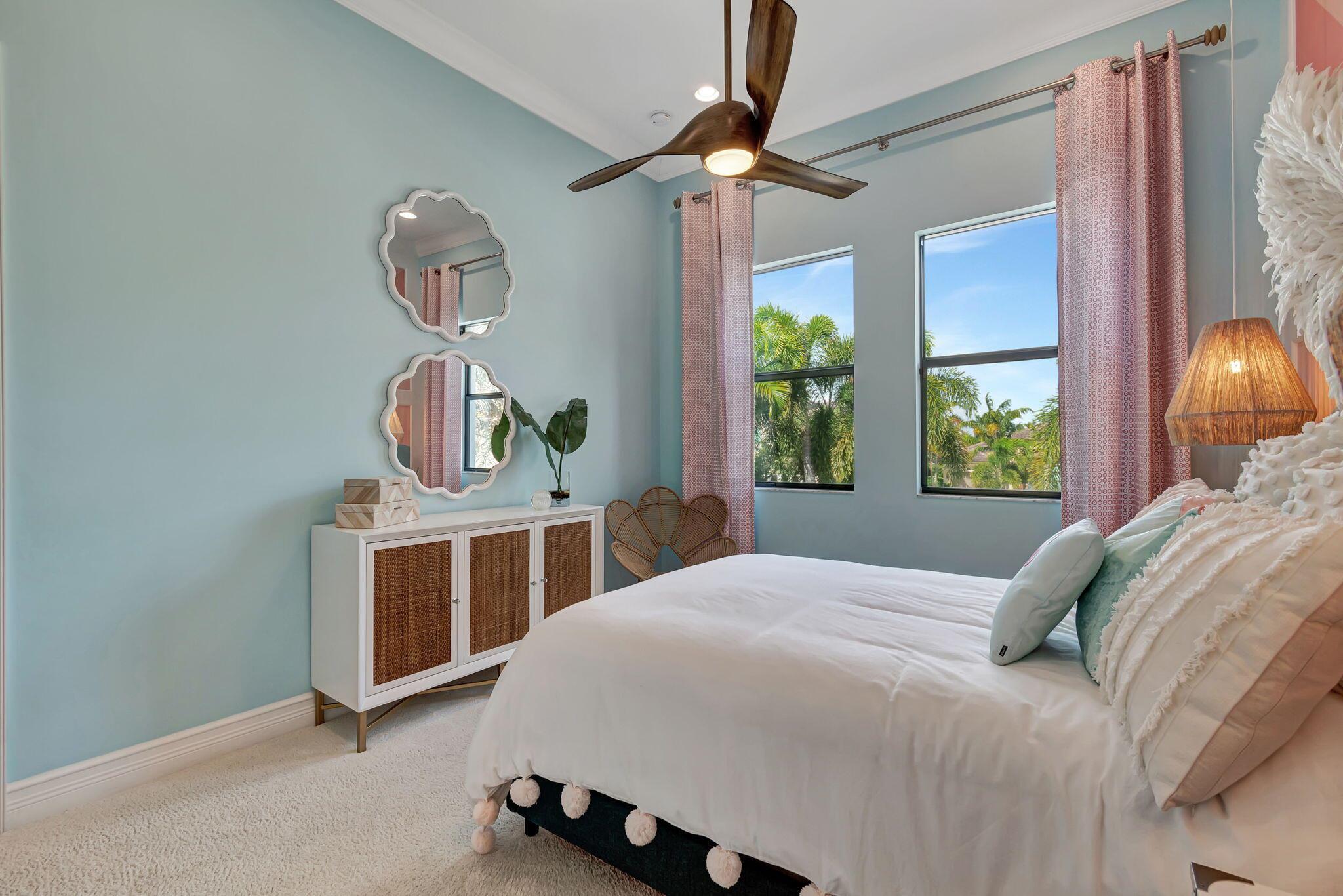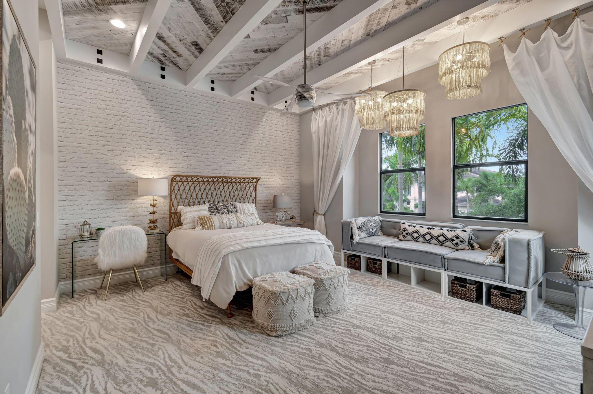 Love Where You Live! Enjoy the fabulous lake view and Florida living at its finest in the stunning, estate home in Boca Bridges. As a former model the builder showcases all the bells and whistles in the 2-story Anabelle floor plan with 5 bedrooms, loft, club room, 6 baths, and a 3-car garage. The Transitional styling welcomes you to this private cul-de-sac location. Completely upgraded with architectural finishes throughout that make this home special and unique. The spacious kitchen is ideal for entertaining. The covered patio and gorgeous pool and spa overlook the lake.