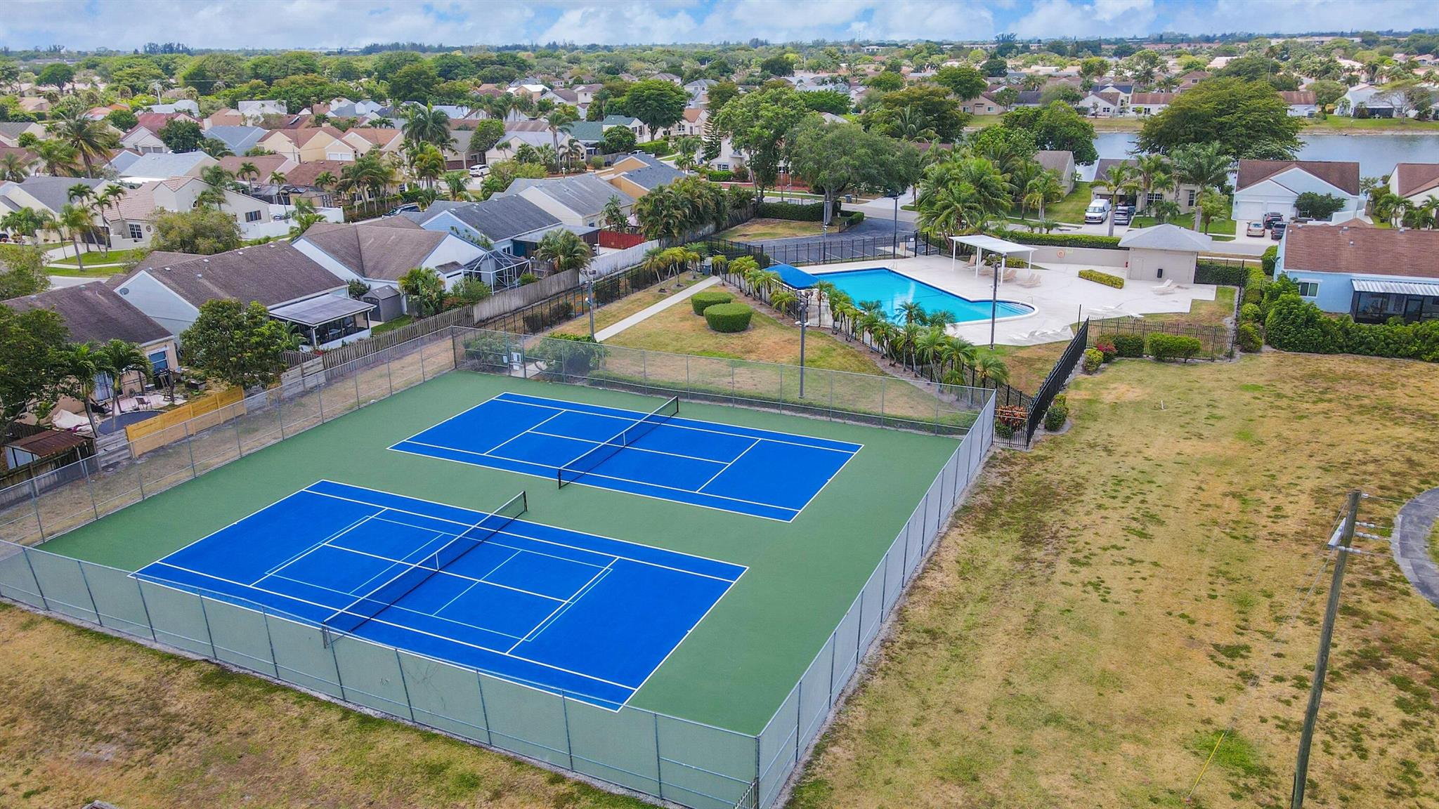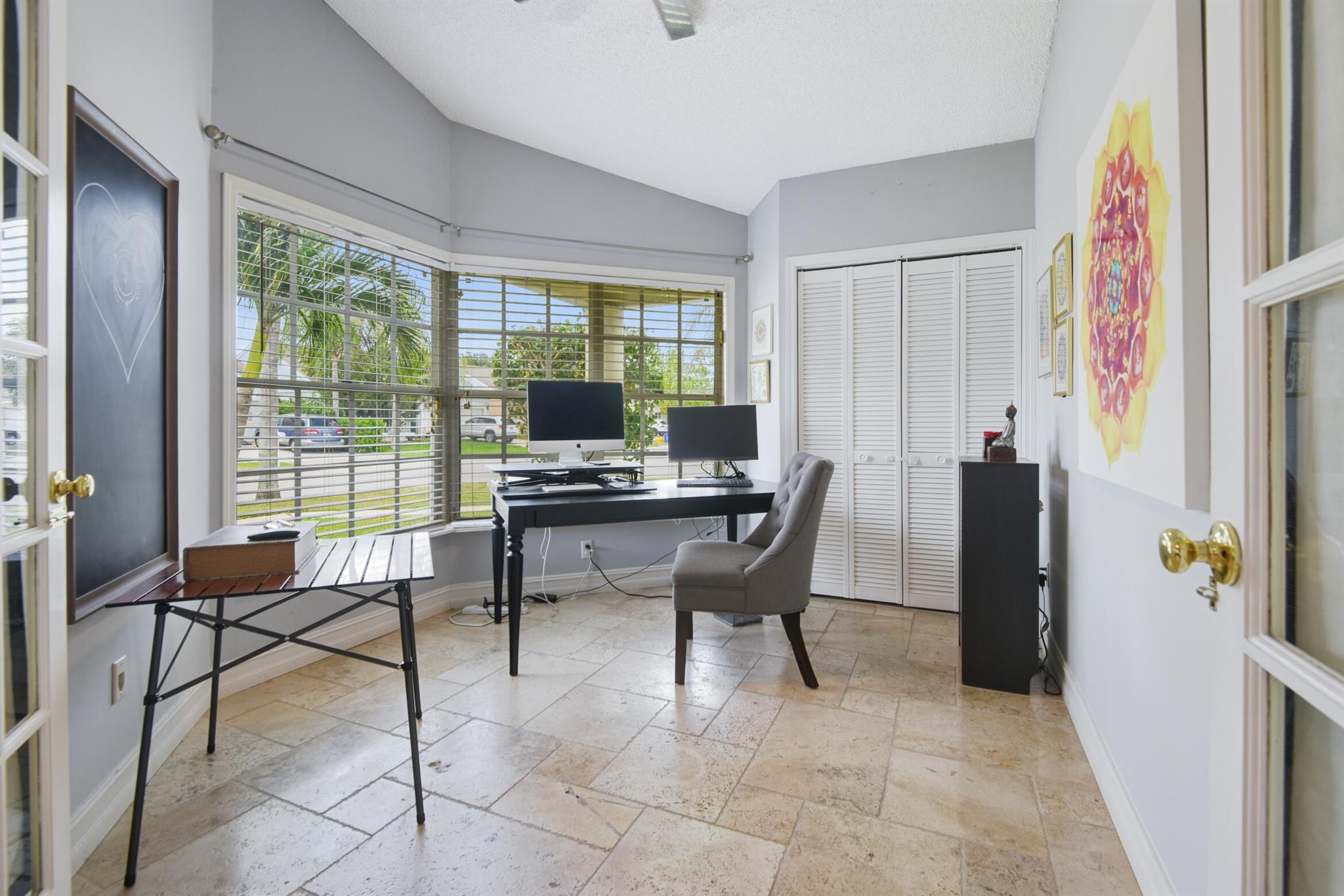 This impeccably maintained west boca home has 4 bedrooms,2 bathrooms with an additional Loft space, perfect for a home office. Located on a fully fenced in corner lot with large shed in backyard. Equipped with exterior Security cameras and hurricane shutters. Travertine marble floors throughout, vaulted ceilings,updated kitchen with wood cabinetry,Stainless appliances and granite countertops. Front load washer&dryer in home, remodeled master bathroom with huge walk in shower. Master has 2 walk in closets! community pool with Tennis courts, just down the street. A perfect family neighborhood with LOW HOA fee! Barrel tile roof installed 2015 and new AC condenser installed 2022. A rated schools. Easy move in process with no HOA approval needed. Motivated seller!!! Make an offer!!