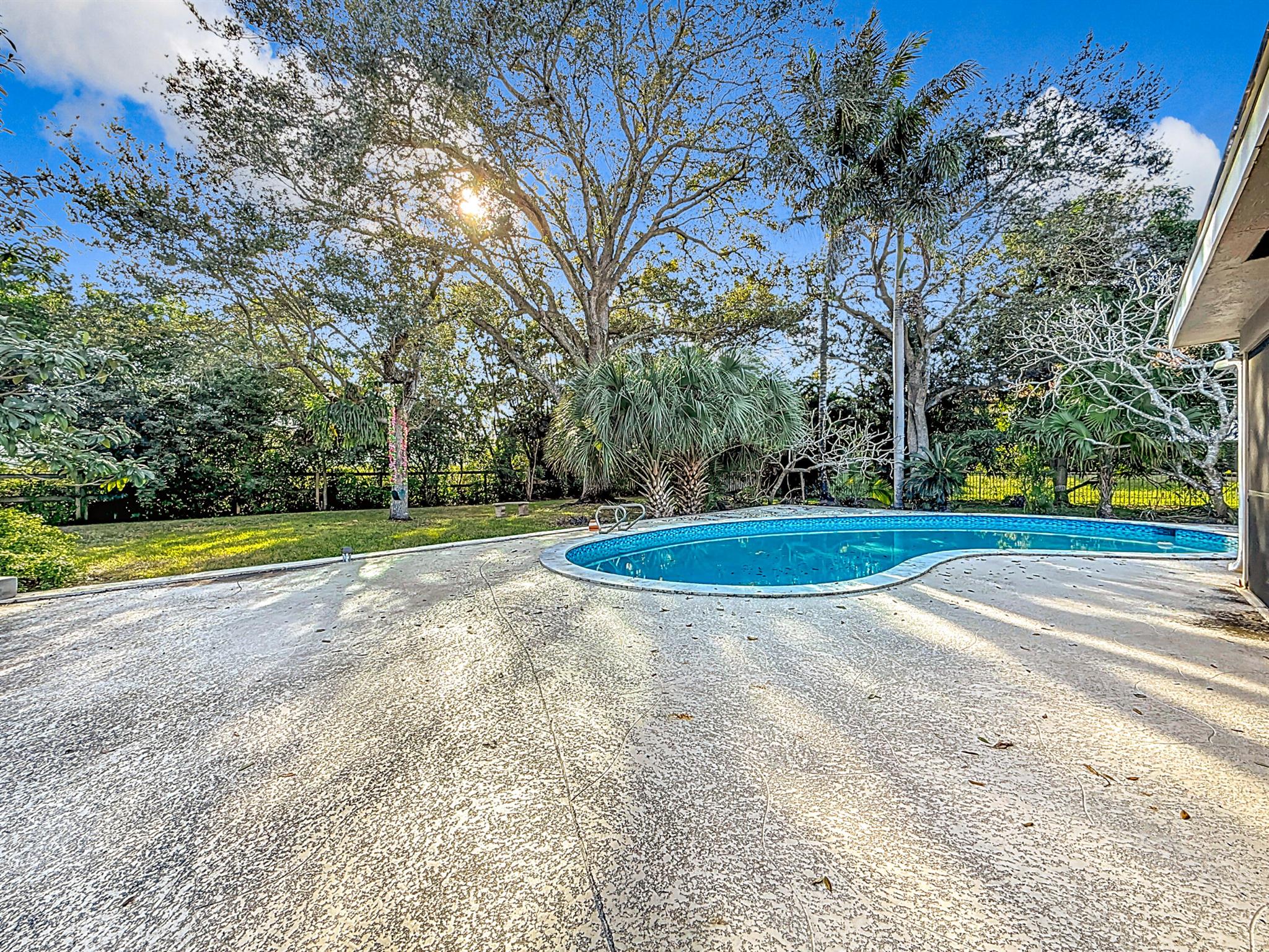 Nestled in a serene lush hidden oasis in West Broward, this 4/2 home offers modern comforts and convenience. Updated bathrooms complement the spacious interior, featuring a generous living room and a 32 x 12 screened Sun Room. Huge 2 car garage (544sqft). Mango trees, pineapple bush, and lush vegetation envelop the large, fenced-in lot, providing privacy and tranquility. Enjoy leisurely dips in the private in-ground pool or venture 20-30 minutes away to the Beach! Just off I-595. No regulating HOA, do what you want. See photo 40 for map of AirBnB's in the community (average $700 - $1000 a night). New Roof November 2024, AC 2019; Pool Pump & Water Heater 2021, Refrigerator, Range, Stove Micro 2022.