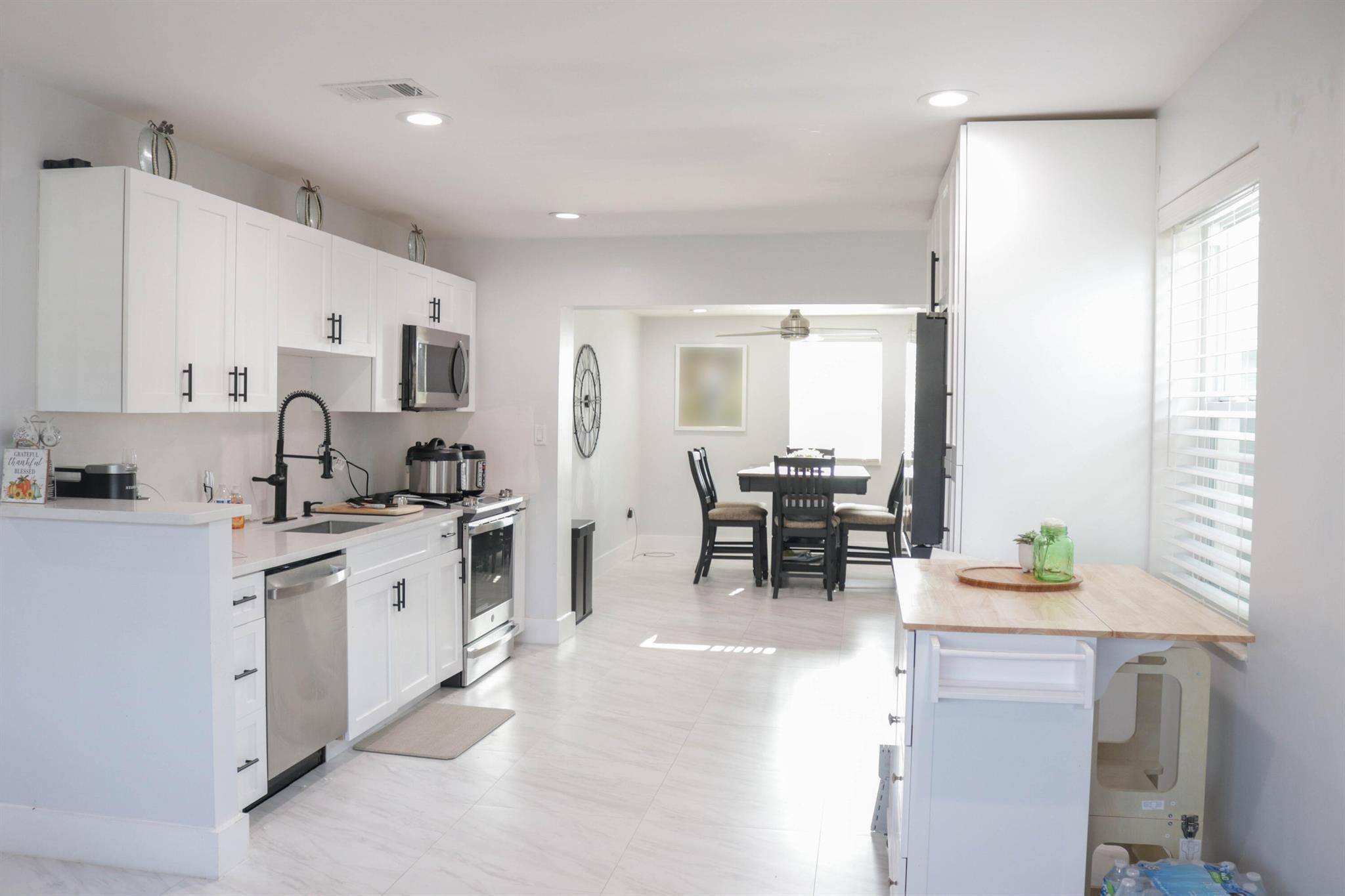 Beautiful 3/2 house totally remodeled, well maintained, centrally located, ready to move in!! Connected to the public sewer. Recently renovated kitchen within the last 6 months, porcelain title, A/C & water heater 4yrs old. Hurricane impact windows all around, fully fenced, freshly painted, the patio shed is included in the sale. Paved drive way with plenty of parking. (washer and dryer do not convey). This one won't last!