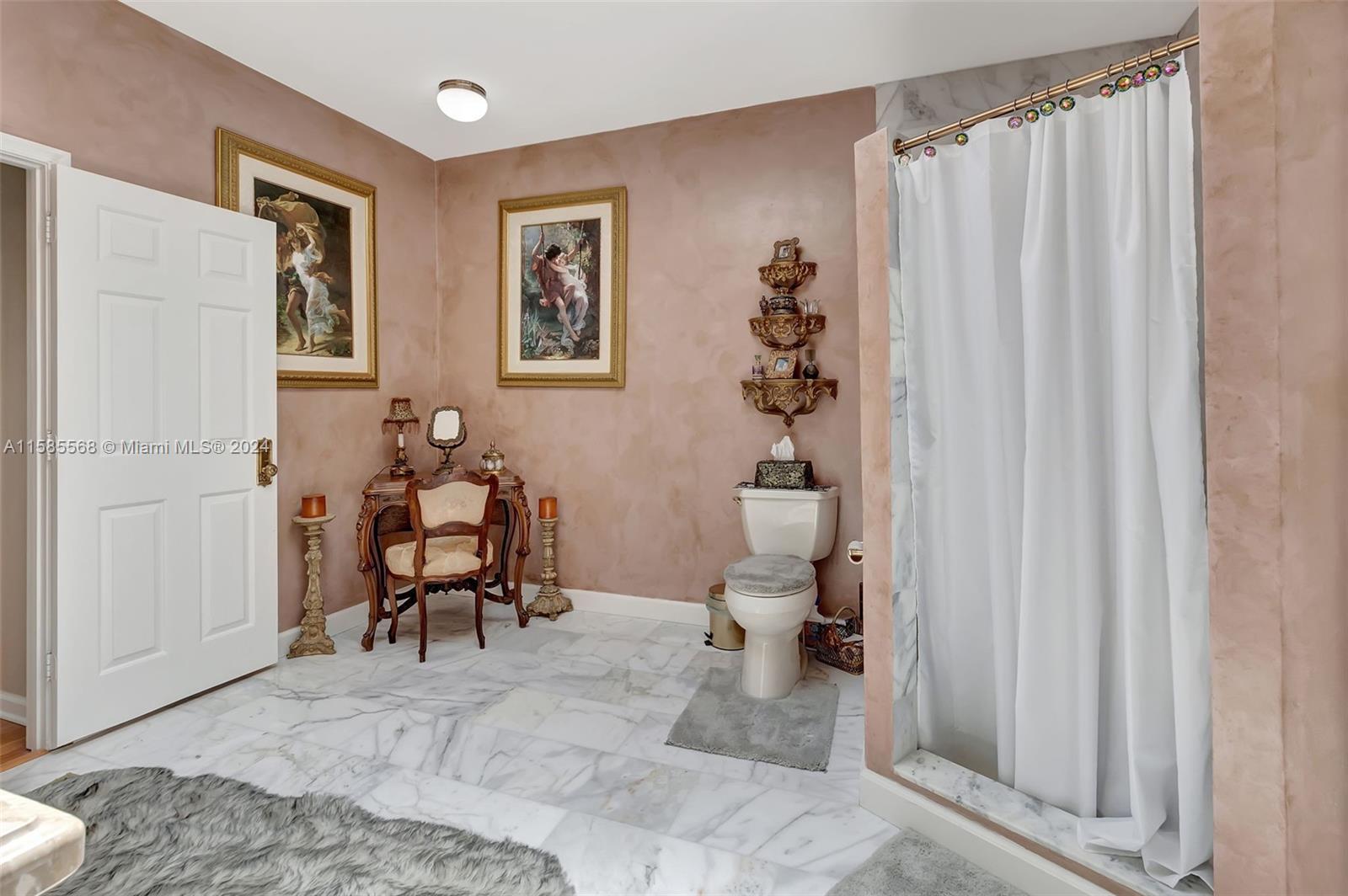 Light and bright 3 bedroom 2 1/2 bath home with a 2 car garage in a 24 hour guard gated community at Boca Pointe. The home has impact windows and solar power. The great room has floor to ceiling windows and high ceilings. There are two primary bedrooms, one up and one down, both with walk in closets. Kitchen and baths have been renovated and have all wood cabinets, Downstairs floors are porcelain tile and upstairs has wood floors. The curved staircase and hall is adorned with a wrought iron railing. The backyard has travertine tile, a fountain, beautiful butterfly garden, and the home backs up to the Hillsboro canal. 2618 sf under air and 3044 total sf per floor plan. There is a one time capital contribution of $1606 to the HOA.