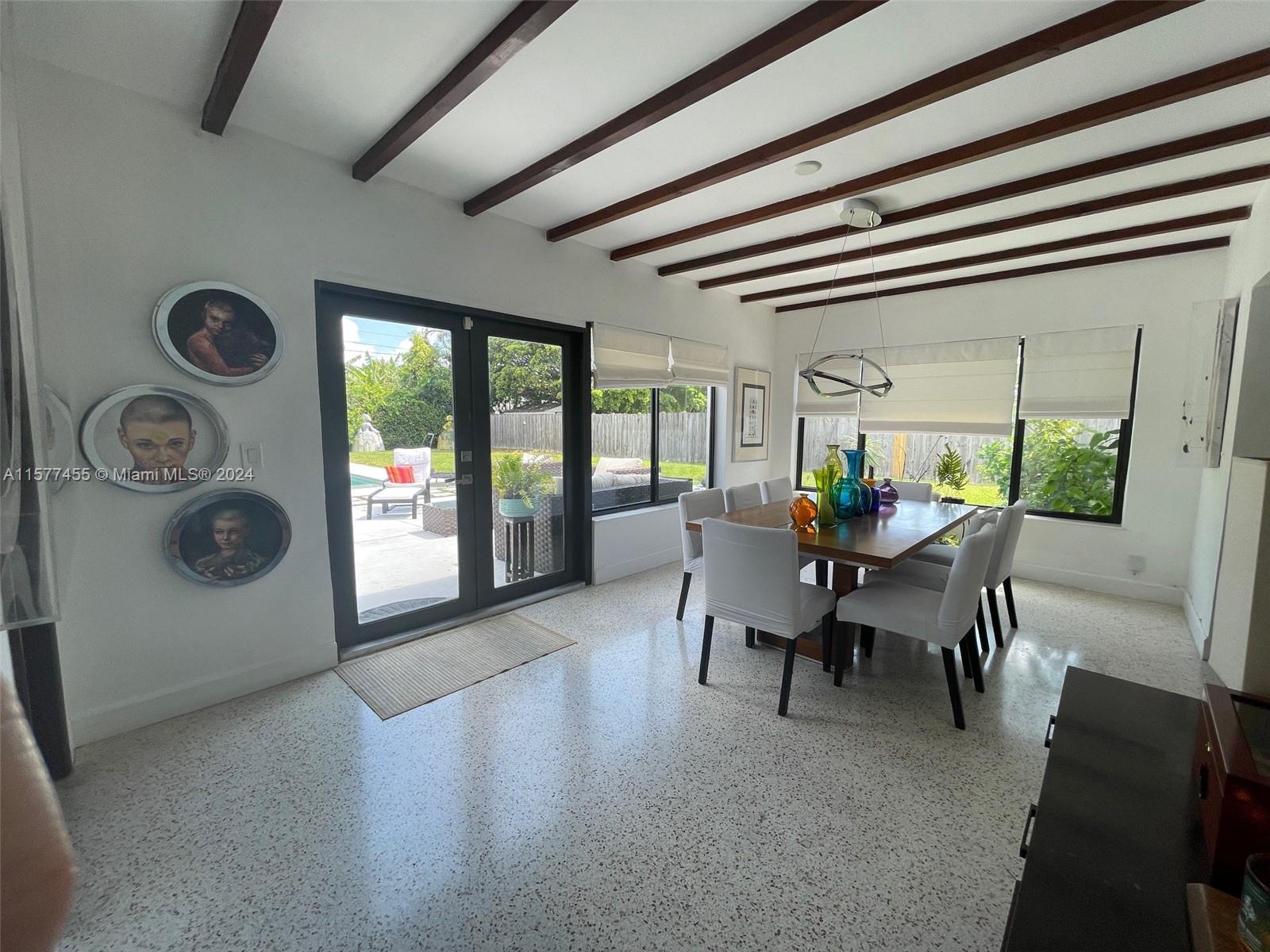 Situated on one of the neighborhood's largest lots (11,250 sq ft) within the prestigious gated community of Keystone Point, this property offers both comfort and style with no association fee. The highlight is the neighborhood's largest pool (15' x 30'), complete with a saltwater system. If you're interested in remodeling or building, the owners have approved plans and paid fees from Miami-Dade for a 5,400 sq ft, two-story house, although the process is not yet completed in North Miami. Abundant natural light enhances the inviting atmosphere throughout the spacious living areas, which include 3 bedrooms, 2 bathrooms, and an office/studio, all featuring restored terrazzo floors and impact windows. With access to life in Keystone Point offers both convenience and luxury.