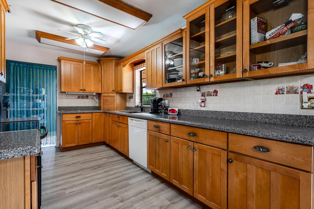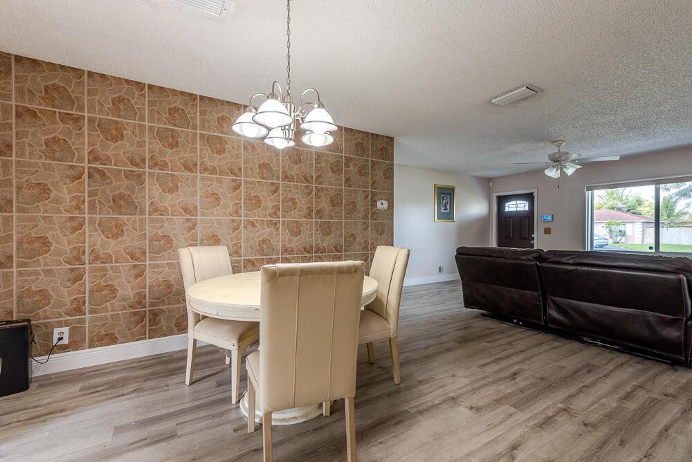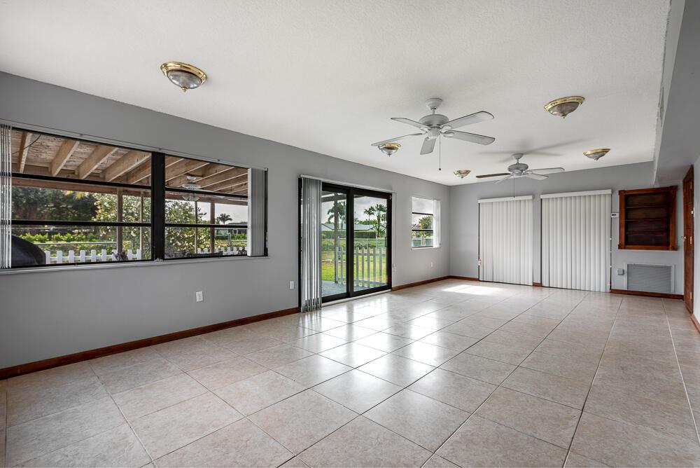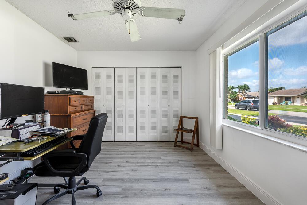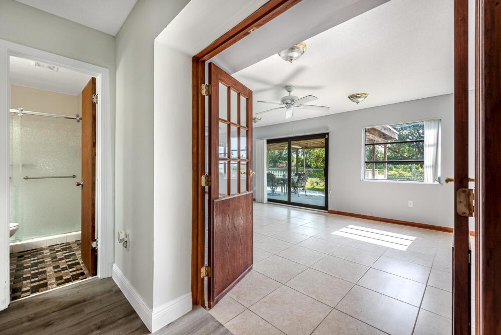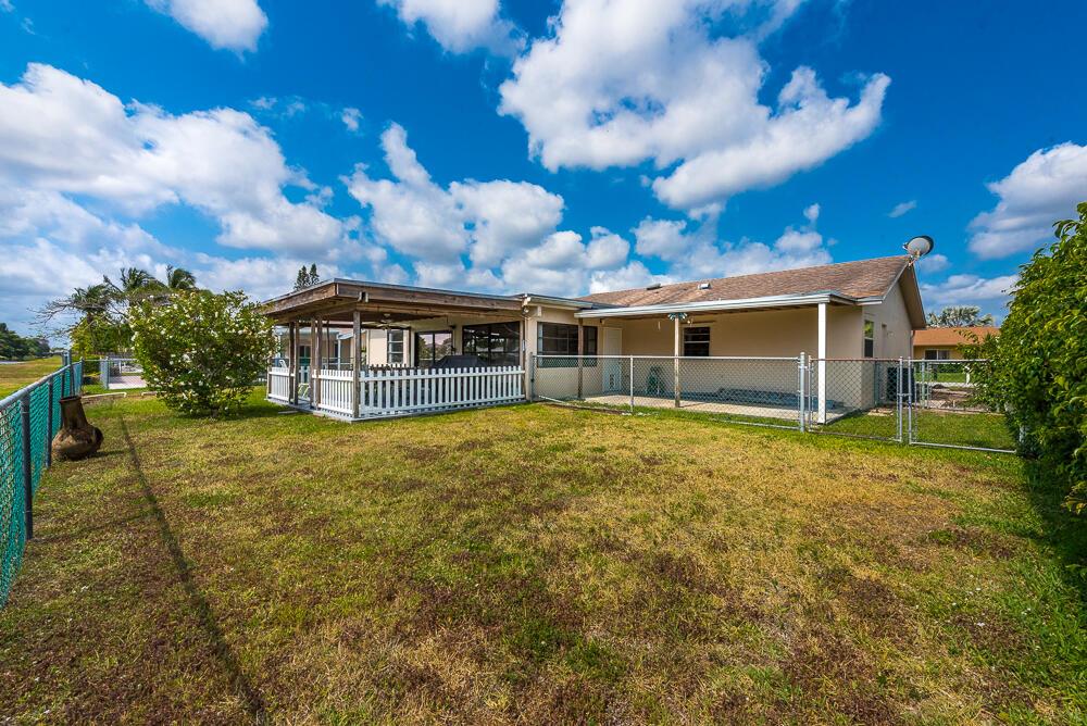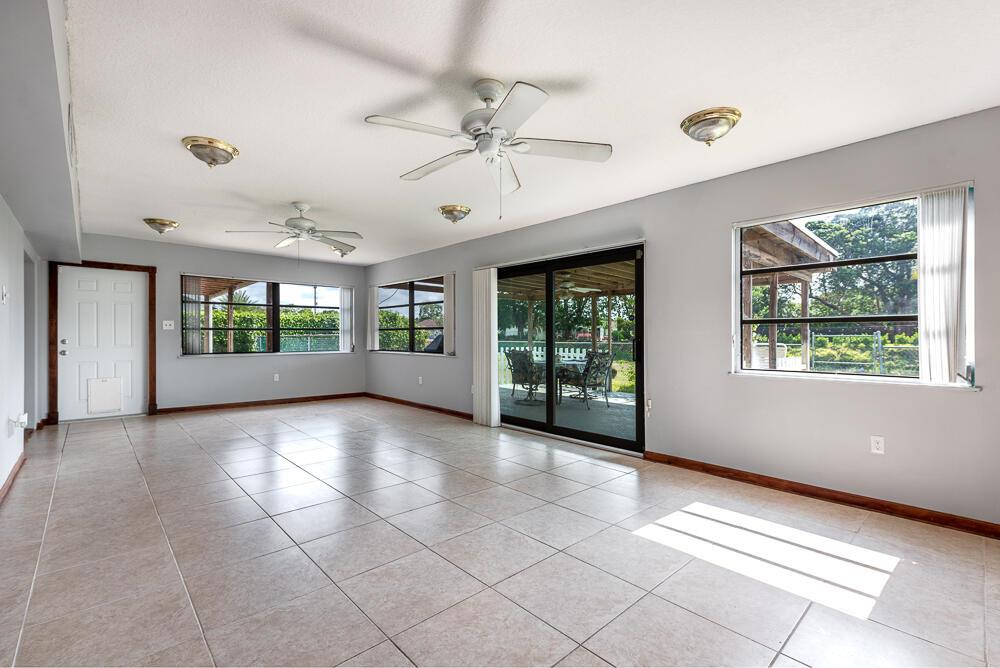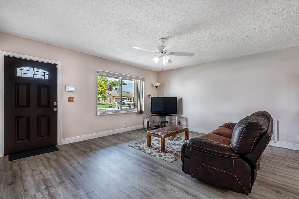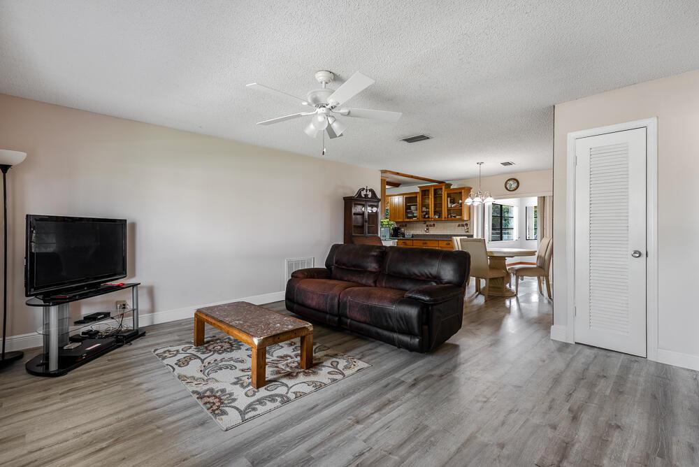 Discover endless possibilities in this charming home with an expansive 462 sq ft great room. This versatile space, complete with closets and its own 2-ton A/C unit(central), can be used as a third bedroom. The rest of the home has it's own 3 ton A/C unit. Immerse yourself in culinary delights in the beautiful kitchen adorned with Indian River wooden cabinets and stunning Silestone countertops. Recent upgrades include new electrical panels both inside and outside, newer 2 ton A/C in addition, fresh paint throughout the interior and new laminate flooring throughout. Home also features impact-resistant front windows and an impact sliding door.